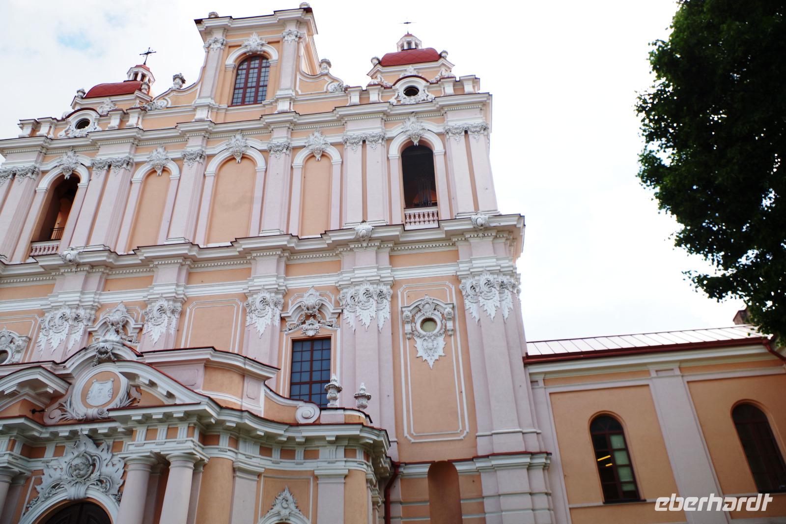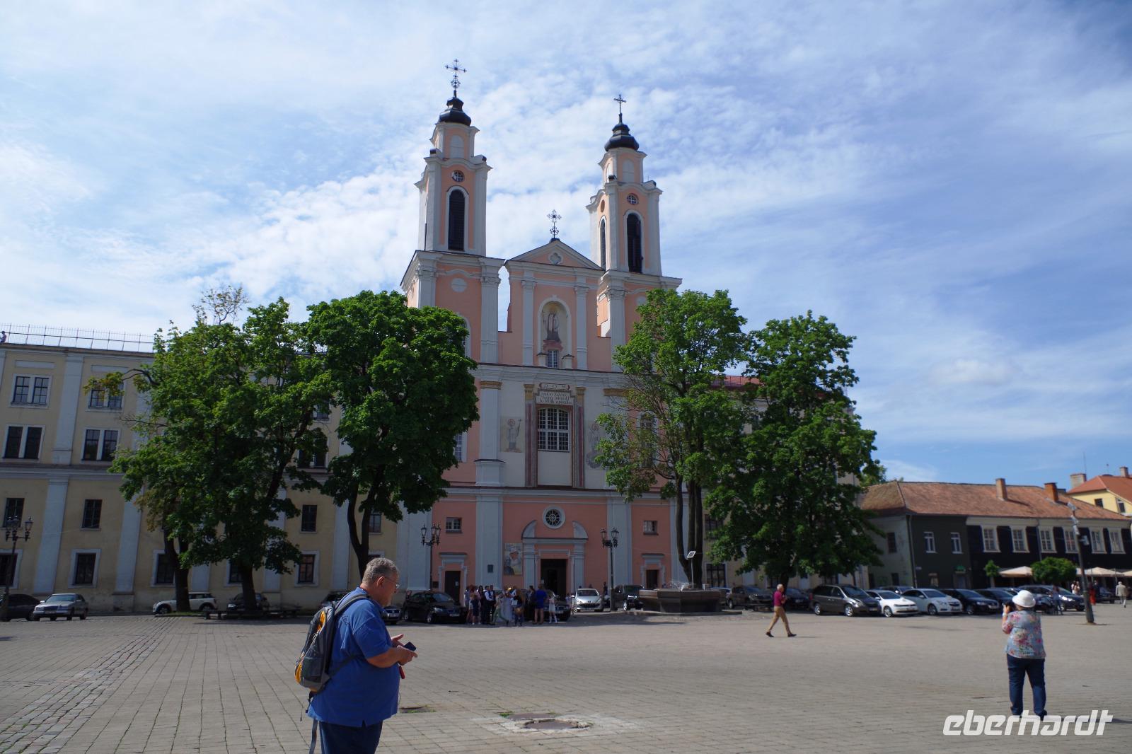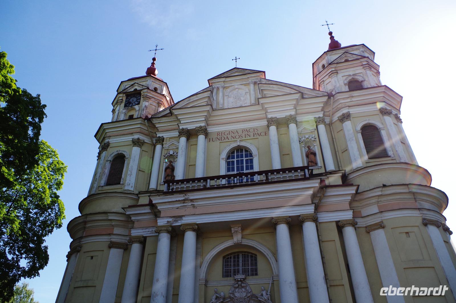 Am 2. Tag begannen wir unsere Stadtbesichtigung mit dem Besuch der Peter- und Paul-Kirche. Von außen eher schlicht überrascht der barocke Kirchenraum mit faszinierenden, weißen Stuckverzierungen und Reliefs. Der einflussreiche litauische Adlige Pac ließ diese Kirche erbauen und sich unter der Schwelle begraben. Auf der Grabplatte steht: Hier ruht ein Sünder - Was das wohl zu bedeuten hat?
