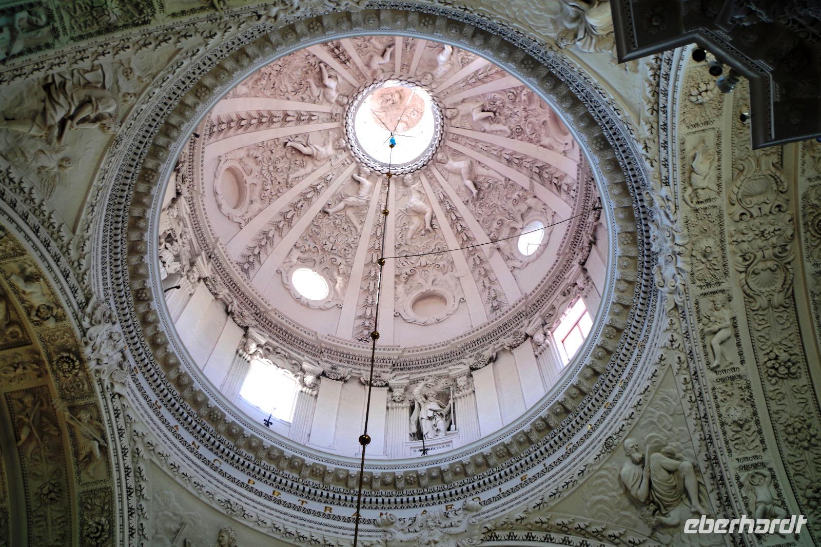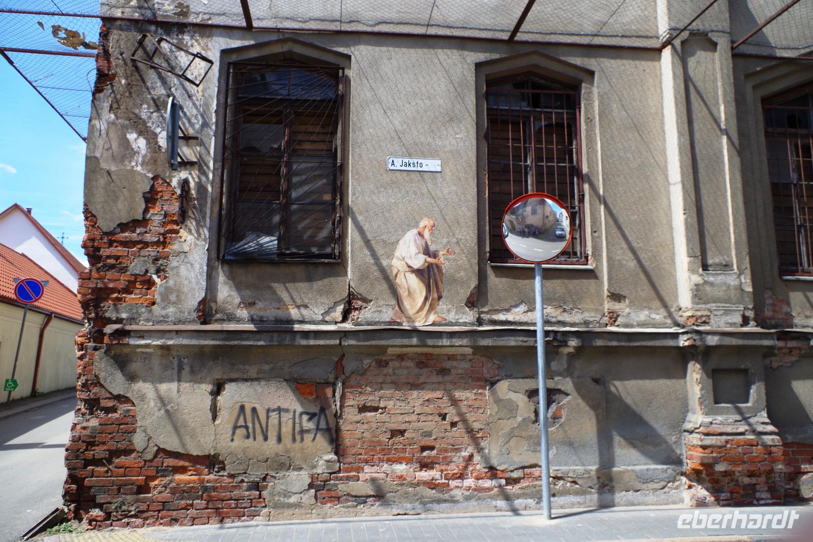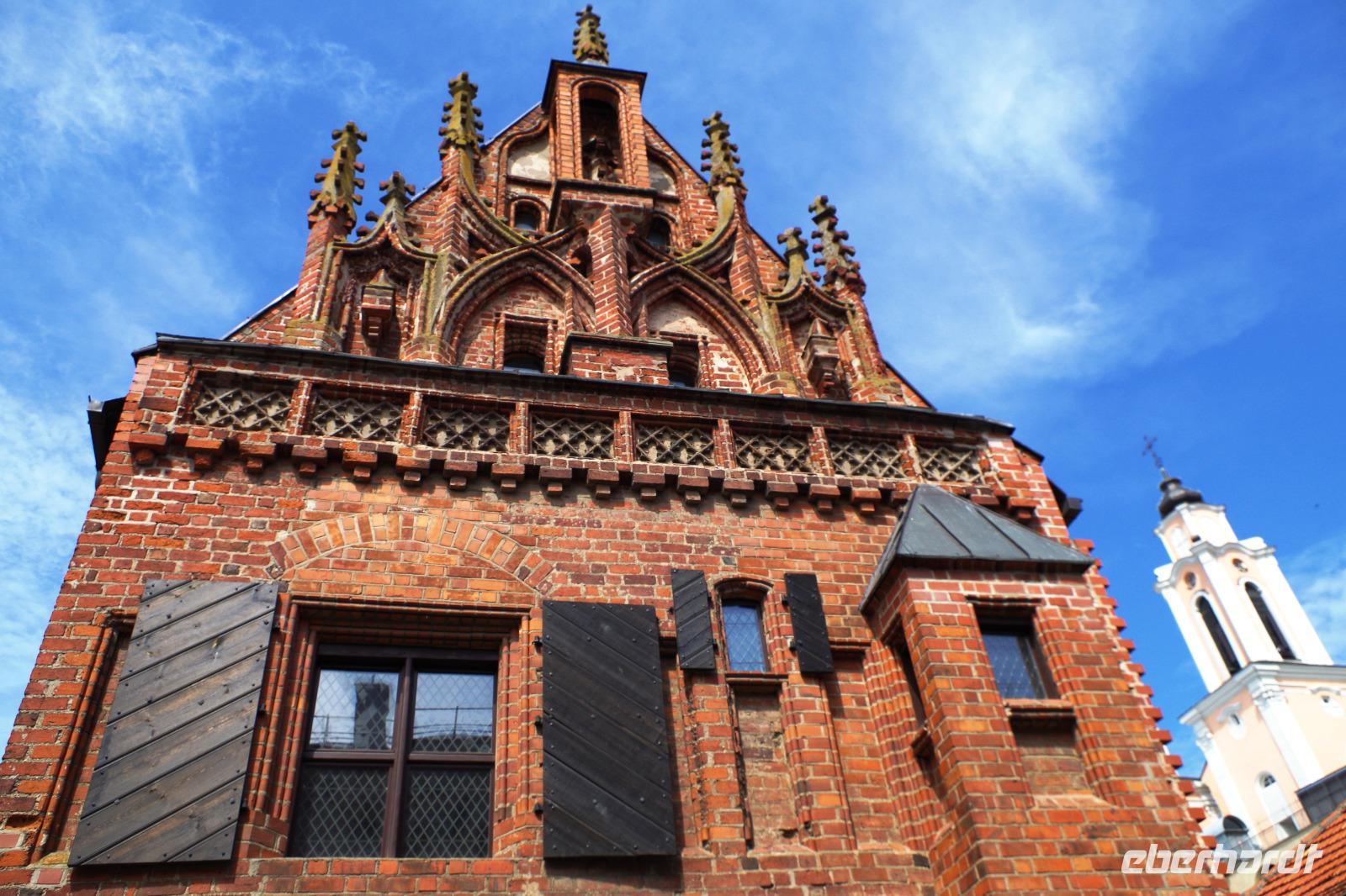 Am 2. Tag begannen wir unsere Stadtbesichtigung mit dem Besuch der Peter- und Paul-Kirche. Von außen eher schlicht überrascht der barocke Kirchenraum mit faszinierenden, weißen Stuckverzierungen und Reliefs. Der einflussreiche litauische Adlige Pac ließ diese Kirche erbauen und sich unter der Schwelle begraben. Auf der Grabplatte steht: Hier ruht ein Sünder - Was das wohl zu bedeuten hat?