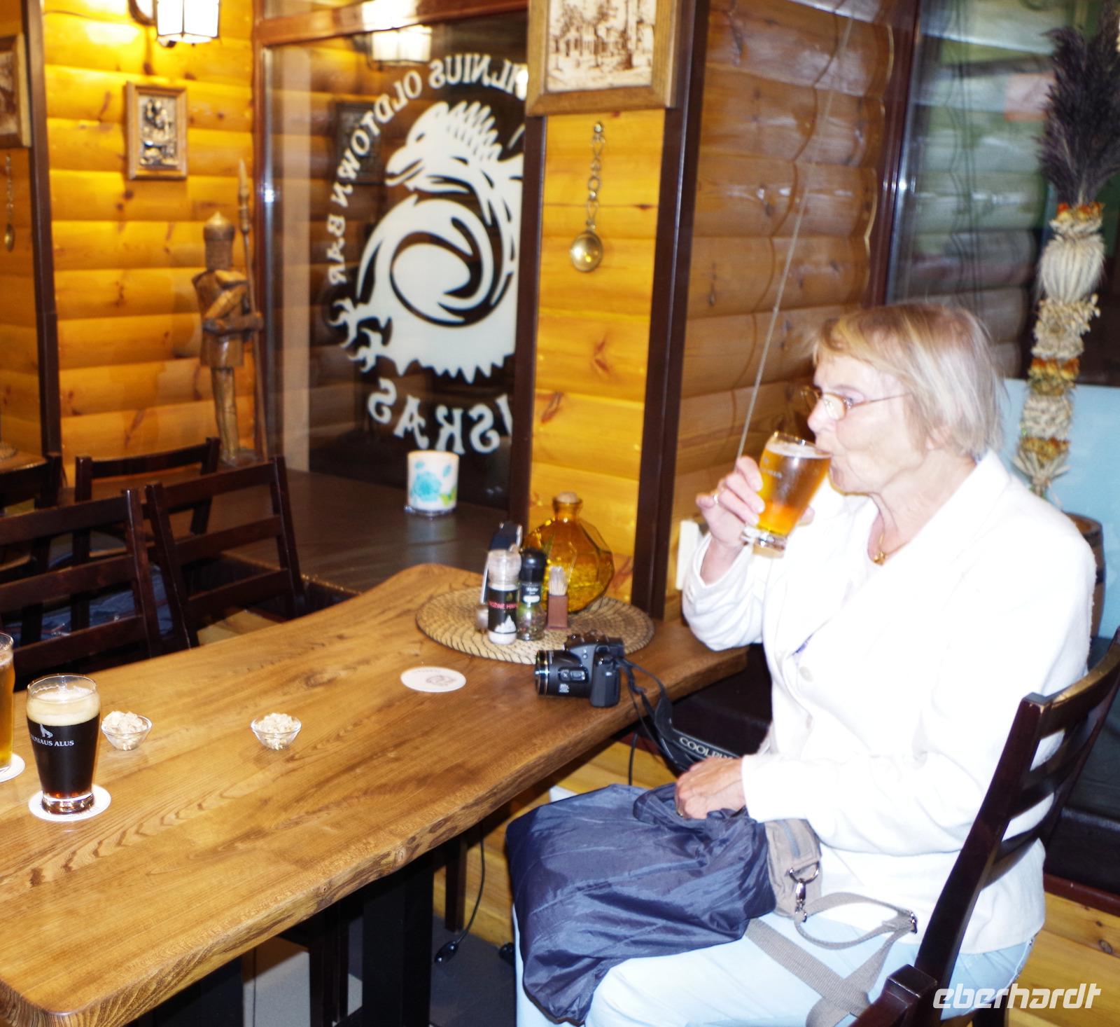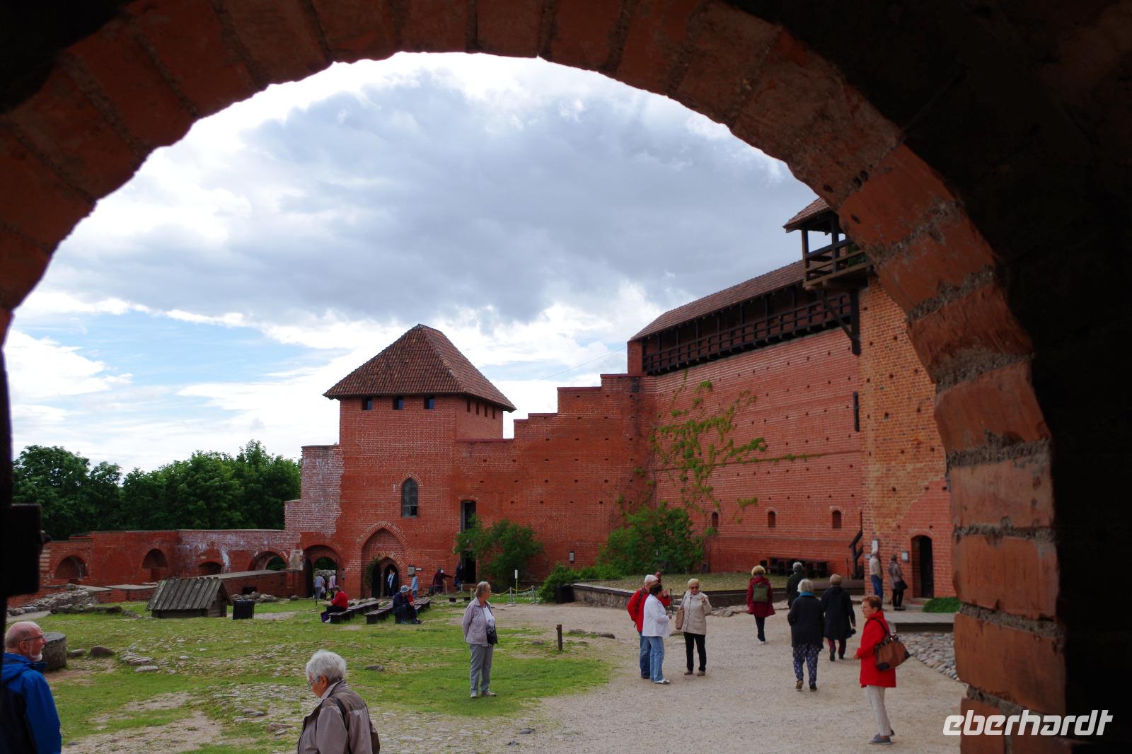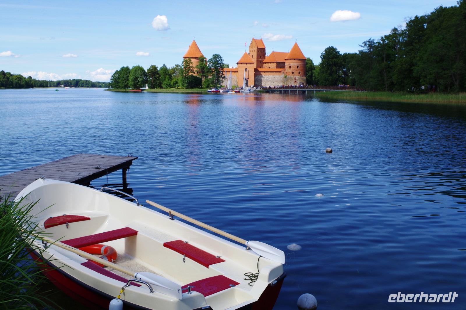 Am Nachmittag unternahmen wir einen sonnigen Ausflug in das 30 km entfernte Trakai, inmitten einer malerischen Seenplatte gelegen. Von 1316 bis 1323 war Trakai Hauptstadt des Landes. Auch hier hatte Gediminas seine Finger im Spiel, als er 1321 die Stadt erbauen ließ, damals wichtiges militärisches und politisches Zentrum des Großfürstentums. Auf einer Halbinsel des Galve-Sees entstand die mittelalterliche, backsteinerne Burganlage, die nach Bränden und Zerstörungen erst nach dem 2. Weltkrieg wieder als Wasserburg aufgebaut wurde. Über Holzstiegen und enge Gänge durchstreiften wir die Gemäuer der Burganlage (manchmal bildeten wir dabei eine Ameisenstraße) und erfuhren viel Wissenswertes zur Geschichte. In Trakai gibt es noch eine Besonderheit: Seit dem 14. Jhd. leben hier die Karäer, ein turksprachiges Volk mosaischen Glaubens aus der Krimregion, die damals die Großfürsten als Wachgarde ins Land holten. Heute leben noch ein ganz geringe Teil dieser Volksgruppe in Trakai. Eins ihrer Gebetshäuser, die Kenesas findet man noch in der Stadt, ebenso die hölzernen Wohnhäuser, deren Giebel mit 3 Fenstern zur Straße gewandt sind. Wir genossen den sonnigen, warmen Nachmittag am See, bevor wir nach Vilnius zurück fuhren. Am Abend fuhren wir zum Restaurant unweit des Gedimina Prospektes, wo wir typisch litauisch zu Abend speisten. Riesige Mengen an Käse-, Wurst - und Kartoffelspezialitäten, rote Beete-Suppe und Wodka füllten die Tische und unsere Mägen. Danach bummelten wir individuell durch die Altstadt zum Hotel zurück und es gab jede Menge zu erleben. Vilnius stand im Zeichen der Musiknacht, ganz Vilnius war zu später Stunde auf den Beinen. An über 100 Plätzen der Stadt wurde gesungen, getanzt und musiziert. Erstaunlich wie friedlich, harmonisch, ohne Absperrungen und Kontrollen gefeiert wurde. Die Nacht und nicht durch diese wurde lang, denn es war die Zeit der weißen Nächte......