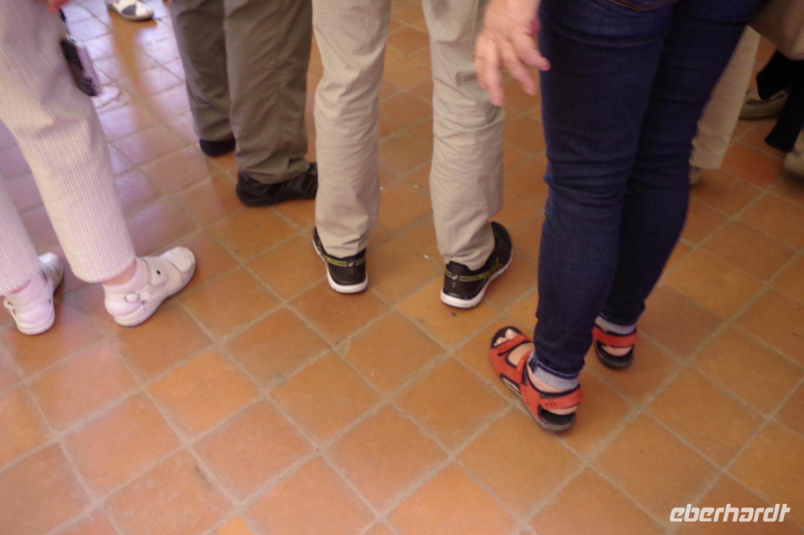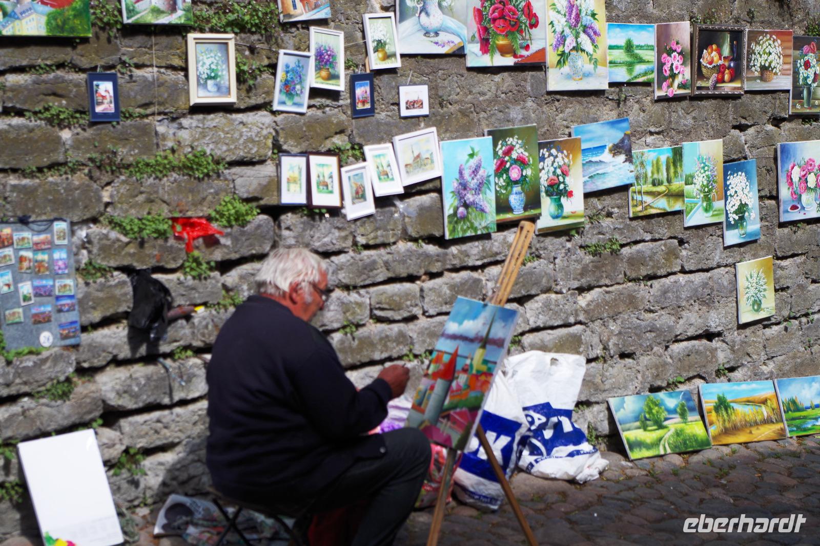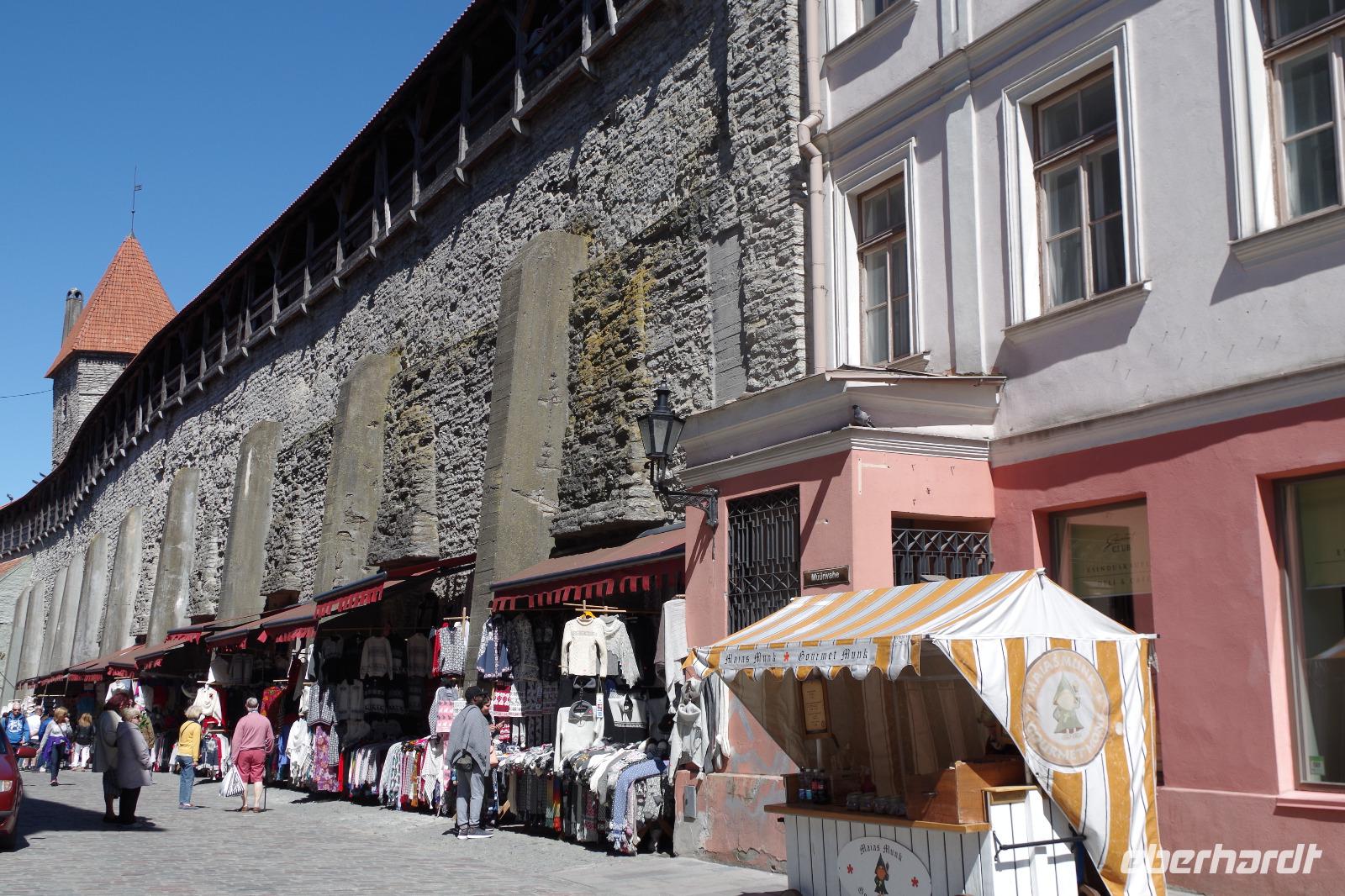 Auf dem Domberg begann unser Rundgang durch Tallinn. Neben dem Domschloss, heute estnisches Parlament ragt der Lange Herrmann hervor. Gegenüber befindet sich die russisch-orthodoxe Alexander-Newski-Kathdrale. Vorbei an der St. Mariengilde und der Domschule (von 1920 bis 1940 deutsches Gymnasium) gelangten wir zum Mariendom, der Hauptkirche der estnischen Lutheraner. Von den Aussichtsterrassen des Domberges genossen wir die wunderbare Ausblicke. Danach spazierten wir auf dem Langen Bein in die Unterstadt hinab. Wir bummelten durch die engen Gassen und Straßen der mittelalterlichen Unterstadt und entdeckten das ein oder andere Kleinod. Die Lange Straße (Pikk) verbindet auch heute noch den Rathausplatz mit dem Hafen. Nahe dem Schwarzhäupterhaus steht ein schönes Jugendstilhaus. Auf dessen Dach spannt der einstige Hausherr mit Hilfe seines Monokels in die gegenüberliegenden Fenster. Schräg gegenüber liegt das Haus der St. Kanuti-Gilde, an dessen Fassade der heilige Knut (Schutzpatron der Gilde) und Luther zu sehen sind. Ein Stück weiter befindet sich die Große Gilde, wo sich damals die reichsten Kaufleute der Stadt versammelten. An der Ecke, fast unscheinbar steht die Heiliggeistkirche, in deren Glockenturm die älteste Glocke Estlands läutet. Der schmale Weckengang (früher waren hier viele Backstuben ansässig) führt zum Rathausplatz. Gleich links ist die alte Ratsapotheke zu sehen, die zu den ältesten in Europa zählt. Mitten auf dem Platz erhebt sich das gotische Rathaus. Auf dem schlanken Turm sitzt der Alte Thomas (Wetterfahne) und aus der Fassade schauen bedrohlich aussehende Drachenköpfe (Speier) heraus. Auf dem Rathausplatz endete unser Rundgang. Alle Gäste freuten sich, den sonnigen Nachmittag für individuelle Erkundungen zu nutzen. In den zahlreichen Cafes und Restaurants machten viele erst einmal eine wohlverdiente Pause, um die unzähligen, neu gewonnenen Eindrücke zu verarbeiten, denn so viel Mittelalter und historisches Pflaster strengt an. In Tallinn lohnt sich immer wieder ein Blick in die Hinterhöfe und Seitengassen, wo sich versteckt, kleine gemütliche Cafes und architektonische Kleinode befinden. In der Katharinengilde sind viele traditionelle Handwerker und Kunstgalerien zu finden. Durch den angrenzenden Katharinengang am gleichnamigen Kloster gelangt man zur alten Stadtmauer, wo viele Händler die estnisch-bunten Strickwaren zum Verkauf anbieten.