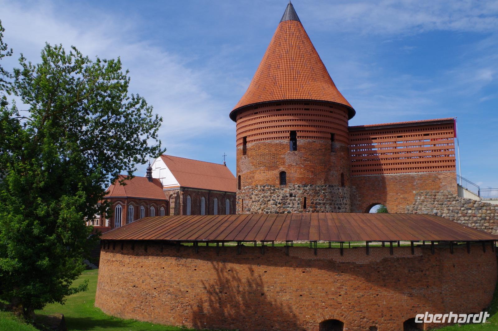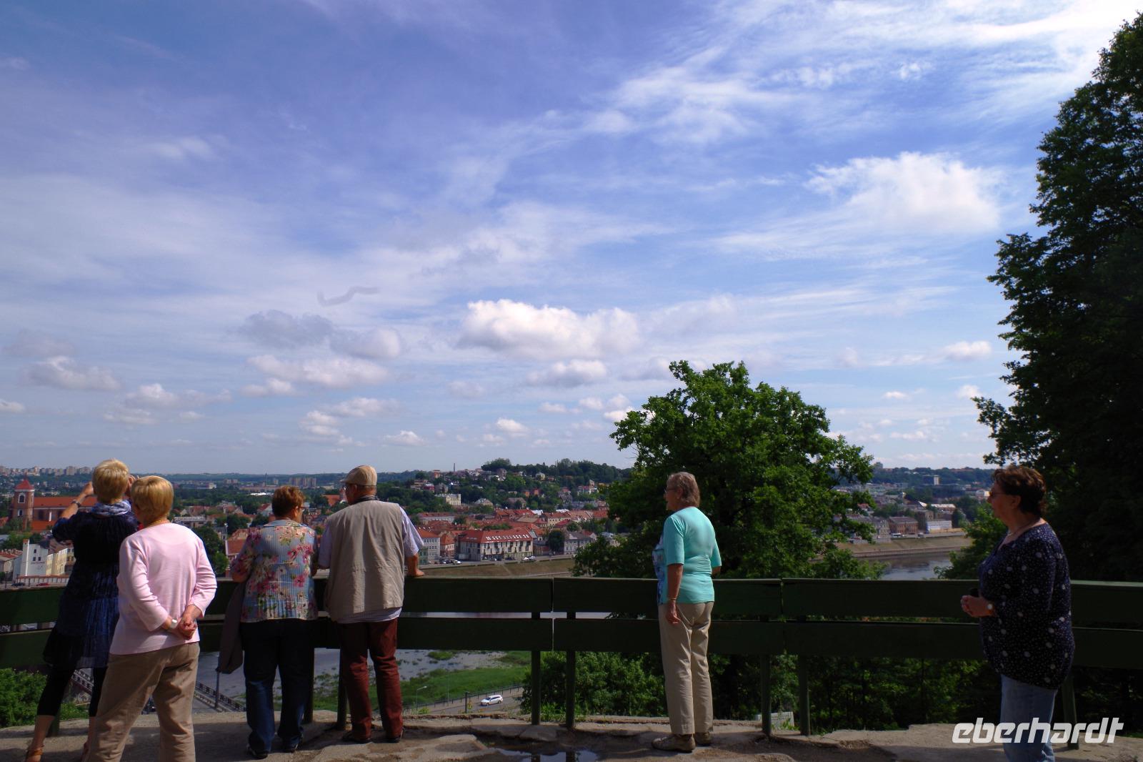 Nach dem Frühstück begrüßten wir unseren neuen Busfahrer Targas, der uns nun bis Tallinn chauffierte. Unser erstes Etappenziel des Tages war Kaunas, die zweitgrößte Stadt Litauens und mit fast 90 % Litauern, die litauischste Stadt. Ca. 100 km von Vilnius entfernt liegt die Stadt am Zusammenfluß von Memel und Neris. 1408 erhielt Kaunas Magdeburger Stadtrecht, aber erst nach der Niederlage der Kreuzritter erblühte die Stadt. Durch die günstige Lage und den Handel mit Russland und Polen siedelten sich viele Handwerker und Händler an, so dass die Hanse bis Mitte des 16. Jhd. hier einen Kontor unterhielt. Kaunas entwickelte sich in eine aufstrebende Handelsstadt. Kriege gegen Schweden und Russland, Pestepidemie und Napoleons Drang nach Moskau brachten den Niedergang der Stadt. Als Polen 1920 Kaunas besetzte, erlebte die Stadt einen kulturellen Aufschwung. Mit dem Hitler-Stalin-Pakt wurde ein düsteres Kapitel eingeläutet, das 1941 mit der deutschen Besetzung fortgesetzt wurde. In der Sowjetzeit geriet Kaunas in Vergessenheit und wurde vernachlässigt. Zunächst fuhren wir mit dem Bus durch die Neustadt von Kaunas. Bereits im 15. Jhd. siedelten sich hier die ersten Juden an. 1941 lebten in Kaunas ca. 40.000 Juden, die von der deutschen Besatzung in Ghettos getrieben wurden und von denen über 35.000 bei Massenerschießungen umgebracht oder 1944 in Konzentrationslager deportiert wurden. Heute umfasst die jüdische Gemeinde Kaunas nur noch ca. 250 Mitglieder. Wussten Sie schon, dass es auch in Litauen einen Schindler gab? Der ehemalige japanische Vizekonsul (1939/40) verschaffte, entgegen Anweisungen, über 2.000 Juden japanische Transitvisas und rettete somit litauische, polnische und deutsche Juden vor den Nazis. Hoch oben an einem Aussichtspunkt genossen wir einen schönen Panoramablick auf die Stadt. Anschließend folgte eine Stadtrundgang zu Fuß. Wir spazierten, vorbei an der alten Burg, zur im 15. Jhd. erbauten, gotischen St. Georgs-Kirche mit angeschlossenem Kloster. Während der Sowjetzeit wurde die Kirche geschlossen und als Lagerhalle genutzt. Bis auf die Altäre wurde alles abmontiert, erhalten waren nur die ehemals schönen Wandmalereien. Die Kirche befand sich damals in einem jämmerlichen, traurigen Zustand. Dank der zahlreicher Spenden wird die Kirche nun Stück für Stück renoviert. Unsere Runde führte uns weiter zum Rathausplatz. Hier steht das Rathaus, welches eher einem Kirchenbau ähnelt, wegen seiner weißen Farbe liebevoll der weiße Schwan genannt wird. Seit 1973 ist das Rathaus auch beliebter Hochzeitspalast und da Samstag war, drängelten sich viele Hochzeitsgesellschaften auf dem Vorplatz. Jungvermählte schreiten freitags und samstags durch das prächtige Haupttor, während Geschiedene dienstags das Rathaus durch den Hintereingang verlassen müssen. Der Rathausplatz wird gesäumt von schönen Gildehäusern und der Fassade der Jesuitenkirche- und kloster, das mit 4 Stockwerken höher gebaut wurde als es das damalige Baugesetz erlaubte. Da aber die Jesuiten anerkannte, gebildete Lehrer waren, wurde es ihnen gestattet, das Gebäude mit mehr als 2 Stockwerken am Rathausplatz zu errichten. An der Ecke des Rathausplatzes steht die Peter-und-Paul-Kathedrale, Litauens größtes gotisches Bauwerk und auch hier wurde Hochzeit gefeiert. Wir bummelten zur backsteinernen Vytautas-Kirche, wo ebenfalls Vorbereitungen für eine Hochzeit liefen. Schräg gegenüber der Kirche erblickten wir das alte Perkunas-Haus, welches im 15. Jhd. von einem deutschen Kaufmann erbaut wurde. Nach individueller Freizeit in Kaunas, wieder bei Sonnenschein (wenn Engel reisen....) ging unsere Reise weiter.
