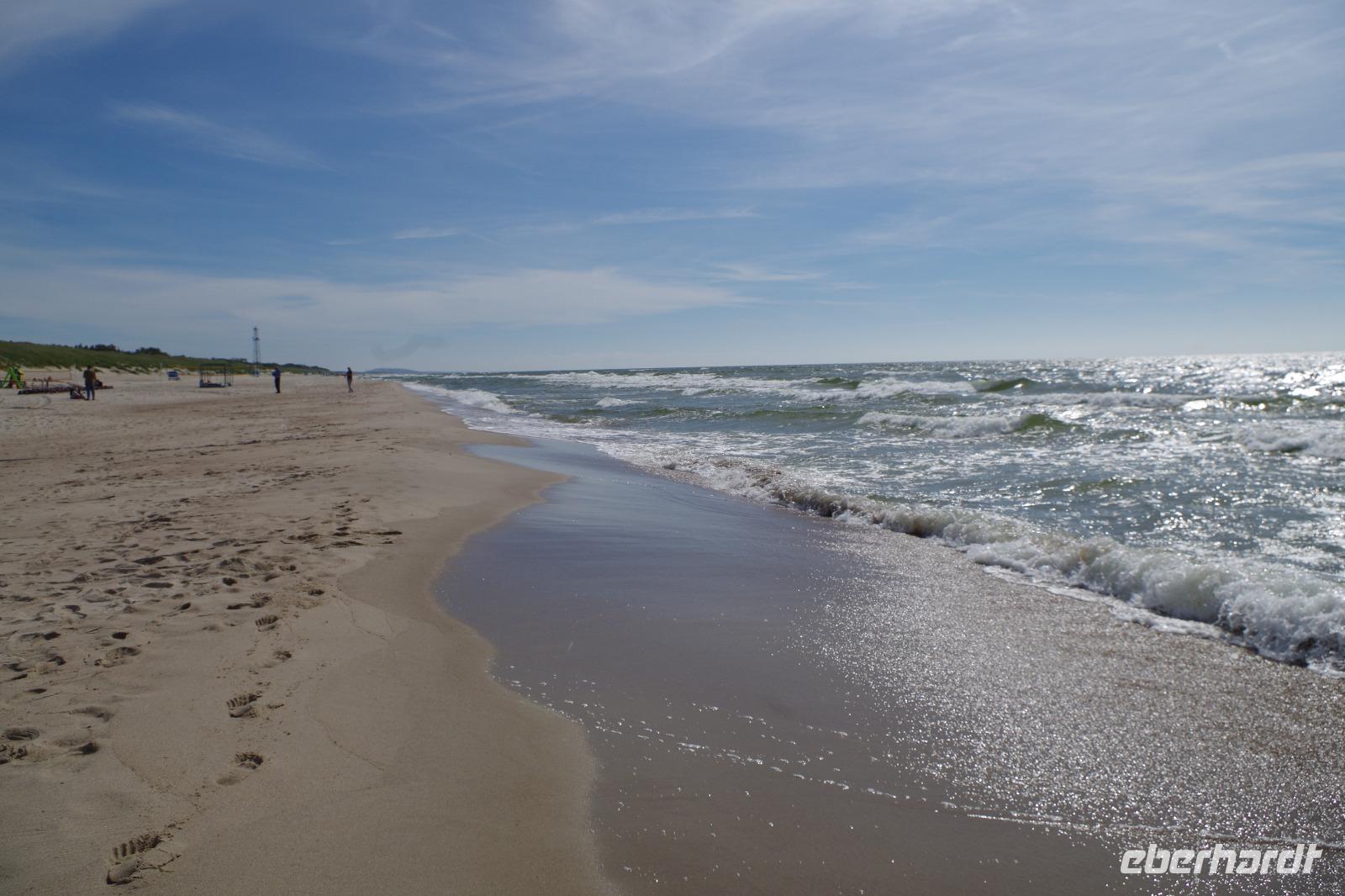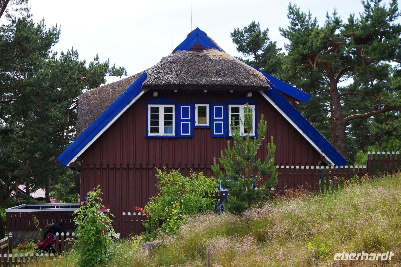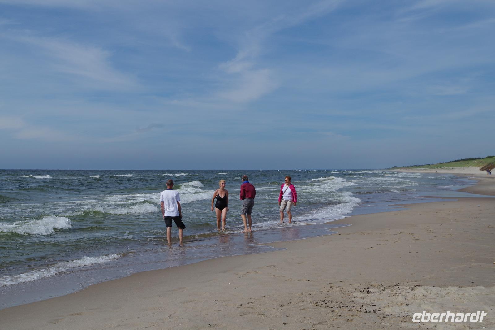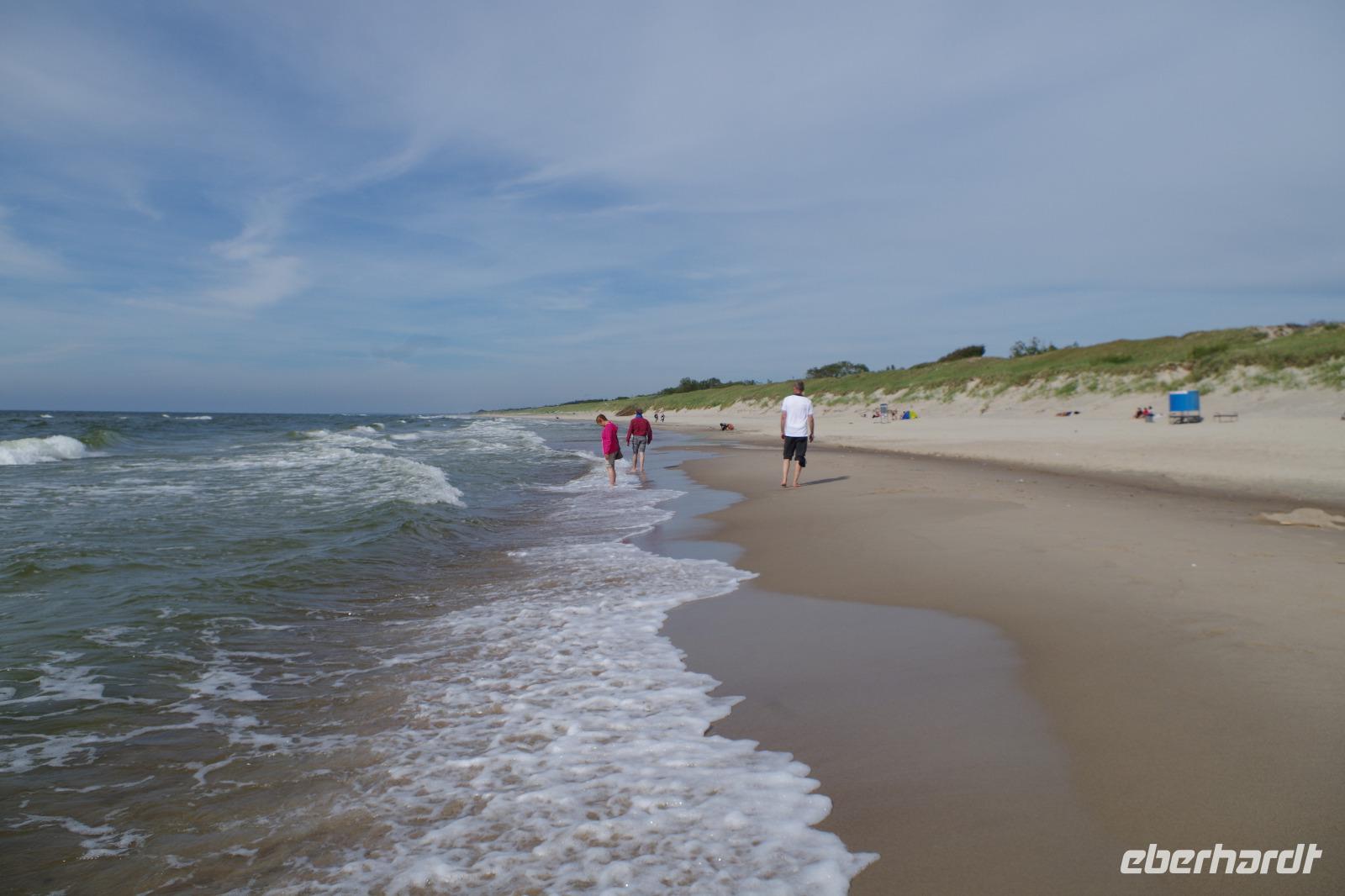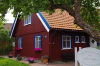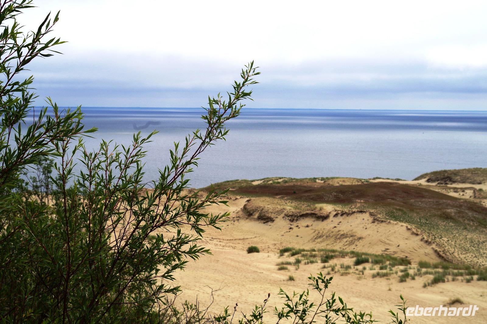 Ein Ganztagesausflug führte uns heute auf die Kurische Nehrung (Neringa). Darauf freuten sich alle, obwohl sich die Sonne noch dezent im Hintergrund hielt. Die Nehrung trennt das Haff (Süßwasser), bis auf die schmale Meerenge bei Klaipeda, von der Ostsee. Somit ist das Haff das größte Binnengewässer Litauens. Die Kurische Nehrung, auch litauische Sahara genannt ist 98 km lang, davon 52 km litauisch, der andere Teil gehört zu Russland. Seit 2002 gehört sie zum Weltnaturerbe der UNESCO. Unweit von Nida (Nidden) befindet sich mit 3,8 km die breiteste Stelle, während die schmalste Stelle bei Lesnoi (russischer Teil) gerade mal 380 m beträgt. Neben der wissenschaftlichen Begründung erzählt auch eine Legende der Riesin Neringa von der Entstehung der Nehrung. Die meisten Ansiedlungen der Nehrung befinden sich auf der geschützten Haffseite. Mit dem Bus fuhren wir zunächst nach Juodkrante (Schwarzort), einer der ältesten Orte der Nehrung. Beim morgendlichen Spaziergang durchstreiften wir den märchenhaften Hexenberg auf einer dicht bewaldeten Düne. Viele Holzskulpturen litauischer Künstler säumen den Weg und erzählen gute und böse Geschichten aus der litauischen Märchenwelt und Mythologie. Weiter ging es zur hohen Düne, wo unser Busfahrer beim Parken sein Können unter Beweis stellte. Auf einem gut befestigten Weg erklommen wir die 52 m hohe Düne, auf deren Gipfel sich eine Sonnenuhr befindet. Von oben eröffnete sich uns ein fantastischer Blick auf die weite Landschaft aus Sand, den rot-weißen Leuchtturm von Nida und auf das Haff. Auch zeigte sich nun auch Klärchen wieder, wenn auch etwas verschüchert und wir hatten schönen Ausblick über die sandige und mit Kiefern bewaldete Nehrung bis auf die russische Seite. Anschließend verbrachten wir unsere Mittagspause in Nida (Nidden), dem reizvollen Fischerdörfchen. Besonders gefielen uns die schönen Holzhäuschen mit den typisch blauen Verzierungen, Holzschnitzereien, in einigen bunt blühenden Vorgärten standen die für Region typischen Kurenkähne. Kleine Restaurants und Cafes luden zum Verweilen zur Mittagszeit ein. Gut gestärkt bummelten wir danach entlang der Promenade, vorbei am Blode-Haus zum Sommerhaus des Literaturnobelpreisträgeres Thomas Mann, welches wir besichtigten. Natürlich durfte bei unserem Ausflug auch ein Besuch des Ostseestrandes, wofür ja die Kurische Nehrung bekannt ist, nicht fehlen. Als Abschluss des Tages genossen wir den herrlichen weißen Sandstrand und das Rauschen der Ostsee. Ein mutiger Reisegast stürzte sich in die Fluten, anderen genügte ein belebendes Fußbad.