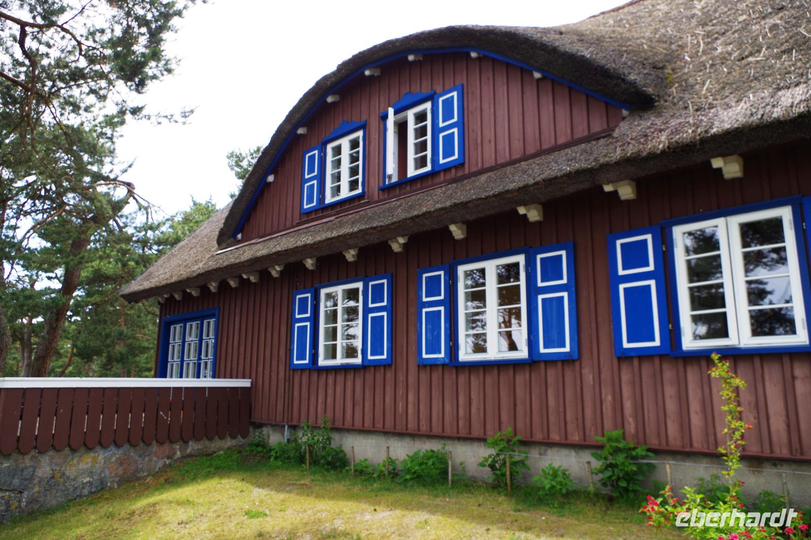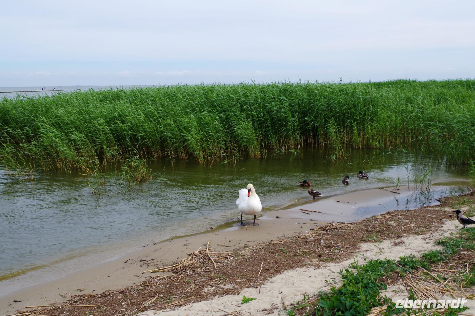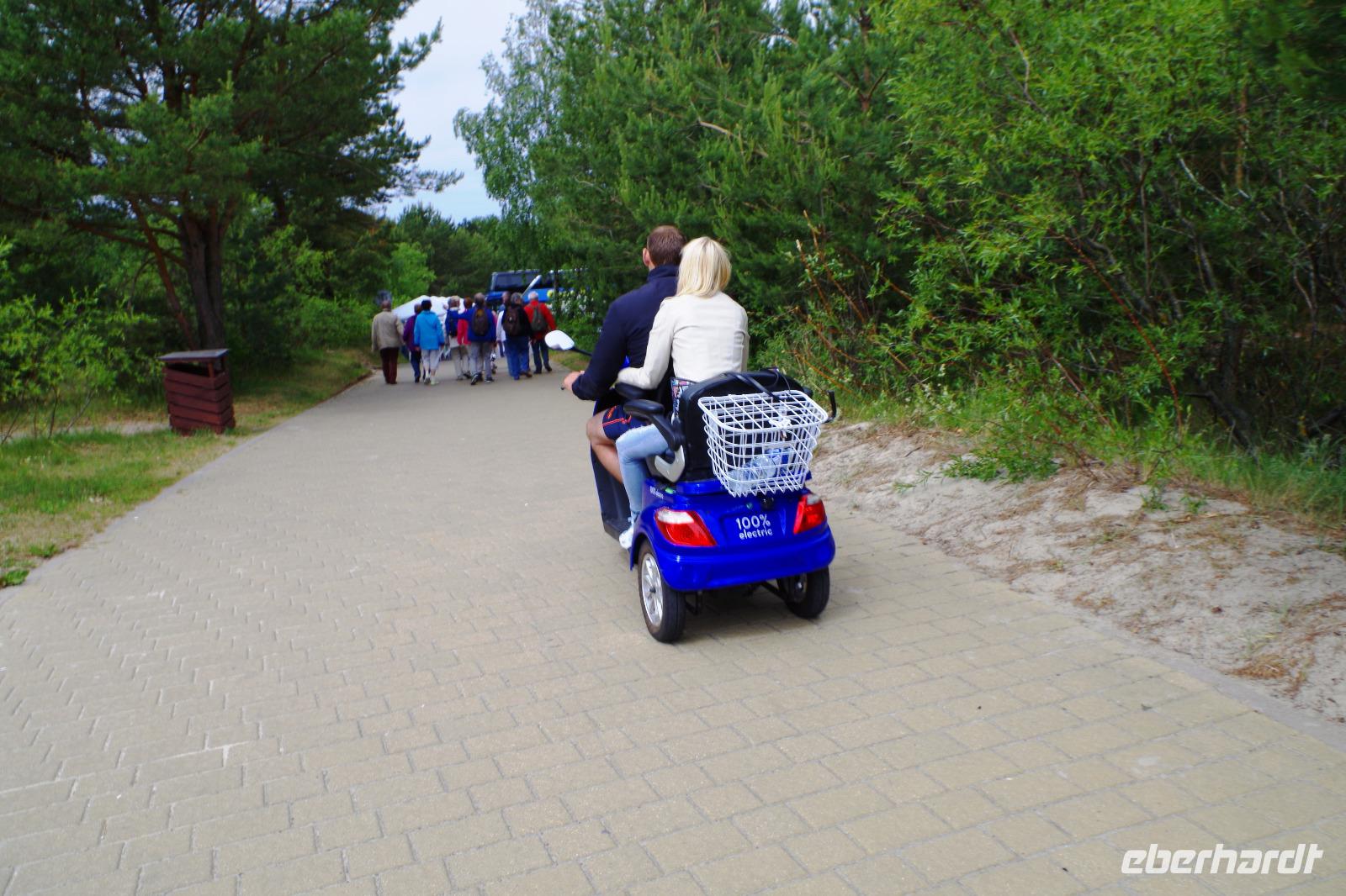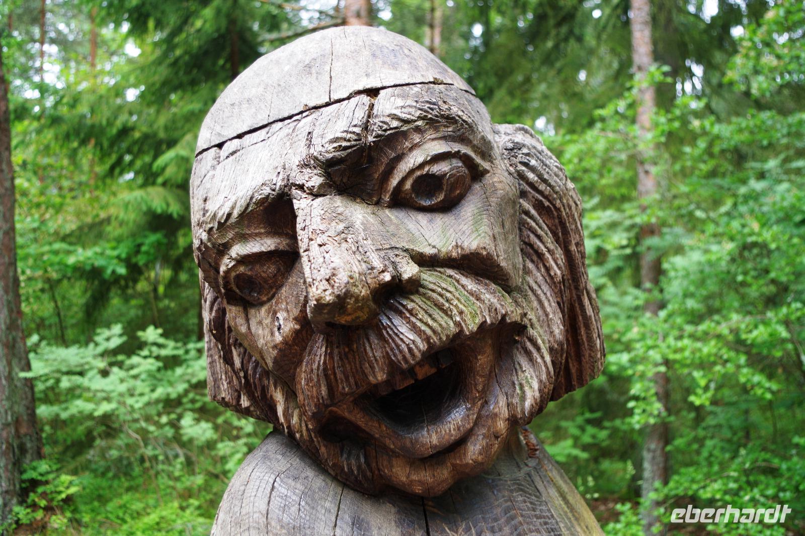 Ein Ganztagesausflug führte uns heute auf die Kurische Nehrung (Neringa). Darauf freuten sich alle, obwohl sich die Sonne noch dezent im Hintergrund hielt. Die Nehrung trennt das Haff (Süßwasser), bis auf die schmale Meerenge bei Klaipeda, von der Ostsee. Somit ist das Haff das größte Binnengewässer Litauens. Die Kurische Nehrung, auch litauische Sahara genannt ist 98 km lang, davon 52 km litauisch, der andere Teil gehört zu Russland. Seit 2002 gehört sie zum Weltnaturerbe der UNESCO. Unweit von Nida (Nidden) befindet sich mit 3,8 km die breiteste Stelle, während die schmalste Stelle bei Lesnoi (russischer Teil) gerade mal 380 m beträgt. Neben der wissenschaftlichen Begründung erzählt auch eine Legende der Riesin Neringa von der Entstehung der Nehrung. Die meisten Ansiedlungen der Nehrung befinden sich auf der geschützten Haffseite. Mit dem Bus fuhren wir zunächst nach Juodkrante (Schwarzort), einer der ältesten Orte der Nehrung. Beim morgendlichen Spaziergang durchstreiften wir den märchenhaften Hexenberg auf einer dicht bewaldeten Düne. Viele Holzskulpturen litauischer Künstler säumen den Weg und erzählen gute und böse Geschichten aus der litauischen Märchenwelt und Mythologie. Weiter ging es zur hohen Düne, wo unser Busfahrer beim Parken sein Können unter Beweis stellte. Auf einem gut befestigten Weg erklommen wir die 52 m hohe Düne, auf deren Gipfel sich eine Sonnenuhr befindet. Von oben eröffnete sich uns ein fantastischer Blick auf die weite Landschaft aus Sand, den rot-weißen Leuchtturm von Nida und auf das Haff. Auch zeigte sich nun auch Klärchen wieder, wenn auch etwas verschüchert und wir hatten schönen Ausblick über die sandige und mit Kiefern bewaldete Nehrung bis auf die russische Seite. Anschließend verbrachten wir unsere Mittagspause in Nida (Nidden), dem reizvollen Fischerdörfchen. Besonders gefielen uns die schönen Holzhäuschen mit den typisch blauen Verzierungen, Holzschnitzereien, in einigen bunt blühenden Vorgärten standen die für Region typischen Kurenkähne. Kleine Restaurants und Cafes luden zum Verweilen zur Mittagszeit ein. Gut gestärkt bummelten wir danach entlang der Promenade, vorbei am Blode-Haus zum Sommerhaus des Literaturnobelpreisträgeres Thomas Mann, welches wir besichtigten. Natürlich durfte bei unserem Ausflug auch ein Besuch des Ostseestrandes, wofür ja die Kurische Nehrung bekannt ist, nicht fehlen. Als Abschluss des Tages genossen wir den herrlichen weißen Sandstrand und das Rauschen der Ostsee. Ein mutiger Reisegast stürzte sich in die Fluten, anderen genügte ein belebendes Fußbad.