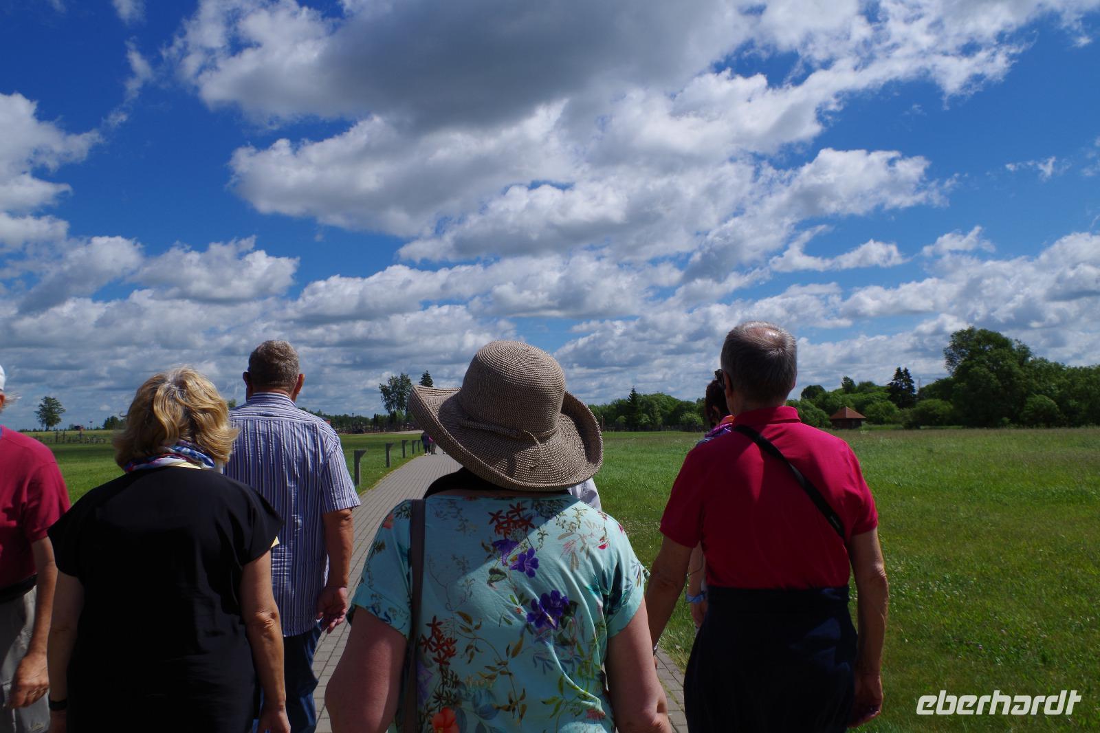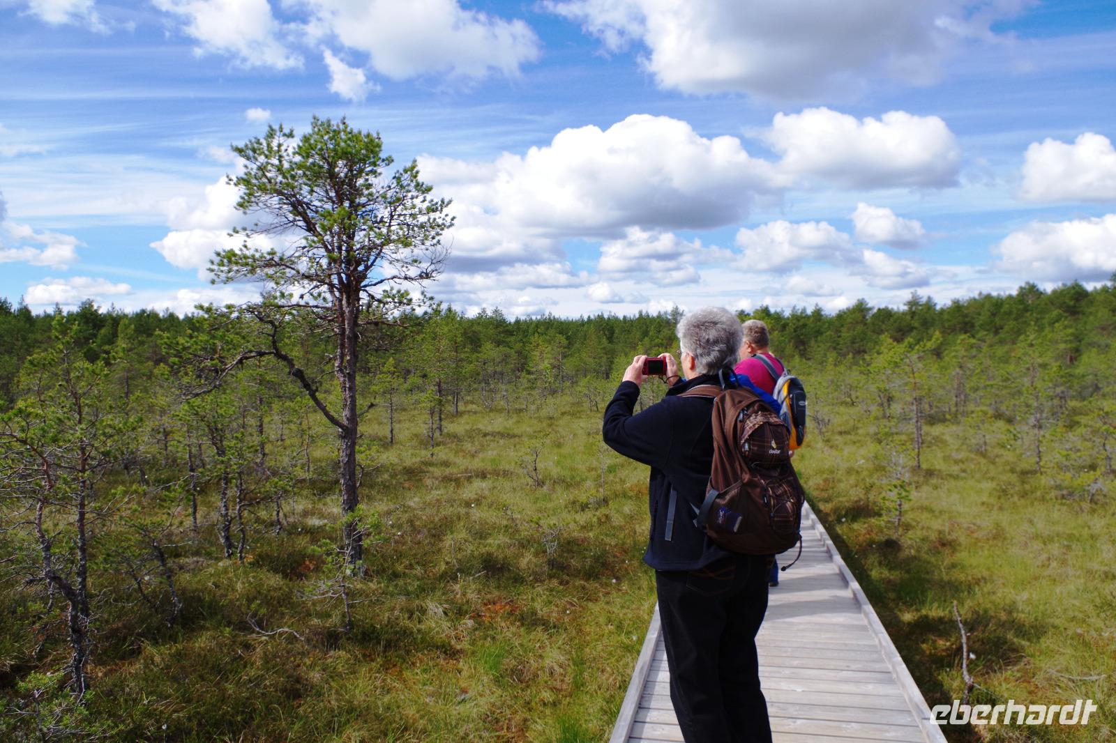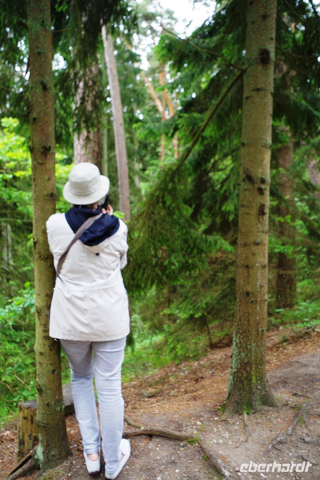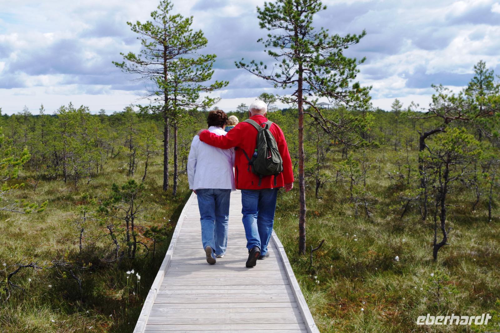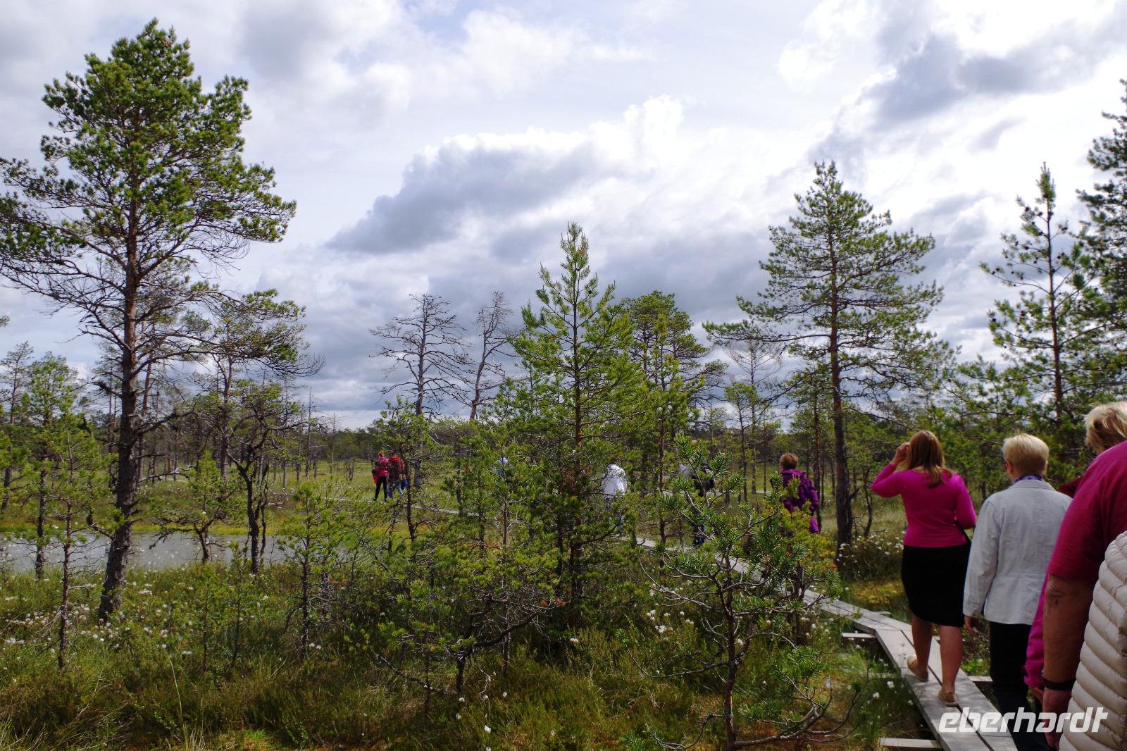 Fast alle Gäste hatten sich für den heutigen Tagesausflug in den ca. 80 km entfernten Lahemaa Nationalpark entschieden. Im Bus begrüßten wir Tina aus Tallinn, die uns bei diesem Ausflug begleitete. Der waldreiche Nationalpark befindet sich östlich von Tallinn an der Küste. Zunächst unternahmen wir eine Wanderung durch das Waldgebiet und durch das Hochmoor Viru Raba und erfuhren einiges über die Flora und Fauna. Auf einem ca. 5 km langen Naturlehrpfad (tw. auf befestigten Holzstegen) durchquerten wir das Naturschutzgebiet. Wir entdeckten rotblühendes Moos, fleischfressende Pflanzen, Wollgras, Heidekraut, blühende Moos-, Blau- und Heidelbeeren sowie Moltebeerengewächse. Kleine, glitzernde Seen durchbrachen die herrliche Landschaft. Es war einfach zauberhaft mystisch. Am anderen Ende wartete unser Bus. Gäste, die etwas schlechter zu Fuß sind, können mit dem Bus bequem das Moor umfahren. Im kleinen Fischerdörfchen Altja unternahmen wir einen Spaziergang zur Küste an. Vorbei an wunderschönen Holzkaten mit blumigen Vorgärten liefen wir bis zur wildromantischen Küste. Wir sahen die alten Bootsschuppen und viele große und kleine Steine - Estland ist wirklich steinreich! Zur Mittagszeit waren wir in die alte, urige Bauernschänke geladen, wo wir mit leckerer, estnischer Bauernküche (Graupen, Erdapfelstampf, Fisch, Saurem, Brot, Pilzragout und Blaubeerkuchen) bewirtet wurden. Nach einem Fotostopp am Gutsanwesen Sagadi fuhren wir zum Gutshof Palmse, welcher über Jahrhunderte der deutsch-baltischen Adelsfamilie von der Pahlen gehörte. Heute wird es als Museum, Hotel und als Naturschutzzentrum genutzt wird. Hier besichtigten wir das Herrenhaus, wo in den stilvoll eingerichteten Räumen altes Mobiliar, Fotos und Gemälde aus längst vergangenen Zeiten und eine nostalgische Stereoanlage zu sehen und zu hören sind. Im Ankleidezimmer konnte, wer wollte, der damalige Kleiderstil am eigenen Leibe ausprobiert werden. Im hauseigenen Weinkeller verkosteten wir heimischen Heidelbeerwein und Moosbeerenwein. In Estland werden Weine nur aus Beeren und Früchten hergestellt, denn richtigen Weinbau gibt es hier nicht. Ein kleiner Spaziergang durch das gepflegte Anwesen mit seiner großzügigen Parkanlage, Teich mit Badehaus, Orangerie, Obstplantagen und eigener Destillerie rundete den Ausflug ab. Ein wunderschöner Ausflug neigte sich dem Ende. Am frühen Abend waren wir in Tallinn zurück. Viele Gäste nutzten diesen freien Abend, um noch einmal durch die Altstadt zu bummeln und in einem der gemütlichen Restaurants zu verweilen. Später begann es zu regnen oder sagen wir besser: der Himmel weinte, weil es der letzte Abend unserer Reise war......