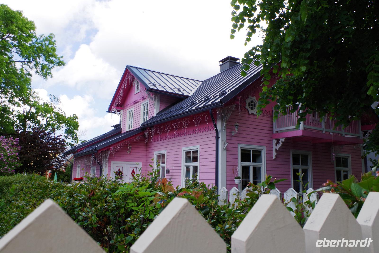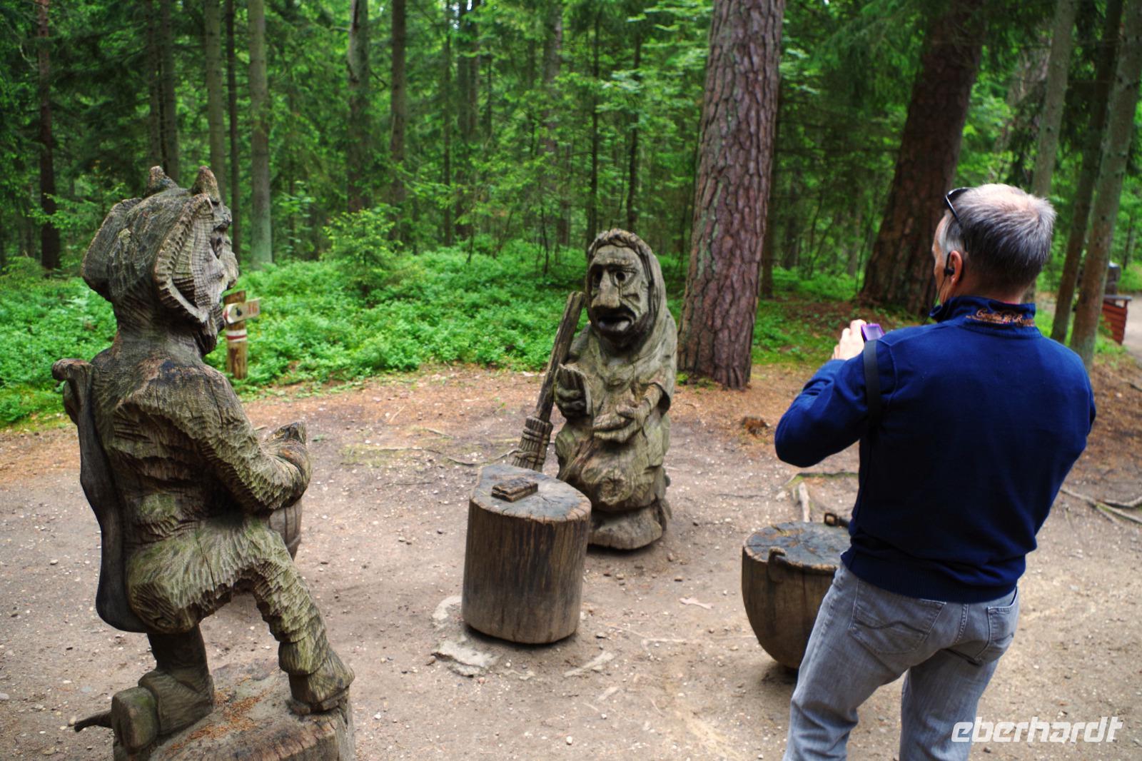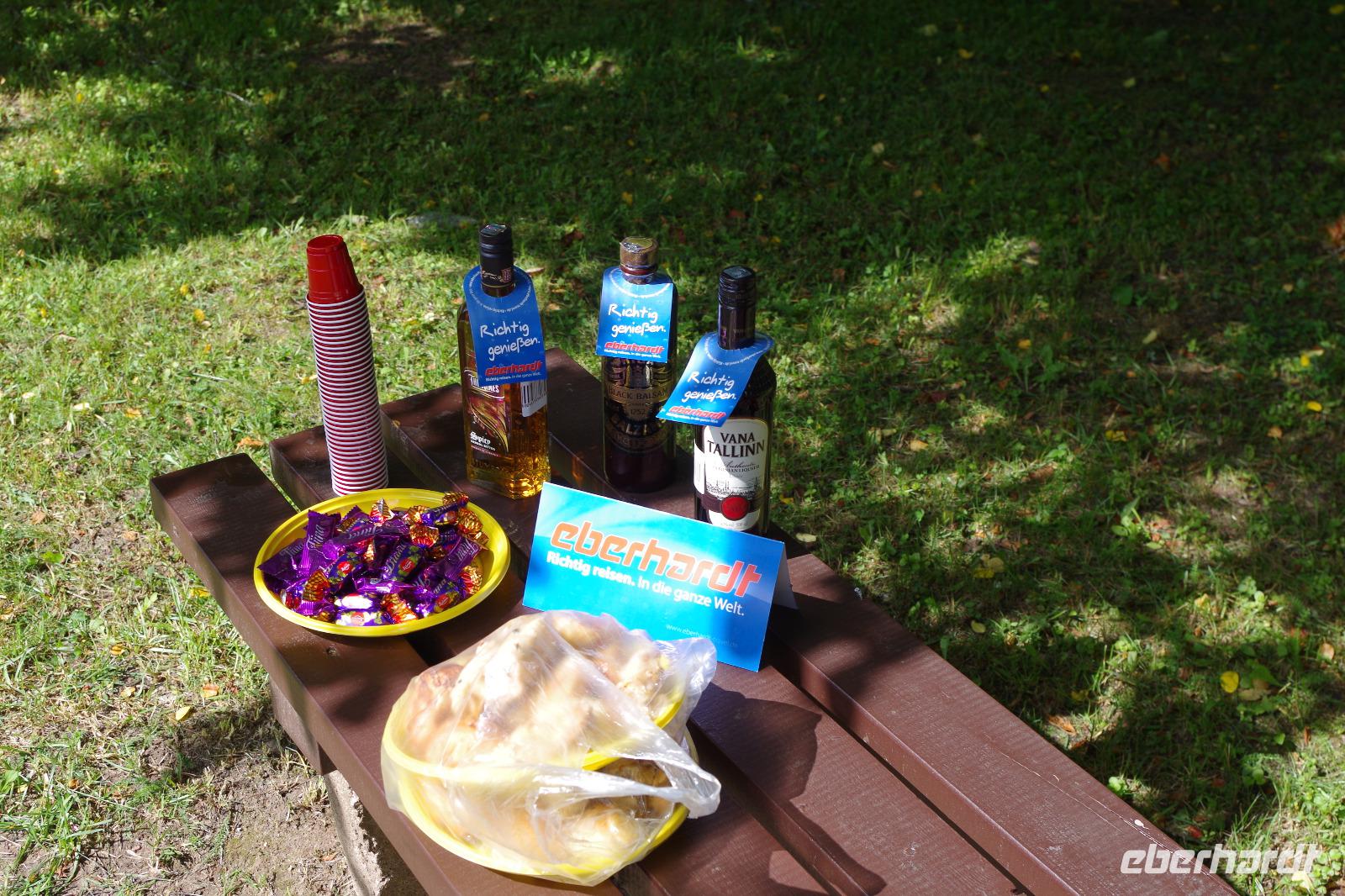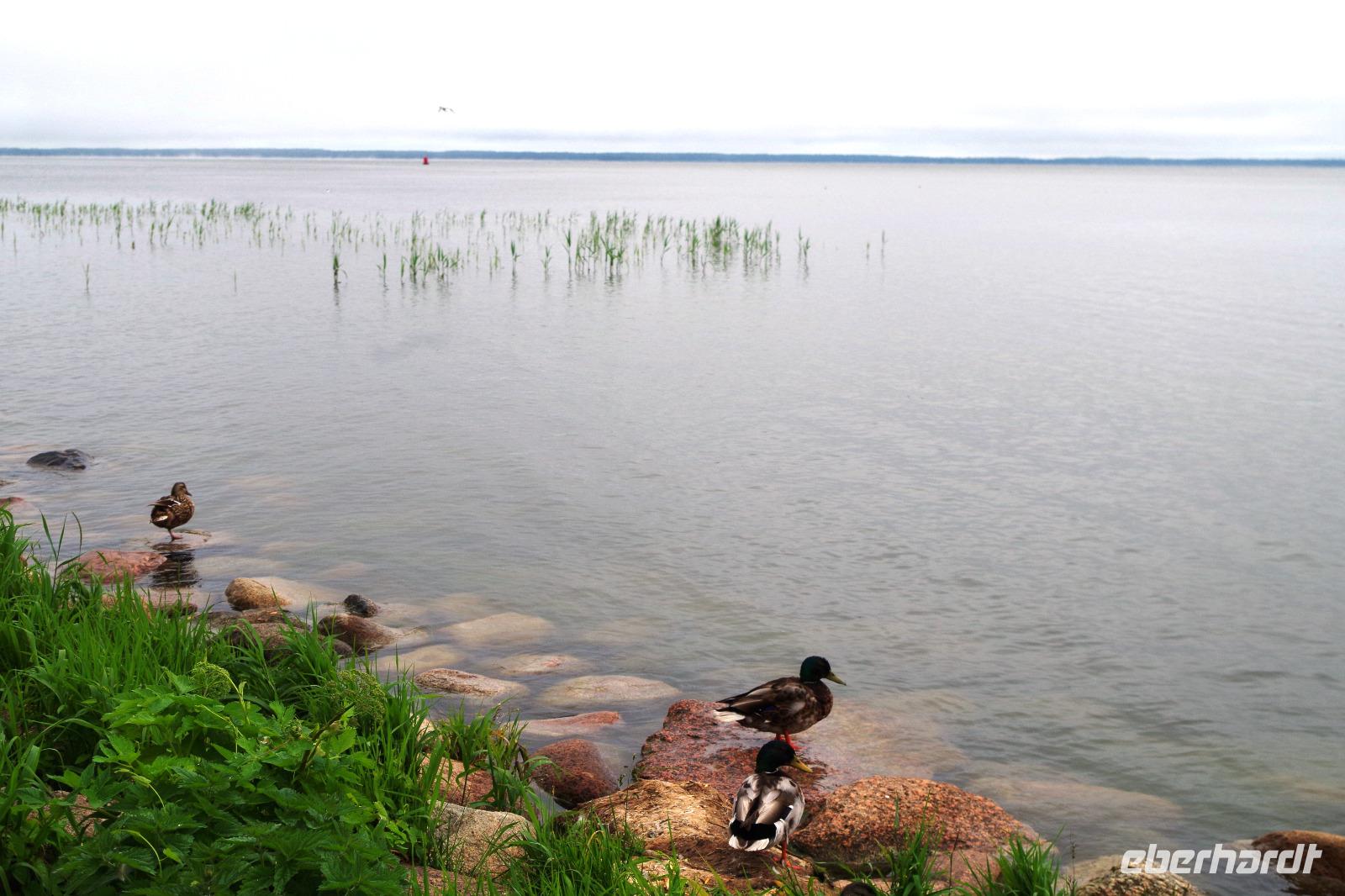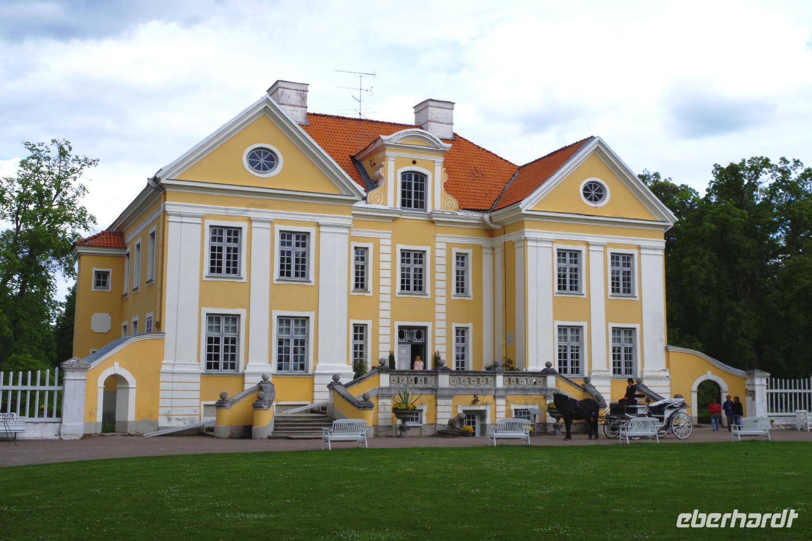 Fast alle Gäste hatten sich für den heutigen Tagesausflug in den ca. 80 km entfernten Lahemaa Nationalpark entschieden. Im Bus begrüßten wir Tina aus Tallinn, die uns bei diesem Ausflug begleitete. Der waldreiche Nationalpark befindet sich östlich von Tallinn an der Küste. Zunächst unternahmen wir eine Wanderung durch das Waldgebiet und durch das Hochmoor Viru Raba und erfuhren einiges über die Flora und Fauna. Auf einem ca. 5 km langen Naturlehrpfad (tw. auf befestigten Holzstegen) durchquerten wir das Naturschutzgebiet. Wir entdeckten rotblühendes Moos, fleischfressende Pflanzen, Wollgras, Heidekraut, blühende Moos-, Blau- und Heidelbeeren sowie Moltebeerengewächse. Kleine, glitzernde Seen durchbrachen die herrliche Landschaft. Es war einfach zauberhaft mystisch. Am anderen Ende wartete unser Bus. Gäste, die etwas schlechter zu Fuß sind, können mit dem Bus bequem das Moor umfahren. Im kleinen Fischerdörfchen Altja unternahmen wir einen Spaziergang zur Küste an. Vorbei an wunderschönen Holzkaten mit blumigen Vorgärten liefen wir bis zur wildromantischen Küste. Wir sahen die alten Bootsschuppen und viele große und kleine Steine - Estland ist wirklich steinreich! Zur Mittagszeit waren wir in die alte, urige Bauernschänke geladen, wo wir mit leckerer, estnischer Bauernküche (Graupen, Erdapfelstampf, Fisch, Saurem, Brot, Pilzragout und Blaubeerkuchen) bewirtet wurden. Nach einem Fotostopp am Gutsanwesen Sagadi fuhren wir zum Gutshof Palmse, welcher über Jahrhunderte der deutsch-baltischen Adelsfamilie von der Pahlen gehörte. Heute wird es als Museum, Hotel und als Naturschutzzentrum genutzt wird. Hier besichtigten wir das Herrenhaus, wo in den stilvoll eingerichteten Räumen altes Mobiliar, Fotos und Gemälde aus längst vergangenen Zeiten und eine nostalgische Stereoanlage zu sehen und zu hören sind. Im Ankleidezimmer konnte, wer wollte, der damalige Kleiderstil am eigenen Leibe ausprobiert werden. Im hauseigenen Weinkeller verkosteten wir heimischen Heidelbeerwein und Moosbeerenwein. In Estland werden Weine nur aus Beeren und Früchten hergestellt, denn richtigen Weinbau gibt es hier nicht. Ein kleiner Spaziergang durch das gepflegte Anwesen mit seiner großzügigen Parkanlage, Teich mit Badehaus, Orangerie, Obstplantagen und eigener Destillerie rundete den Ausflug ab. Ein wunderschöner Ausflug neigte sich dem Ende. Am frühen Abend waren wir in Tallinn zurück. Viele Gäste nutzten diesen freien Abend, um noch einmal durch die Altstadt zu bummeln und in einem der gemütlichen Restaurants zu verweilen. Später begann es zu regnen oder sagen wir besser: der Himmel weinte, weil es der letzte Abend unserer Reise war......