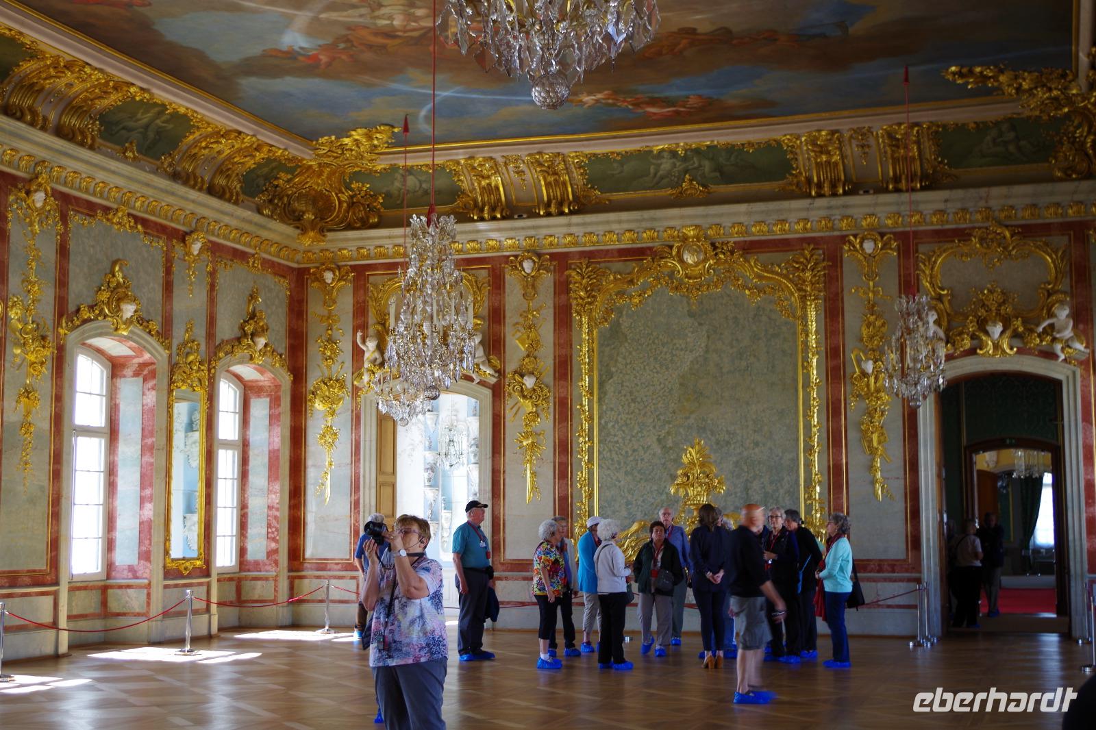 Bei strahlendem Sonnenschein nutzten einige Reisegäste die Möglichkeit, an einem Ausflug zum Barockschloss Rundale, unweit von Bauska teilzunehmen. Auf einer Führung erhielten wir auf kurzweilige und charmante Art einen Einblick in die Geschichte. 1735 wurde auf Wunsch von Zarin Iwanowna der Grundstein für den Bau gelegt. Das 1767 fertiggestellte Schloss sollte als Sommerresidenz für Herzog Ernst Johan Biron dienen. Als Architekt wurde Rastrelli bestimmt, nach dessen Plänen auch das Winterpalais in Sankt Petersburg entstand. Dieser Palast wird auch als lettisches Versaille bezeichnet, ist aber kleiner als das französische Original. Wir erfuhren, dass das Schloss im 1. Weltkrieg fast völlig zerstört, mehrfach geplündert und als Kornspeicher und Schule genutzt wurde. 1972 wurde mit Restaurierungsarbeiten begonnen. Heute nun erstrahlt das Barockschloss fast wie in alten Zeiten. Bei der Führung konnten wir einen großen Teil der 138 Zimmer und Säle bestaunen. Den lichtdurchfluteten Ballsaal, auch Weißer Saal genannt, kann man für Hochzeiten mieten, Kosten 500 € pro Stunde. Bei Sonnenschein bummelten wir anschließend durch den wunderschön angelegten Schloßpark mit dem blühenden Rosengarten, bevor wir im gemütlichen Gasthaus Balta Maja zum rustikalen Mittagsschmaus erkehrten. Am Nachmittag waren wir in Riga zurück. Den letzten Abend verbrachten wir im historischen Gewölberestaurant Melnie Muki (Dunkler Mönch) und speisten sehr vornehm.