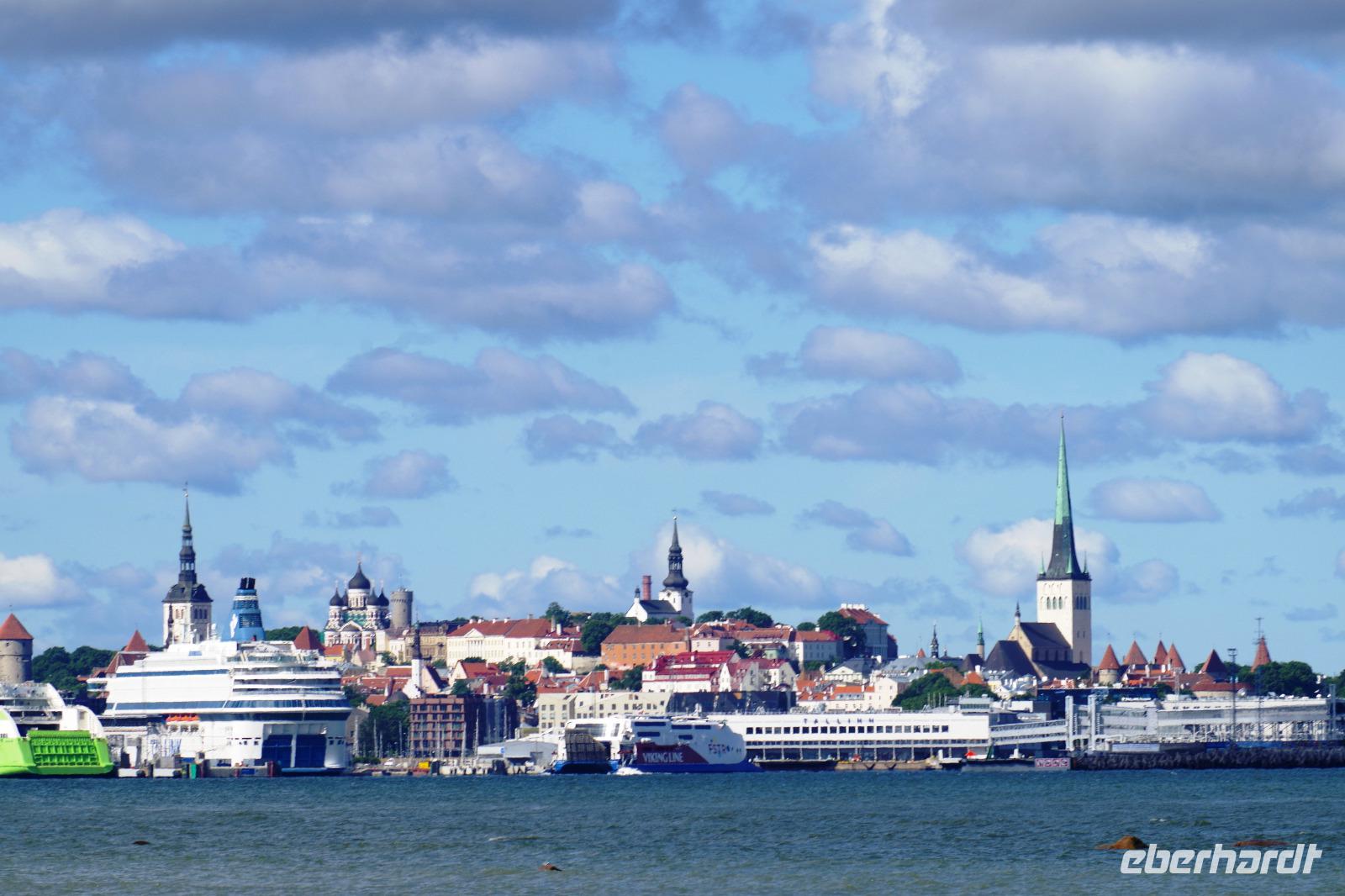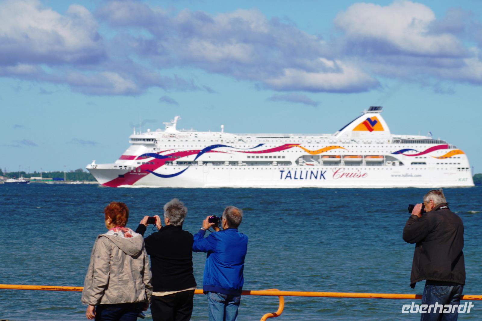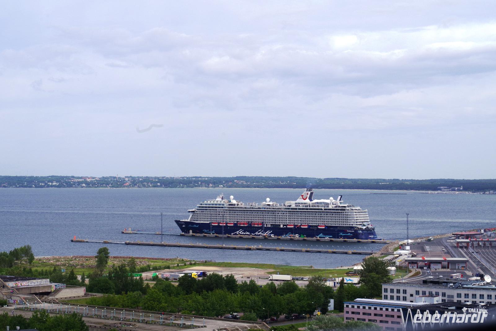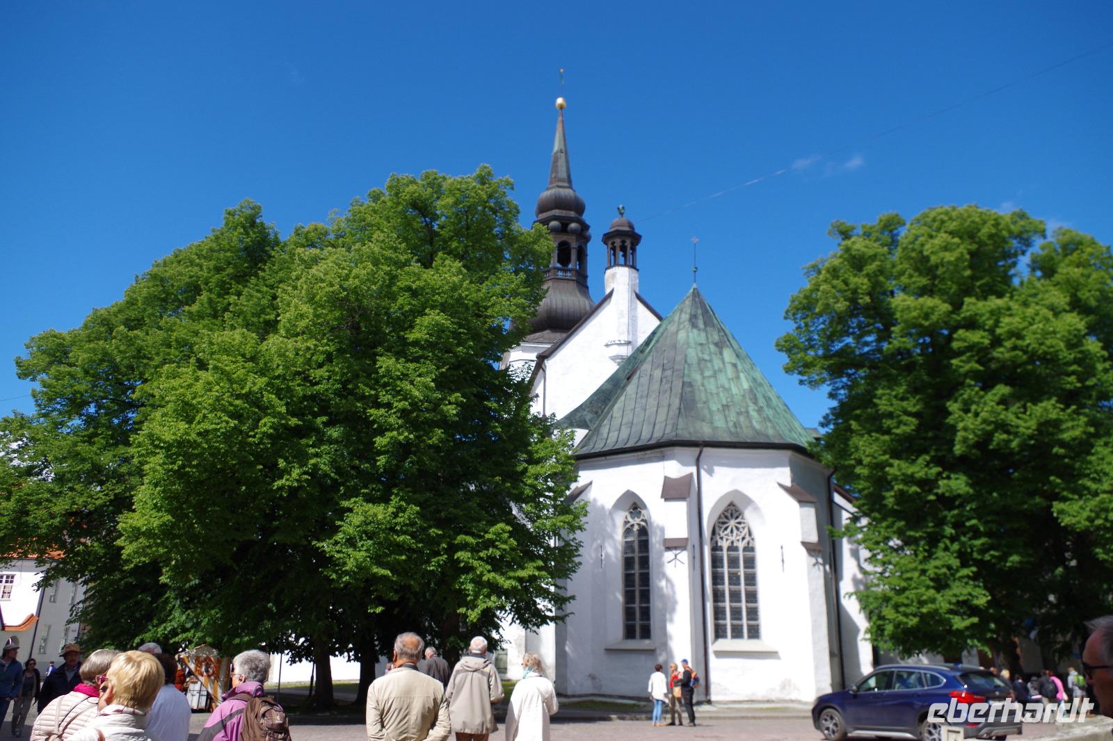 Heute konnten wir ausschlafen und den Tag geruhsam angehen. Bis zum Abflug am Abend hatten wir noch genügend Zeit. Unseren lieben Schweizer Gästen sagten wir Auf Wiedersehen und wünschten ihnen eine erlebnisreiche Weiterreise durch Skandinavien. Für die anderen Gäste wurde noch ein kleines Zusatzprogramm für den späten Vormittag organisiert. Mit dem Bus fuhren wir in den Stadtteil Kadriorg (Katharinenthal) und bummelten durch die riesige Parkanlage, die grüne Lunge Tallinns. Hier ließ Zar Peter der Große eine Sommerresidenz erbauen, die wir von außen besichtigten. Der russische Einfluss prägte auch die restliche Architektur der Siedlung. Viele alte und neue Holzhäuser sind hier zu finden. Wir spazierten zum Präsidentenpalast und am modernen KUMU-Museum vorbei. Dann brachte uns der Bus zur Altstadt, wo wir bis zum Nachmittag noch Freizeit hatten. Einige Gäste erklommen den Turm der Olafskirche (Oleviste). Die Olafskirche hat den höchsten Turm der Stadt. Hinter der Namensgebung dieser Kirche verbirgt sich eine listige Legende, ähnlich dem Märchen vom Rumpelstilzchen. Nachdem man die enge Wendeltreppe (258 Stufen), trotz Gegenverkehr, geschafft hat, wird man oben mit einem fantastischen Panoramablick über die Stadt belohnt. Wie eine Puppenstube präsentierte sich die Stadt von oben, auch der Luxusdampfer Mein Schiff im Tallinner Hafen war auf einmal winzig.