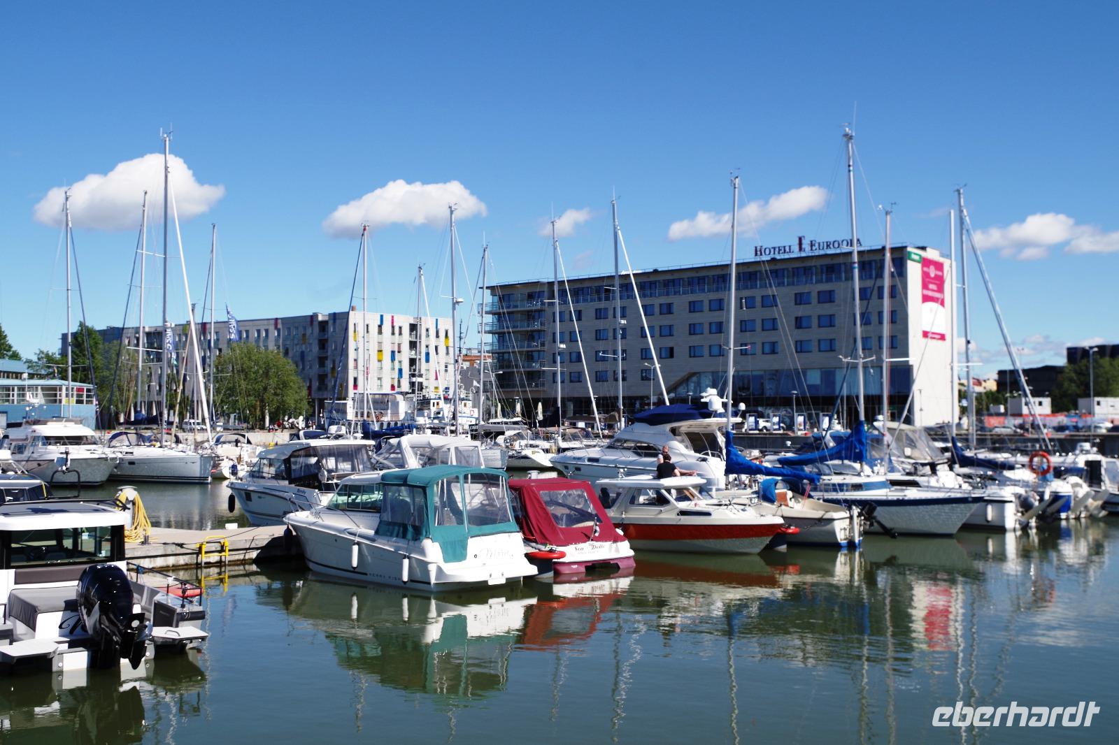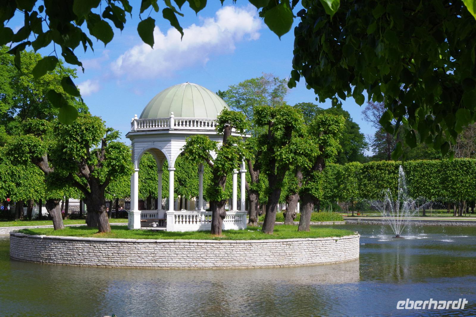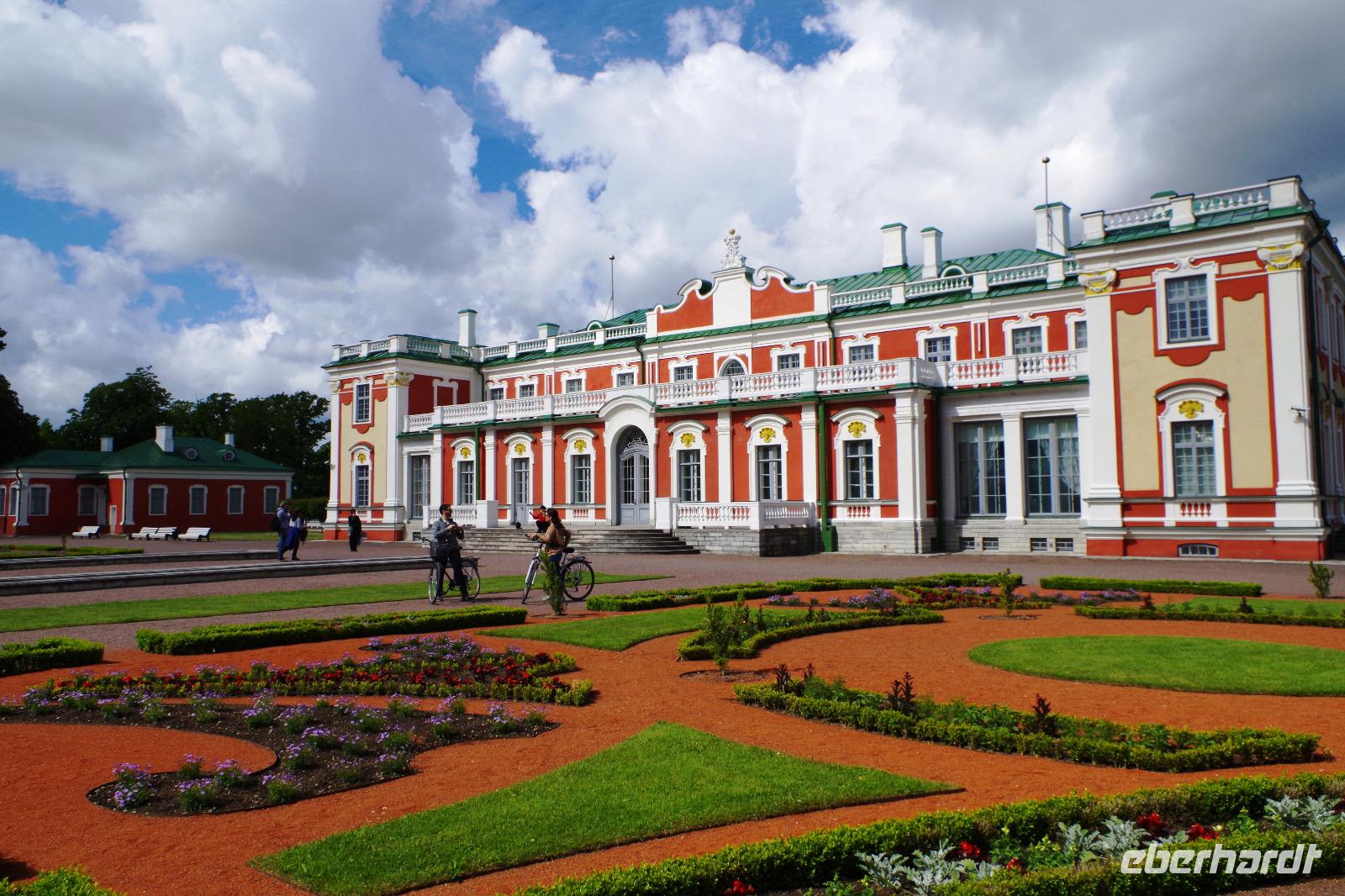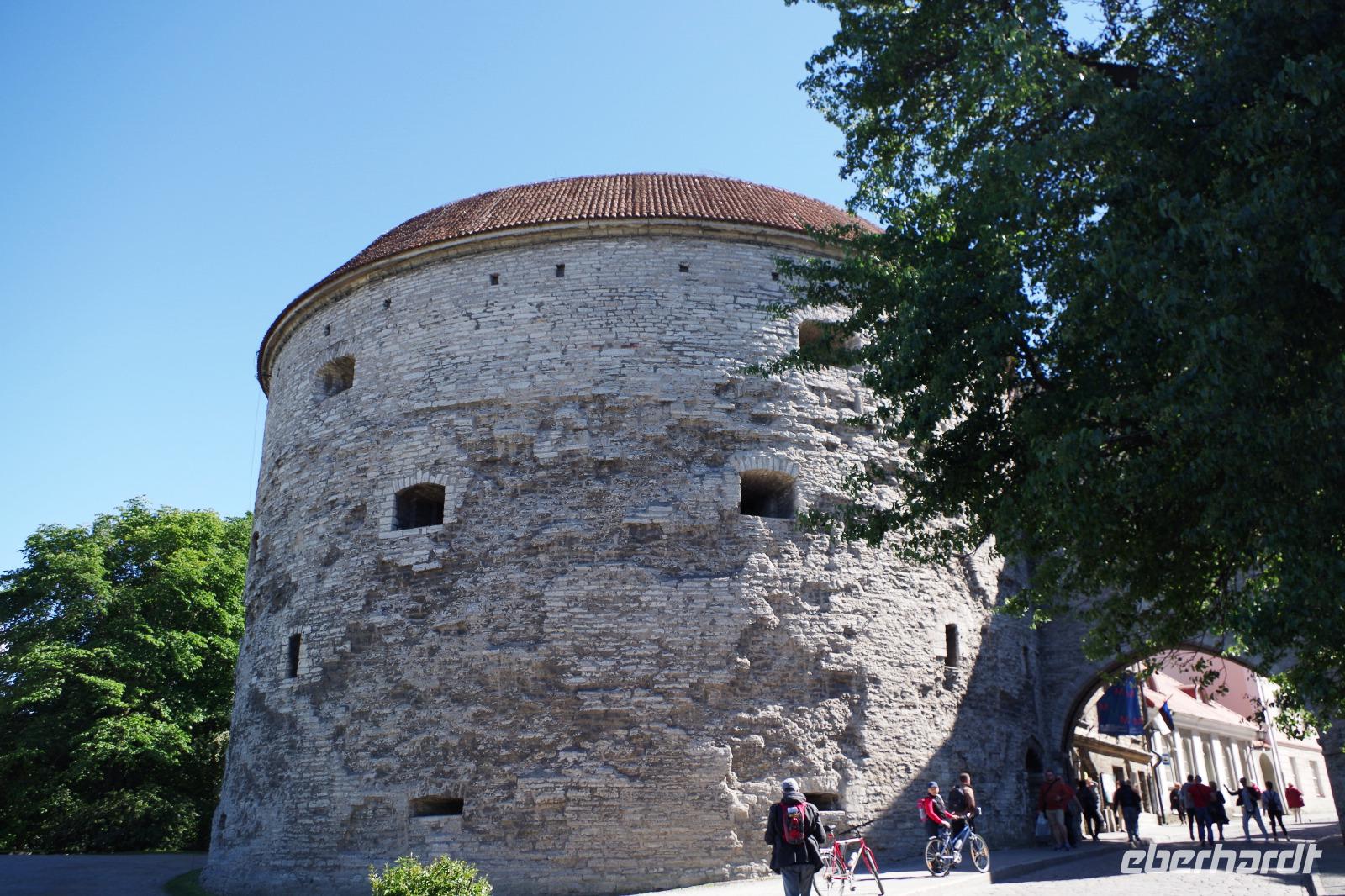 Heute konnten wir ausschlafen und den Tag geruhsam angehen. Bis zum Abflug am Abend hatten wir noch genügend Zeit. Unseren lieben Schweizer Gästen sagten wir Auf Wiedersehen und wünschten ihnen eine erlebnisreiche Weiterreise durch Skandinavien. Für die anderen Gäste wurde noch ein kleines Zusatzprogramm für den späten Vormittag organisiert. Mit dem Bus fuhren wir in den Stadtteil Kadriorg (Katharinenthal) und bummelten durch die riesige Parkanlage, die grüne Lunge Tallinns. Hier ließ Zar Peter der Große eine Sommerresidenz erbauen, die wir von außen besichtigten. Der russische Einfluss prägte auch die restliche Architektur der Siedlung. Viele alte und neue Holzhäuser sind hier zu finden. Wir spazierten zum Präsidentenpalast und am modernen KUMU-Museum vorbei. Dann brachte uns der Bus zur Altstadt, wo wir bis zum Nachmittag noch Freizeit hatten. Einige Gäste erklommen den Turm der Olafskirche (Oleviste). Die Olafskirche hat den höchsten Turm der Stadt. Hinter der Namensgebung dieser Kirche verbirgt sich eine listige Legende, ähnlich dem Märchen vom Rumpelstilzchen. Nachdem man die enge Wendeltreppe (258 Stufen), trotz Gegenverkehr, geschafft hat, wird man oben mit einem fantastischen Panoramablick über die Stadt belohnt. Wie eine Puppenstube präsentierte sich die Stadt von oben, auch der Luxusdampfer Mein Schiff im Tallinner Hafen war auf einmal winzig.