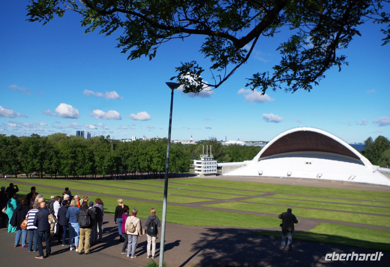 Bei Sonnenschein und sommerlichen Temperaturen begaben wir uns auf eine Erkundungsfahrt durch Tallinn, deren mittelalterliche Altstadt auch auf der Liste des UNESCO-Weltkulturerbe steht. Zur Geschichte: Im 11. Jhd. entstand auf dem heutigen Domberg eine Bauernburg und wurde später als Dänenstadt bekannt. Anfang des 13. Jhd. trat der deutsche Schwertritterorden an die Macht und holte deutsche Handwerker und Kaufleute in die Stadt. Durch den Salzhandel entwickelte sich Tallinn zu einer bedeutenden Hansestadt, wobei die Kaufleute immer mehr Einfluss erlangten. So wurde die Stadt geteilt. Die Oberstadt war den Adeligen und Geistlichen vorbehalten (Domgilde), während die Unterstadt (auch eigenes Münzrecht), wo die Kaufleute wohnten, von einem gewählten Magistrat verwaltet wurde. Mit dem Bus fuhren wir zunächst in die Vororte Tallinns. An der bekannten Sängerwiese machten wir einen Fotostopp. Die legendären Sängerfeste haben eine lange Tradition und sind auch durch die jüngste Geschichte mit der Singenden Revolution bekannt. Auf der muschelförmigen Bühne können ca. 30.0000 Sänger Platz nehmen, deren Gesang fast 500.000 Besucher erleben können. Nicht nur die Größe, sondern auch der weite Blick auf die Tallinner Bucht und über die Stadt faszinierte uns. Anschließend gelangten wir nach Pirita, dem großen Segelsportzentrum der Stadt, welches anlässlich der Olympischen Spiele 1980 erbaut wurde. Nach einer technischen Pause am Passagierhafen fuhren wir mit dem Bus zur Oberstadt.