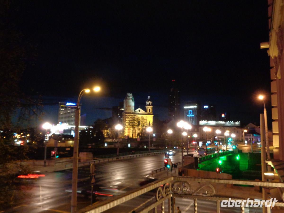 Nach dem Zoll begrüßt uns unser örtlicher Reiseleiter Rolandas und gerade als wir uns zum Bus begeben wollen, öffnen sich die Schleusen des Himmels. Es schüttet und hagelt wie aus Kübeln. Aber nach 10 min ist der Spuk auch schon wieder vorbei, sodass ich davon ausgehe, dass der Himmel Freudentränen über unsere Ankunft vergoß. Wir sind zwar schon recht spät, aber Rolandas läßt es sich nicht nehmen, uns auf einer kleinen Rundfahrt doch schon einmal einen Überblick über die Stadt zu verschaffen.