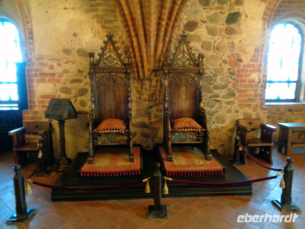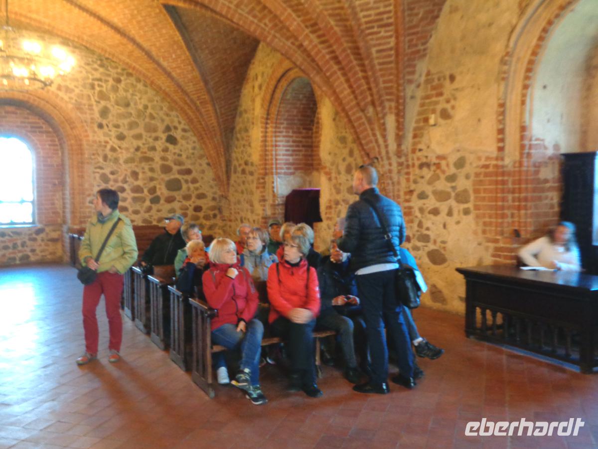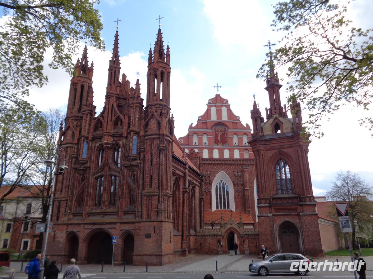 Nach einem sehr reichhaltigen und abwechslungsreichen Frühstück, wie es sich für 4 Sterne gehört, erkunden wir überwiegend zu Fuß die große Altstadt Wilnas, die nicht umsonst auf der Unesco-Welterbeliste steht. Wir beginnen mit der Kathedrale, die außen klassizistisch ist, innen jedoch, vor allem in der Kazimirkapelle tollen italienischen Barock zeigt. Darüber trohnt die obere Burg nit dem Gediminas-Turm. Benannt nach dem Stadtgründer, dem ein Traum von einem eisernen Wolf an dieser Stelle aufzeigte hier 1323 die Siedlung zu gründen. Wir schlendern durch die Burgstraße, in der das Leben erst spät erwacht, aber auch spät in der Nacht endet und erreichen den Präsidentenpalast und den Universitätskomplex einer der größten und ältesten Unis in Europa; gegr. 1579. Durch das jüdische Viertel gelangen wir zum sog. Gotischen Dreieck. Es besteht aus der spätgotischen Bernhardinerkirche und der hochgotischen St. Annakirche von der Napoleon sagte, sie sei so schön. Wenn sie kleiner wäre, würde er sie mit nach Paris nehmen. Die dritte Ecke bestand aus einem Franziskanerkloster, welches jedoch in sowjetischer Zeit abgebrochen wurde. Danach durchschlendern wir das Künstlerviertel Uzupis mit eigener Verfassung und Hymne und gelangen nach einer kurzen Fahrt zum Tor der Morgenröte, an der sich ein letzter Rest der Stadtmauer aus dem 16. Jh. anschließt. Nach dem Durchschreiten des Tores leigt gleich rechter Hand die prächtige Theresienkirche und gleich dahinter die orthodoxen Heiliggeistkirche. Hier treten wir ein während gerade eine Messe zu Ehren der drei Märtyrer gefeiert wird, deren Gebeine hier begraben liegen. Die Luft ist schwer Weihrauchgeschwängert. Vorbei an der prächtigen Philharmonie und der prächtigen barocken Kasimirkirche gelangen wir zum schön sanierten Rathausplatz. Hier stand das erste gotische Rathaus, welches aber durch den heutigen klassizistischen Bau ersetzt wurde. Nach 4 Stunden umfangreichsten Kulturgenusses haben wir uns eine Pause verdient. Wir machen diese schon auf dem Weg nach Trakai. Am Stadtrand befindet sich ein riesiger Einkaufstempel, wo man schauen kann, was der normale Litauer für ein Angebot für seine Wochenendeinkäufe hat. Zahlreiche Cafes und Restaurants mit internationaler und heimscher Küche lassen keine Wünsche offen. Nach einer Stärkung brauchen wir nicht lange bis zur alten Residenz der der litauischen Großfürsten Trakai. Hier befindet sich die einzige Wasserburg des Baltikums im Galves-See. Sie hat etwas vom Stil der Burgen des dt. Ordens, ist jedoch rein litauisch und für die Litauer fast so etwas wie ein Nationaldenkmal. Der Anblick ist einfach malerisch. Nach einer geführten Besichtigung bleibt uns freie Zeit für die Burg und auch den Ort, der stark von der Volksgruppe der Karäer geprägt wurde. Sie wurden vom Großfürsten Vytautas vornehmlich als Leibgarde hier angesiedelt und stammten von der Krim. Ihren alttestamentlichen Glauben praktizieren sie in einem Kenesa genannten Gebetshaus. Typisch für die Karäer sind die bunten Holzhäuser, die man leicht an den drei Fenstern zur Straße hin erkennt, welche sie haben müssen: Eines für Gott, eines für den Großfürsten und das dritte für die Familie. Nach so viel Erlebten beschließen wir den Abend in einem Restaurant in der Stadt mit typisch Litauischem Essen. Viel Kartoffeln, Würste, der berühmte litauische Kümmelkäse, Rote Beete, Kraut, Kwas, Wodka, Schokoladenkuchen und riesige Zeppelinas; in Form der Flugzeuge geformte Kartoffelklöße mit Hackfleischfüllung. Fast biegen sich die Tische unter der Last der Speisen. Da kann man nur sagen: Leben wie Gott in Litauen.