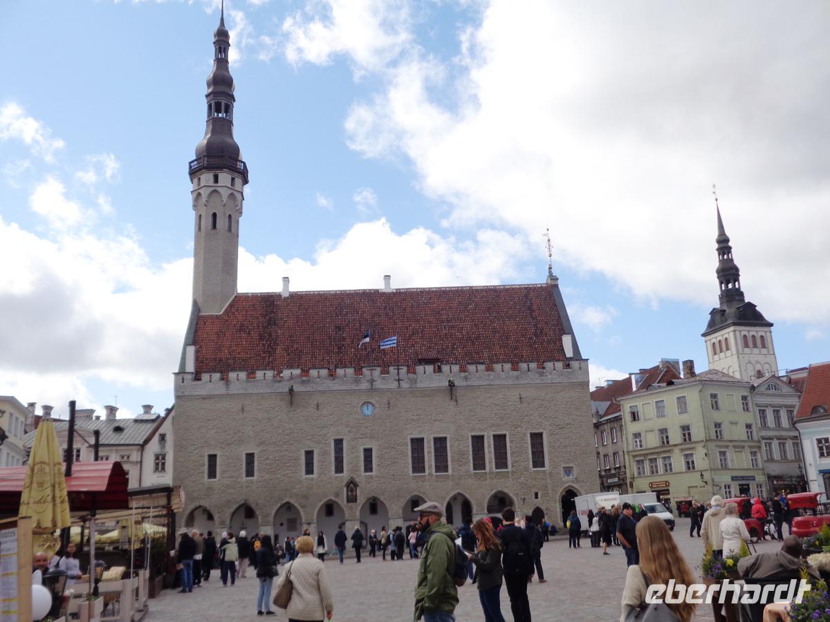 In der Unterstadt umfängt uns allenthalben hanseatisches Flair. Große spitzgiebelige Speicherbauten wechseln mit Gildehäusern, Kirchen und Kapellen. Die größten Stadtkirchen sind St. Olaf im Norden und St. Nikolaus im Süden. In letzterer hat sich u. a. ein Fragment des berühmten Totentanzgemäldes des Lübecker Malers Bernt Notke aus dem 15. Jh. erhalten. Auf einer der Hauptachsen, der Pikk sehen wir nach der Heiliggeistkirche neben einigen schönen Jugendstilhäusern auch hier, wie in Riga ein Schwarzhäupterhaus; diesmal mit dem Schutzheiligen der Gilde, dem hl. Mauritius über einer prachtvollen Barocktür. Durch eine enge Gasse gelangen wir unter einem Durchgang der Ratsapotheke von 1422 auf den Marktplatz. Hier steht seit über 600 Jahren unverändert das Rathaus in stolzer Pracht. Wir schlendern noch ein paar Schritte durch die Altstadt , lassen uns zeigen, wo wir heute Abend speisen werden und können nun den Nachmittag das Weltkulturerbe Altstadt Tallin individuell erkunden.