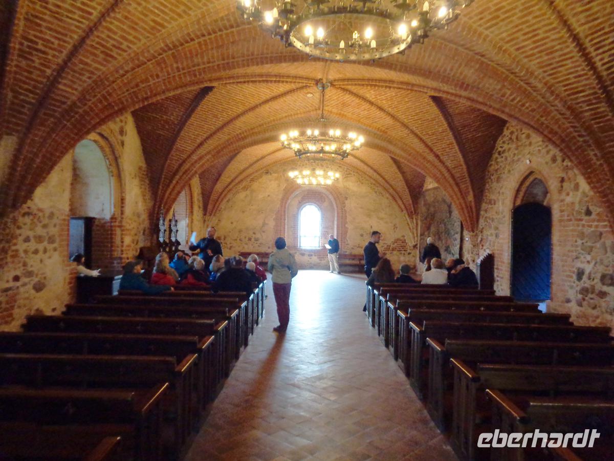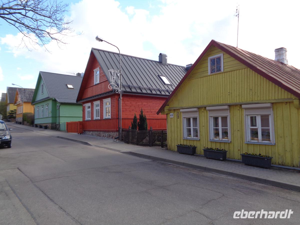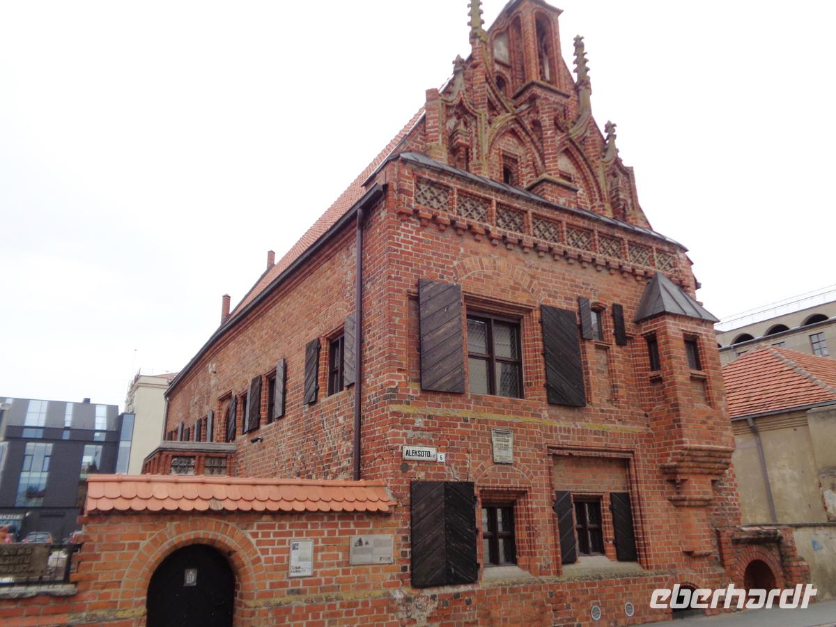Auf die Hanse weist ein sehr schönes gotisches Backsteinhaus, das Perkunashaus hin. Es ist nach einer Statue des baltischen Gewittergottes benannt, die man in einer der Nischen des Hauses gefunden haben will. Statten noch der Vytautaskirche in reiner Backsteingotik einen Besuch ab wo gerade eine Hochzeit war, und schlendern hernach durch die Vilniusstraße, der Hauptmeile der Innenstadt. Schon ist unsere Stadtbesichtigung vorüber in dem Ort, der einst eine reiche Textilindustrie hatte, und auch über eine große jüdische Gemeinde verfügte. Von beidem ist so gut wie nichts mehr zu sehen.