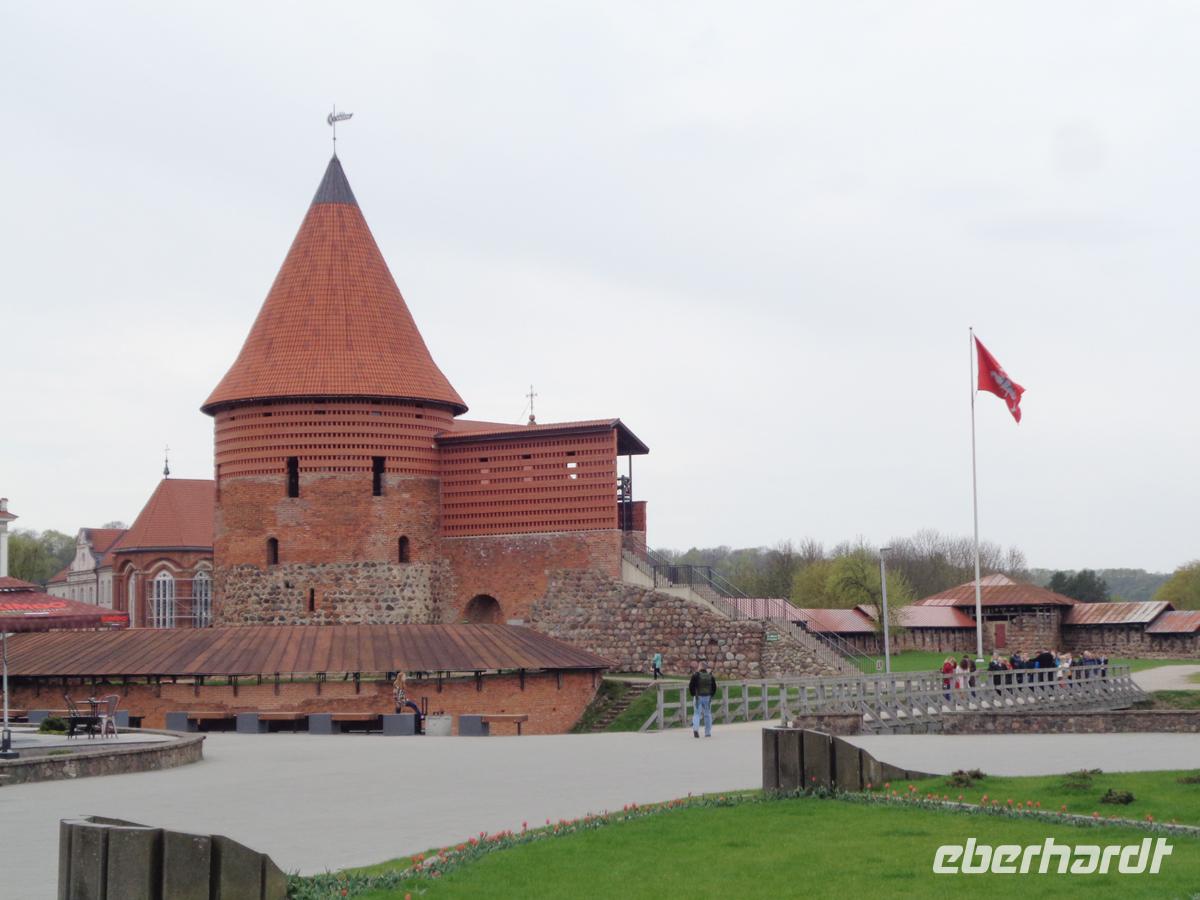 Von Wilna aus reisen wir gut 100 km nach Kaunas. Die zweitgrößte Stadt war zwischen den beiden Weltkriegen sogar Hauptstadt des Landes. Schon immer war sie hart umkämpft. Der deutsche Orden hätte zu gerne seine Ostpreußischen und Livländischen Besitztümer durch die Einnahme dieses Gebietes miteinander verbunden. Und so wurden Stadt und Burg immer wieder angegriffen und beschädigt. Auch heute ist von der Burg im Grunde nur noch ein einziger Turm übrig.