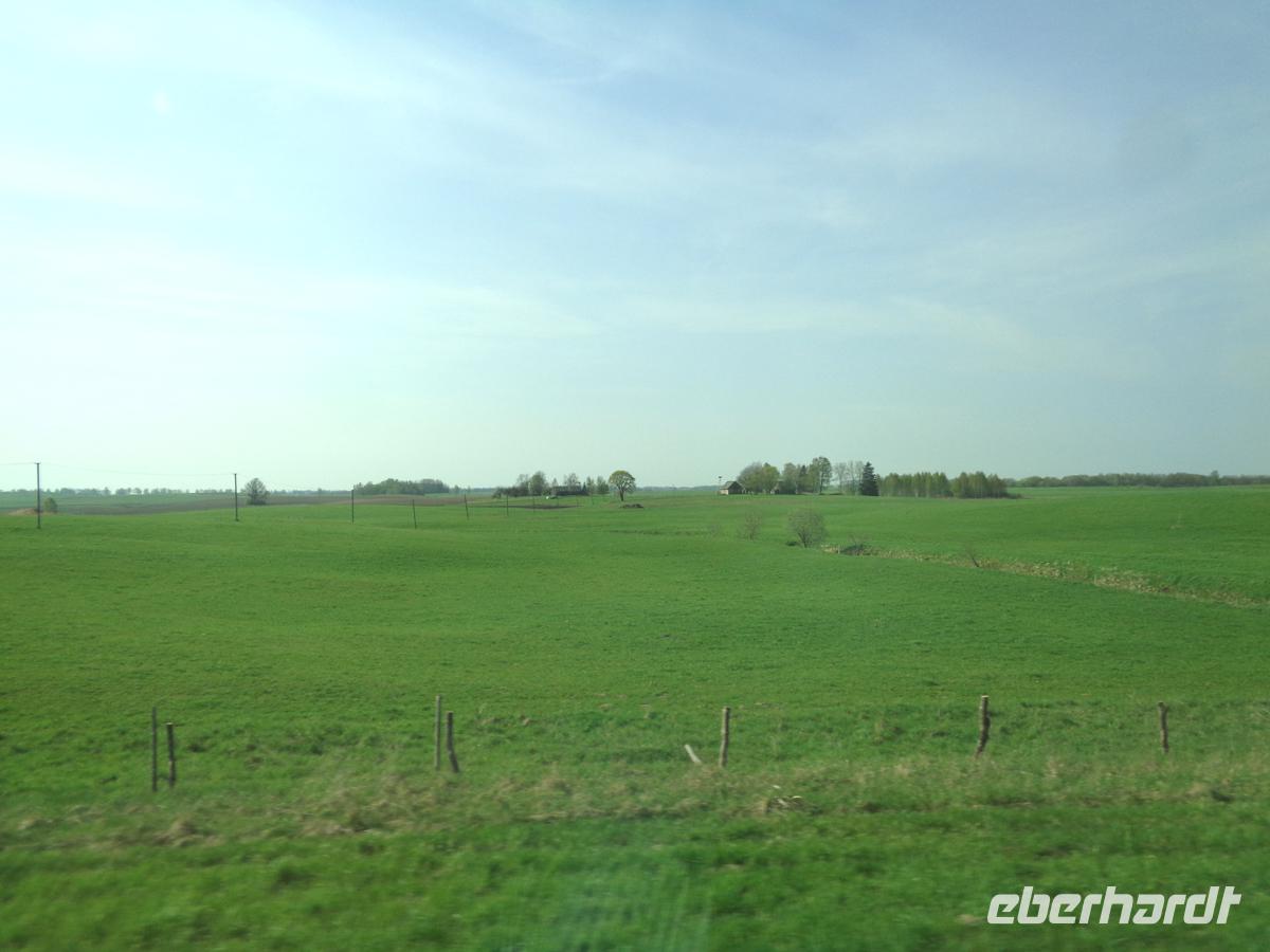 Nachdem wir noch in der Nähe von Siauliai (Schaulen) unsere Mittagsrast in einem schicken Rasthof mit Bonsai-Steingarten genossen haben, begeben wir uns auf den Weg nach Norden in Richtung Riga. Wie schon den ganzen Tag zieht endlose Frühlingslandschaft an uns vorbei, nur leicht wellig oder gehügelt. Wald und Wiesen, sowie Felder werden nur selten von Dörfern unterbrochen. Oft sehen wir kleine Einzelgehöfte in der Weite der Landschaft. Die baltischen Staaten sind, abgesehen von den städtischen Zentren rein agrarisch geprägt.