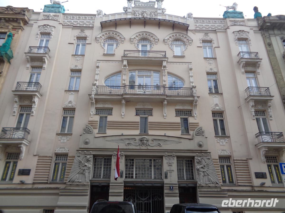 Heute ist Feiertag. Den 1. Mai, verbinden viele Letten mit dem 1. Unabhängigkeitstag am 4. Mai durch Brückentage. Aber alle Geschäfte und auch die meisten Sehenswürdigkeiten sind geöffnet. Wir begeben uns mit dem Bus zunächst in den Art Nouveau District. Jugendstil gibt es zwar in ganz Riga, aber hier tritt dieser Architekturstil geballt und in einer für Riga kolossalen Ausprägung auf. Herausstechend sind vor allem die Bauten von Michael Eisenstein (1867-1921). Die Wohnungen hinter den von Ornamentik und Plastiken überbordenden Fassaden haben mitunter von 200 bis zu 400 qm. Wohnfläche oder mehr. Die Gentrifizierung ist hier schon lange abgeschlossen. Ein Quadratmeterpreis von 5000 € ist noch sehr günstig. Und so verwundert es nicht, dass sich hier auch viele Botschaften befinden.