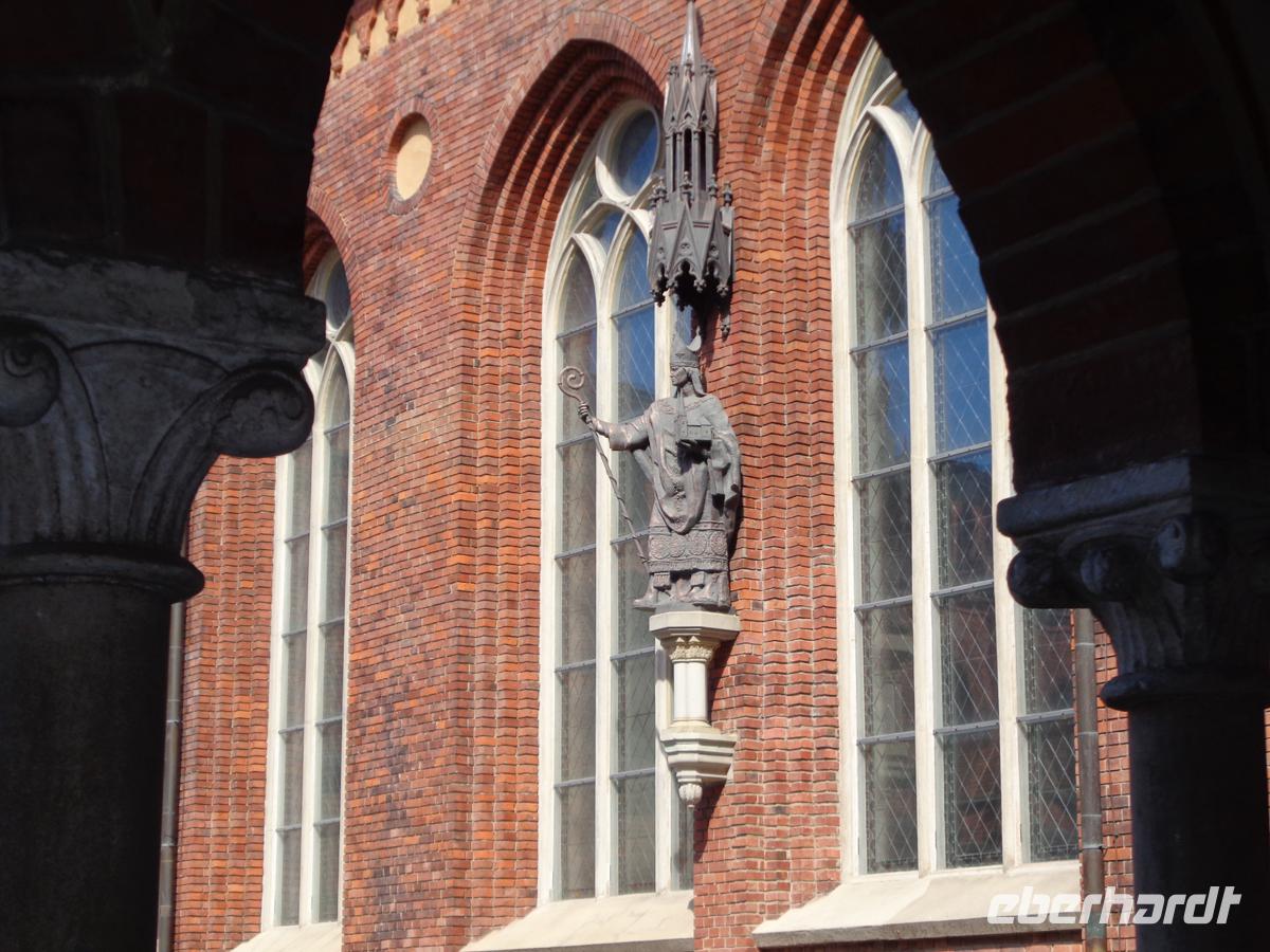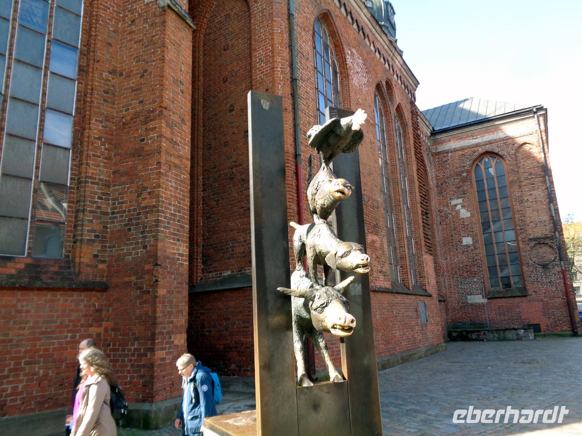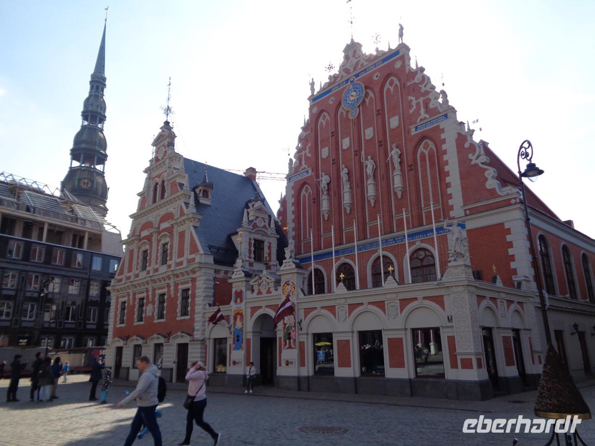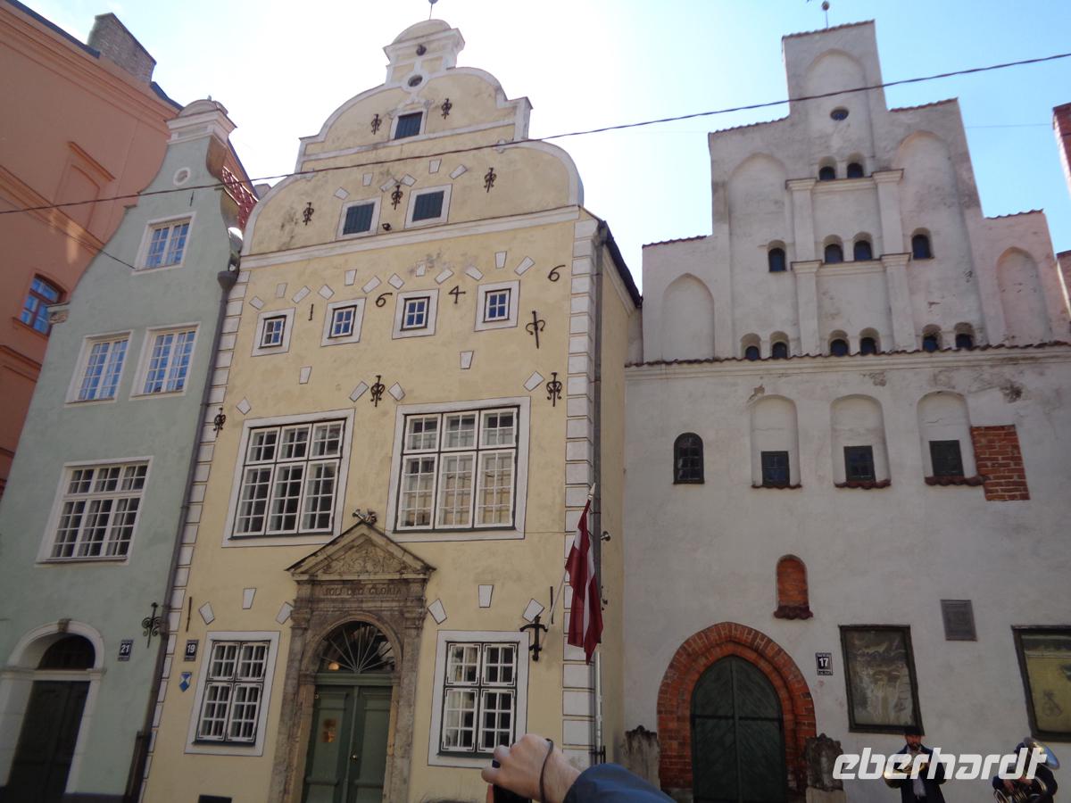 Zu Fuß erkunden wir die Altstadt. Gegenüber des Rathauses auf dessen Platz auch ein Roland steht, befindet sich das Schwarzhäupterhaus. Benannt nach der Vereinigung unverheirateter Kaufleute. Einen Steinwurf entfernt stehen wir schon vor der Kirche St. Petri mit ihrem 133 m hohen Turm. Für 8 € kann man hinauffahren und hat einen wunderbaren Blick über die Stadt. Vorher muss man aber noch den regulären Eintritt für die Kirche bezahlen. Insgesamt 11 € sind recht viel und sorgen dafür, dass sich keine langen Warteschlangen bilden. Immerhin. Schön ist der Livenplatz vor den Gildehäusern, die schon im 14. Jh. entstanden, heute aber ein Ensemble aus purer Neogotik des 19. Jh. bilden. Letten waren in den Gilden nicht zugelassen, nur Deutsche Kaufleute. Aus Groll über seine Ablehnung errichtete ein reicher lettischer Kaufmann direkt gegenüber ein großes Haus mit zwei Karten auf den Türmchen, deren Hinterteile sich den Gildehäusern zuwandten. Per Gerichtsbeschluss mussten die Katzen jedoch umgedreht werden.