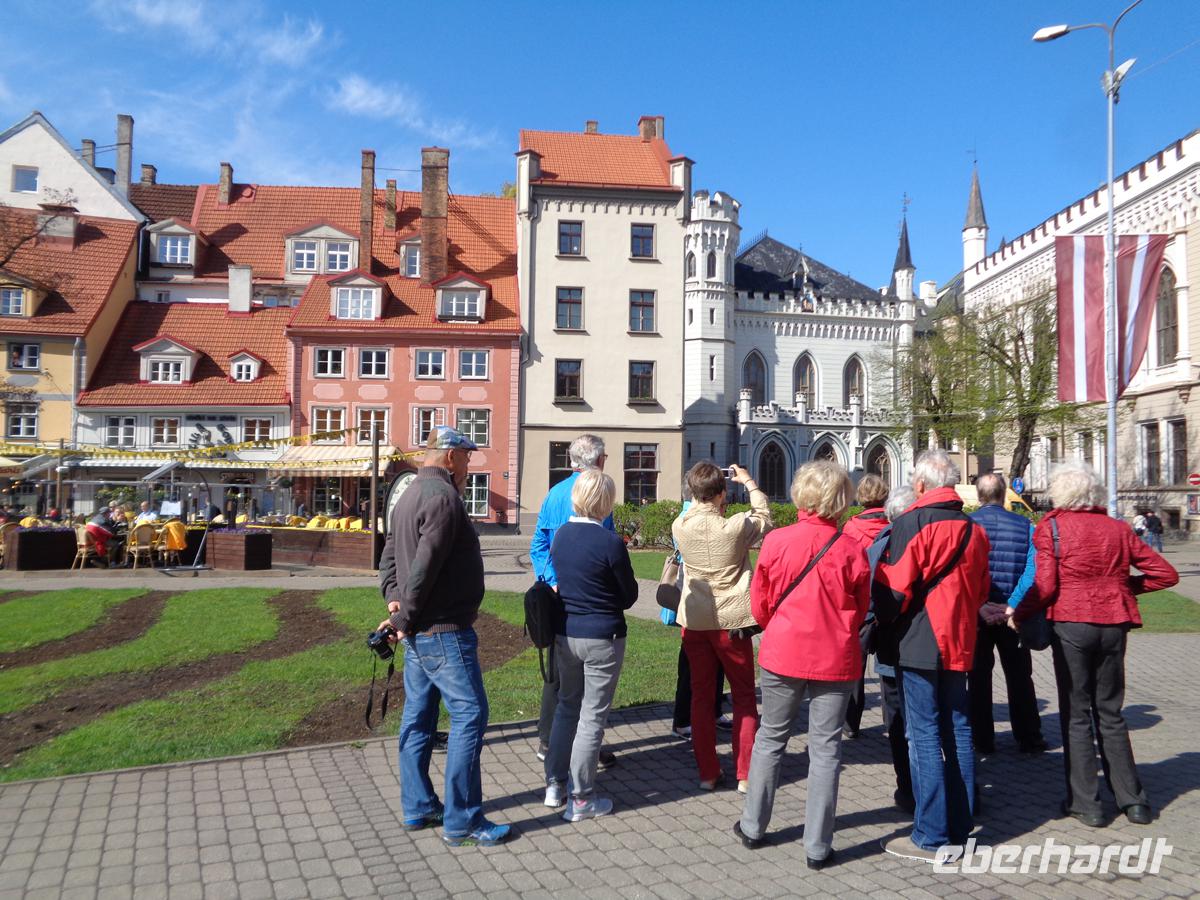 Im altehrwürdigen Dom treffen wir auf den Stifter und Stadtgründer Albert von Bremen, bzw. Albert von Buxheovenden, der 1211 den Grundstein legte. Viele beeindruckt der riesige Orgelprospekt, der aus dem Jahr 1602 noch original erhalten ist. Dahinter verbirgt sich jedoch eine Walcker Orgel aus dem Jahr 1884 mit über 6000 Pfeifen. Hernach betrachten wir mit den „Drei Brüdern" bürgerliche Wohnarchitektur des 14. , 17. und 18. Jh., werfen einen Blick in die Jakobskathedrale aus reiner Backsteingotik und sehen dahinter sogleich das Parlamentsgebäude. Dieses wirkt - man reibt sich die Augen - als hätte man einen Palazzo aus Florenz hierin versetzt. Reinste florentinische Renaissance, allerdings Neo. Nun noch hinter dem Schwedentor einen Teil der alten Stadtmauer mit dem Pulverturm und gegenüber das längste Haus der Stadt, die Jacobskasernen bestaunen. Oh, es gibt so viel zu entdecken! Gut, dass der Nachmittag für eigene Erkundungen freigehalten ist.