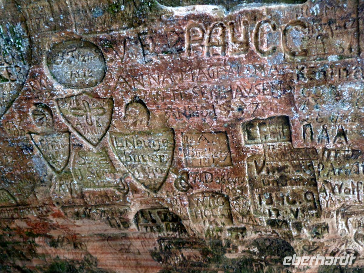 Wir verabschieden uns von Riga und wenden uns zunächst nach Westen. Unsere Ziele befinden sich im Gauja-Nationalpark. Er ist (1973 gegründet) der älteste seiner Art im Baltikum und nach dem gleichnamigen Fluß benannt. Markant ist die Bergig-hügelige Landschaft, die der Gegend auch den Namen Livländische Schweiz eintrug. Nahe der Kleinstadt Sigulda besuchen wir die Gutmannshöhle mit einer heilsamen Quelle. Generationen von Besuchern haben seit dem 18. Jh. Ihre Namen mit Datum hier eingeritzt. Den Namen, so erzählt uns Regina, hat sie von einem ehemaligen Besitzer, welcher das heilsame Wasser großherzig an alle Menschen verschenkte, anstatt es teuer zu veräußern. Ein guter Mann also. Ich dagegen schenke heute großherzig im Namen von Eberhardt den berühmten Rigaer schwarzen Balsam aus. Der Schnaps ist mindestens genauso heilsam; besteht er doch aus 24 wohltuenden Kräutern und Beeren und hat schon Katharina der Großen wieder auf die Beine geholfen (s. Reisetipp). Hiermit stoßen wir auf die schöne Reise an und das gute Gelingen an.