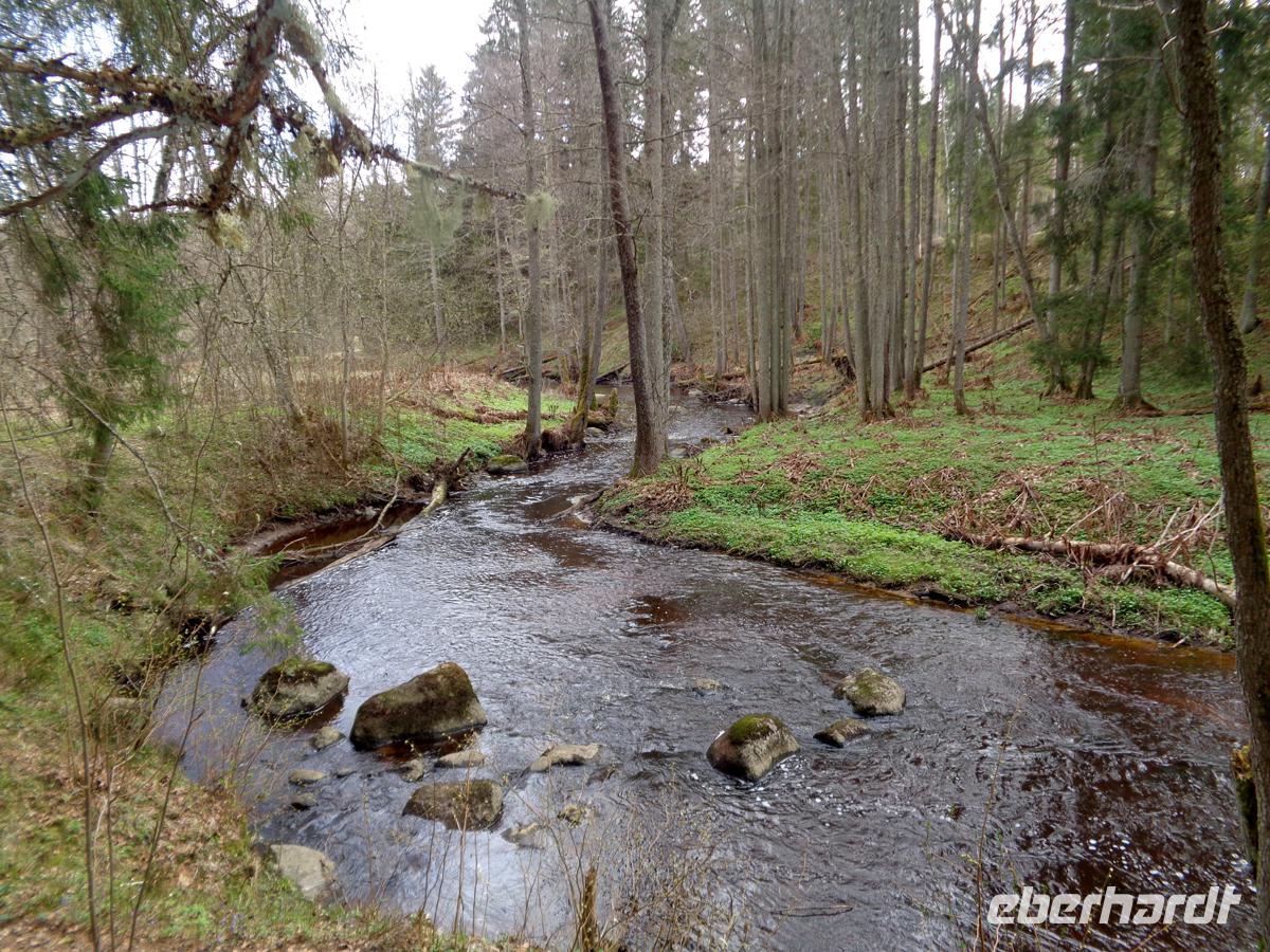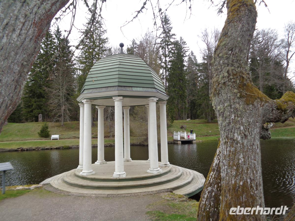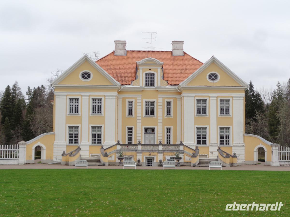 Eine gute Stunde Fahrt benötigen wir von Tallin aus in den ältesten und größten estnischen Nationalpark. Ein Drittel des Parks ist Meer. Weil es noch recht feucht und kalt ist, verschieben wir unseren Moorspaziergang auf den Nachmitteg und ziehen die Inaugenscheinnahme zweier Gutshäuser vor. Estland war voll mit Landgütern. Ca. 2000 zählte man vor dem 1. Weltkrieg. Oft gingen sie bis ins 13. Jh. auf livländische Rittersitze zurück. Viele wurden ab dem 18. Jh. prächtig im barocken oder klassizistischen Stil umgestaltet. Spätestens 1939 kam das Ende und die meist deutschen Besitzer mussten ihre Güter und Ländereien verlassen. Heute versucht man viele dieser Häuser zu restaurieren, wenn das noch möglich ist, und oft einer touristischen Nutzung zuzuführen. In Palmse ist das sehr gut gelungen. 1676 kam das Gut in den Besitz der Familie von Pahlen, deren Nachfahren heute in Deutschland leben. Wir bekommen eine Führung durch das Haus und können uns an der Einrichtung erfreuen, die vom Empire über Biedermeier bis zum Historismus reicht. Das Gut verfügte auch über eine Orangerie und im schön angelegten Garten mit Badehaus und Pavillon kann man sich gut ergehen. Verschiedene Wirtschaftsgebäude gehören zum Gut von denen ein Teil der Stallungen heute ein Hotel birgt. Ein weiteres Gut des deutschbaltischen Adels sehen wir mit Gut Sagadi, das sich ab ca. 1750 im Besitz der Familie von Fock befand. Wir betrachten es von außen, denn es ist ein Schulungszentrum der staatl. Forstverwaltung darin untergebracht. Die ehemaligen Stallungen beherbergen neben einem Hotel auch ein Forstmuseum. Hiernach unternehmen wir einen ersten Spaziergang durch den Wald des Nationalparks, der im Wesentlichen aus dicht stehenden Kiefern und Fichten besteht, und von zahlreichen Bächen durchzogen wird. Am Altja-Fluss gibt es einen Biber Lehrpfad, den wir ein Stück entlang gehen. Der Wald ist recht verwunschen und man geht weich wie auf einem Teppich. Den Biber sehen wir zwar nicht, dafür machen wir uns auf nach Altja, einem ursprünglichen Bauern- und Fischerdorf. Einige der Häuser hier sind noch in Blockbauweise errichtet und mit Reet gedeckt. Um hierher zu finden sollte man schon eine gute Straßenkarte haben. Die Straßen sind sehr schmal und beidseitig von dichtestem Urwald gesäumt. Tina berichtet, dass es in dem kleinen Estland 600 wilde Braunbären gibt und viele Wölfe noch dazu. Gerade hatte ich überlegt, wie toll es wäre, hier einmal Pilze zu sammeln. Nun denke ich daran, wieviele Augen einen dabei wohl beobachten?