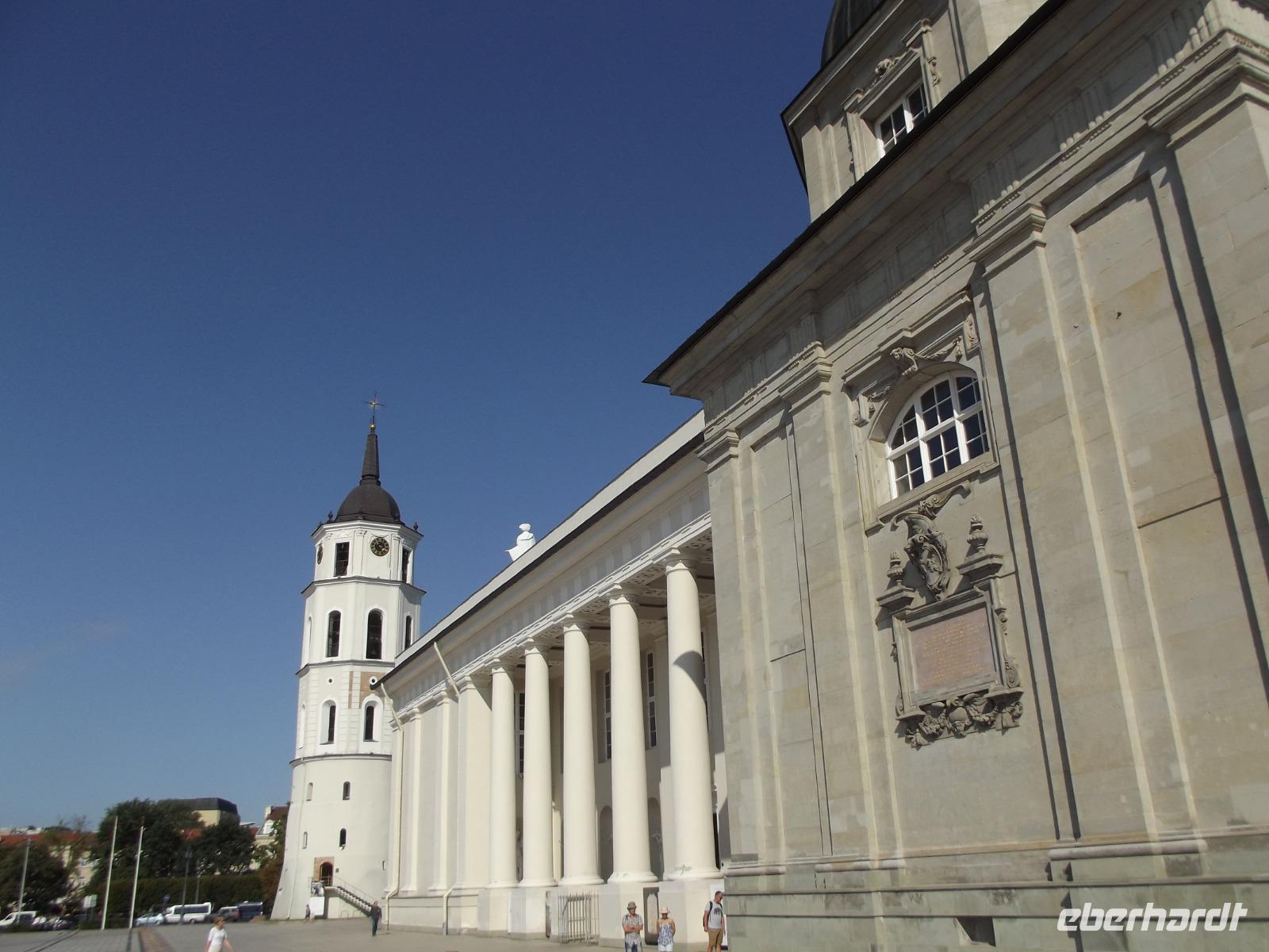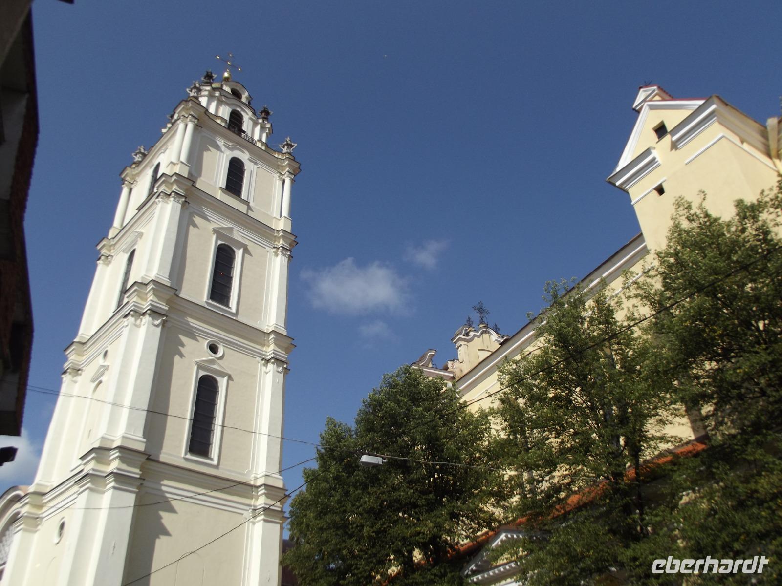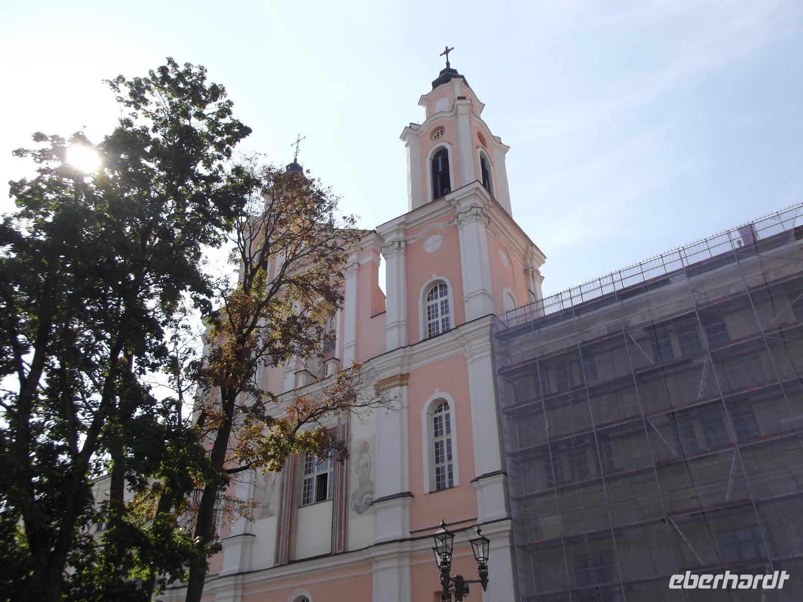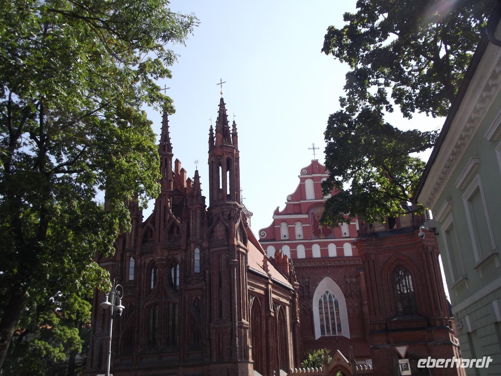 Nach einem reichhaltigen Frühstück am Buffet unseres Hotels wollen wir die Hauptstadt Litauens entdecken und folgen unserem Reiseleiter auf einer Führung durch die historischen Straßen und Gassen. Das erste beeindruckende Gebäude im sogenannten „Rom des Nordens" ist die Peter und Paul-Kirche, die, trotz ihrer geschwungenen Akzente in ihrer äußerlichen Bauweise, regelrecht bescheiden wirkt. Im Inneren der Kirche hingegen wird man von einem Meer aus Stuckornamenten überflutet - man kann sich kaum sattsehen. Über unseren Köpfen schwebt ein prunkvoller Kronleuchter im der Form eines Bootes und die Gemälde erzählen uns die fesselnden Geschichten der Heiligen. Roland führt uns weiter zum Kathedralenplatz, wo der weiße Kathedralenturm neben der St. Stanislaus-Kathedrale thront. Zwischen den historischen Bauten befindet sich eine Fliese im Boden, die - so lautet die Legende - Glück bringt, sobald man diese dreimal umrundet. In der St. Stainslaus-Kathedrale sehen wir die traurigste und die schönste Kapelle: die traurige Kapelle ist die, welche für die nach Sibirien Verbannten errichtet wurde und die schönste ist die Kapelle des Heiligen Kasimir. Vorbei an dem Gediminas Denkmal gelangen wir zum weißen Präsidentenpalast, der unweit vom Universitätsviertel zu finden ist. Im Sonnenschein spazieren wir weiter zum Lamplighter Denkmal, entlang der St. Johanneskirche und der St. Michael-Kirche, bis wir die römisch-katholische Annenkirche erblicken. Sie ist eine der wenigen gotischen Kirchenbauten in Litauen. Die rote Backsteinoptik verläuft übergreifend in das Bernhardinerkloster, die sich nebenan befindet. Nach einer kleinen Besichtigung führt uns Roland in den Stadtteil Užupis, der über die mit Schlössern behangene Vilnia-Brücke zu begehen ist. Vorbei am Engel von Užupis, geht unsere Gruppe zurück zum Bus, um dann zum Tor der Morgenröte zu fahren. Dort werden wir mit lautem Trara empfangen, denn heute ist auf dem Rathausplatz ein mittelalterlicher Markt und so ziehen die Einwohner von Vilnius mit traditionellen Mittelalter-Trachten und den passenden Musikinstrumenten durch die Straßen vorbei an der Heiliggeistkirche. Nach einer Mittagspause fahren wir zu der gotischen Wasserburg Trakai, ca. 30 Kilometer entfernt von Vilnius. Wir haben das Glück, im Innenhof eine litauische Hochzeitszeremonie zu beobachten, die musikalisch von einem bekannten, litauischen Gitarristen untermalt wird. Unser Reiseleiter Roland zeigt uns das Innere der Burg, welches heute als Museum zu besichtigen ist. Umrahmt von mehreren Seen, gilt die Landschaft um die Wasserburg als beliebtes Ausflugsziel, denn hier können die Gäste gemütlich Boot fahren, bummeln oder das typische Gericht Kibinai probieren. Zum frühen Abend fahren wir zurück zu unserem Hotel und treffen uns bald wieder, um gemeinsam in ein nahegelegenes, uriges Restaurant zu gehen, wo wir in den Genuss kommen, landestypische Speisen zu genießen und mit dem sogenannten „Brottrunk" anzustoßen.