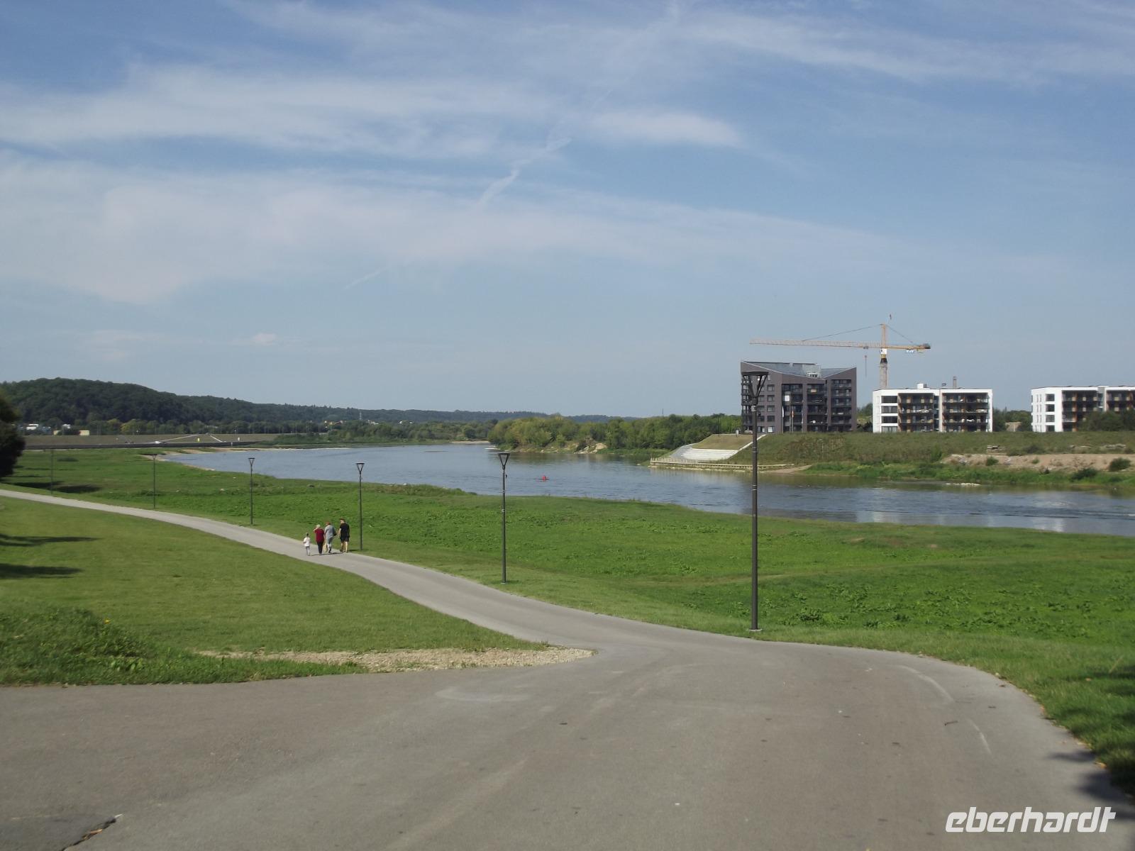 Mit leckerem Kaffee vom Frühstücksbuffet starten wir in das Wochenende. Heute checken wir in unserem Hotel in Vilnius aus und fahren zunächst circa 100 Kilometer in die Stadt Kaunas, nord-westlich von der Hauptstadt. Während der Fahrt gibt Roland uns Informationen zu den internationalen Beziehungen und zur Geografie. Gegen 10 Uhr erreichen wir unser Ziel und fahren entlang des Flusses Memel durch saftig grüne Landschaften. Kurze Zeit später erreichen wir eine schöne Aussichtsplattform, von der man einen wunderbaren Blick über die Stadt hat und mit einer niedlichen Bahn wieder hinunter zum Bus fahren kann. An der Mündung der Flüsse Neris und Nemunas ist die Burg Kaunas gelegen - hier beginnt unser Spaziergang. Der Weg führt uns vorbei an der Kirche St. Georg bis zur rosafarbenen St. Franziskus Xaver Kirche am Rathausplatz, wo der ein oder andere Hochzeitsempfang aufgebaut und durchgeführt wird. So viele Hochzeitsgesellschaften wie an diesem Tag, haben wir noch nie gesehen. Die Hochzeitspaare werden in der gotischen Kathedrale St. Peter und Paul getraut - eine Basilika, die mehrere Baustil-Epochen vereint. Die Mittagspause verbringen die Gäste individuell im charmanten Zentrum von Kaunas, bis wir weitere 200 Kilometer zu unserer Tagesdestination Memel fahren. Während der Busfahrt erleben wir ein kleines Gewitter, welches aber glücklicherweise schon bald wieder vorbei ist. Auf einem Rastplatz genehmigen wir uns ein leckeres Eis und vertreten uns ein wenig die Beine. Schließlich sind wir da: Memel (Klaipeda), die Hafenstadt, die einst bis zum Jahr 1920 zum Deutschen Reich gehörte. Wir machen eine kleine Stadtrundfahrt und erreichen zum frühen Abend unser Hotel in Klaipeda, wo wir kurze Zeit später bei einem gemeinsamen Abendessen den Tag Revue passieren lassen. Wer möchte, genießt noch ein Getränk in der hoteleigenen Skybar in der 21. Etage, während die Sonne langsam ins Wasser taucht.
