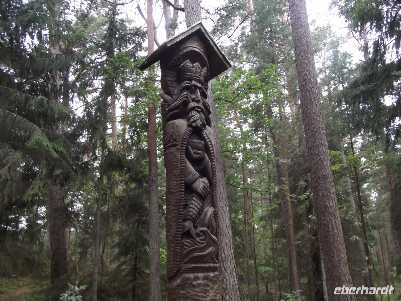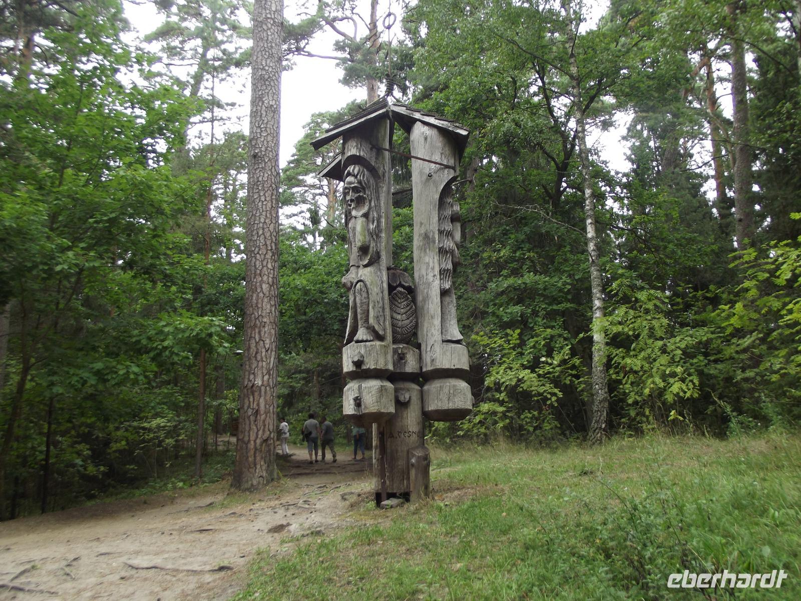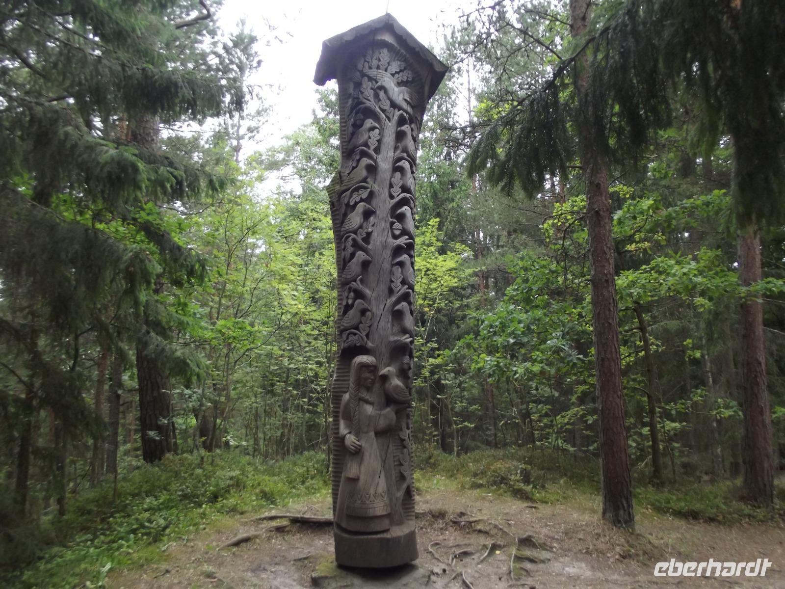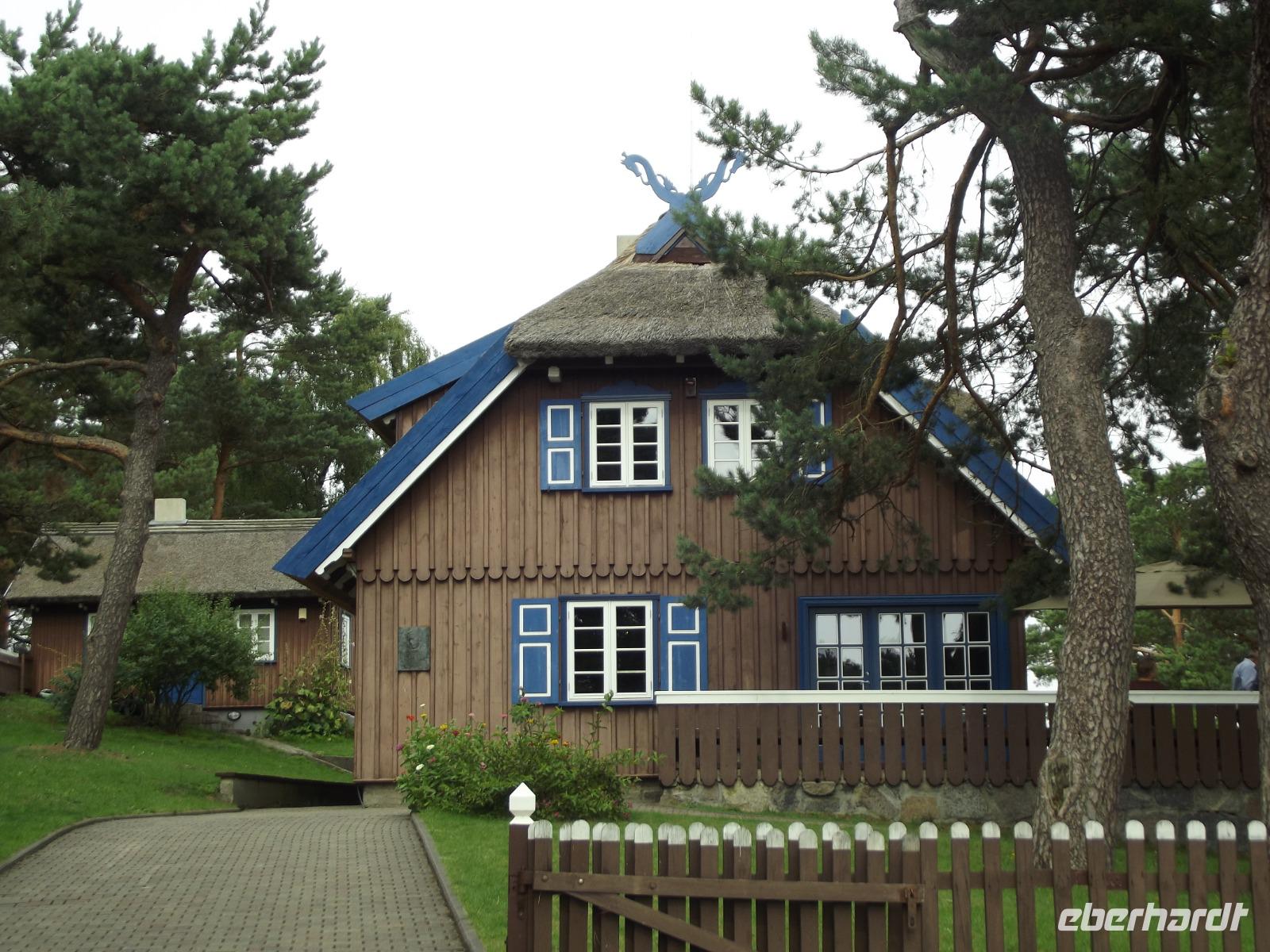 Ein neuer Tag bricht an und wir rüsten uns für einen Ausflug auf die aus Sanddünen bestehende Halbinsel, die die Ostsee vom sogenannten Kurischen Haff abgrenzt: die Kurische Nehrung. Um 9 Uhr fahren wir vom Hotel los an den Fährhafen, wo wir mit der Fähre lediglich 7 Minuten fahren müssen, um in eine vollkommen andere Welt einzutauchen. Da das Wetter zum Glück mitspielt, genehmigen wir uns eine Badepause im Meer und die ersten, mutigen Gäste stürzen sich in die lauwarmen Wellen. Die langen, weißen Dünen mit den sich im Wind biegenden, grünen Gräsern und kleinen bunten Blüten sehen aus wie das Motiv einer Postkarte. Aber wir wollen nicht nur baden - wir möchten die Gegend erkunden. Es geht also weiter bis zur Hohen Düne, eine der größten Wanderdünen im europäischen Raum. Gespannt auf die Aussicht, spazieren wir die Düne hinauf bis zu einer Sonnenuhr und es lohnt sich. Vor uns liegt das weite Landschaftsschutzgebiet mit all seiner natürlichen Vielfalt. Für unsere Mittagspause reisen wir in den beliebten Urlaubsort Nidden (Nida), wo die Gäste ihre Freizeit genießen können. Nidden besteht unter anderem aus vielen Holzhütten, die in den typischen Farben Braun, Weiß und Blau gestrichen sind. Einige Reisegäste nutzen die Zeit, um Souvenirs an den Verkaufsständen zu kaufen und andere stillen ihren Hunger in einem der örtlichen Restaurants. Frisch gestärkt begeben wir uns zum Bernsteinmuseum, wo wir erklärt bekommen, wie man einen Bernstein erkennt und worauf man bei der Suche achten muss. Mit neuen Erkenntnissen im Gepäck gehen wir weiter über einen besonderen Friedhof, auf dem die Gräber mit historischen Kreuzdenkmälern versehen sind. Diese befinden sich allerdings nicht am Kopf, sondern am Fuße des Grabes. Weiter geht es zum Hermann-Blode-Hotel, das im 19. Jahrhundert insbesondere bei Künstlern und Schriftstellern gefragt und beliebt war. Heute kann man dort allerhand Fotos der damaligen Gäste in Augenschein nehmen. Bevor wir eines der Highlights an diesem Tag erleben, bekommen wir von einer netten Dame aus einem Geschäft eine Einweisung in die Herstellung von den Wetterfahnen, die vor Ort überall anzutreffen sind. Dann gehen wir zu dem mit Spannung erwarteten Haus des Schriftstellers und Nobelpreisträgers Thomas Mann und besichtigen die für die Öffentlichkeit freigegebenen Räumlichkeiten. Bevor wir die Kurische Nehrung verlassen müssen, machen wir einen Abstecher zum Hexenberg in der Ortschaft Juodkrante und wandern durch den ruhigen, idyllischen Wald, wo mehrere Holzskulpturen stehen, die alle ihr eigenes Märchen verkörpern. Roland bringt uns mittels spannender Märchen die Welt der Götter und Hexen nahe. Nun geht es zurück in unser Hotel und wir werden von einem langen Stau vor dem Fährübergang überrascht. Mit einer kleinen Verspätung kommen wir schließlich im Hotel an und die Gruppe freut sich auf ein leckeres, deftiges Abendessen.