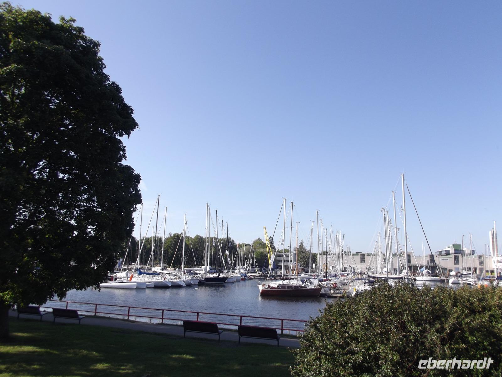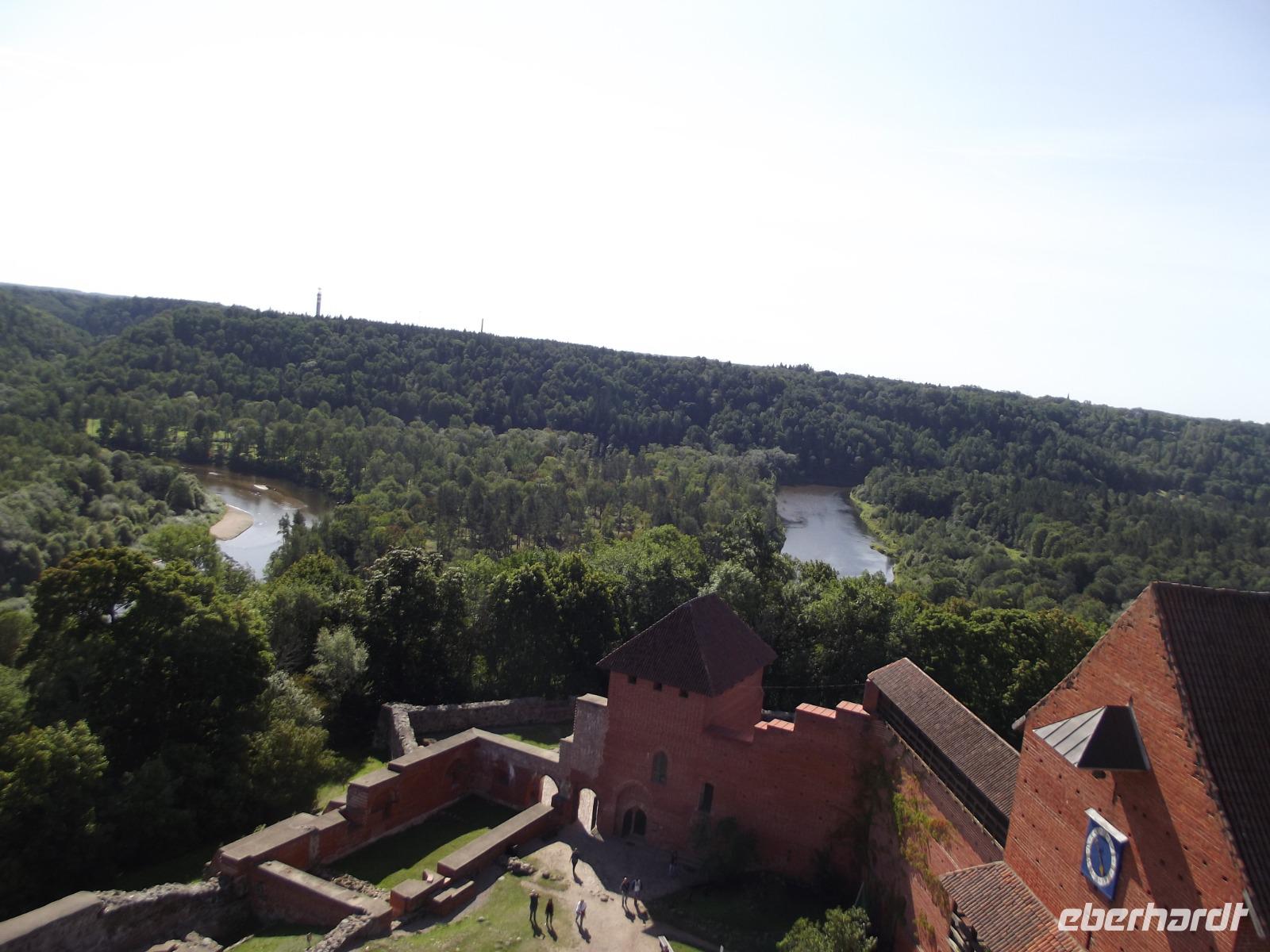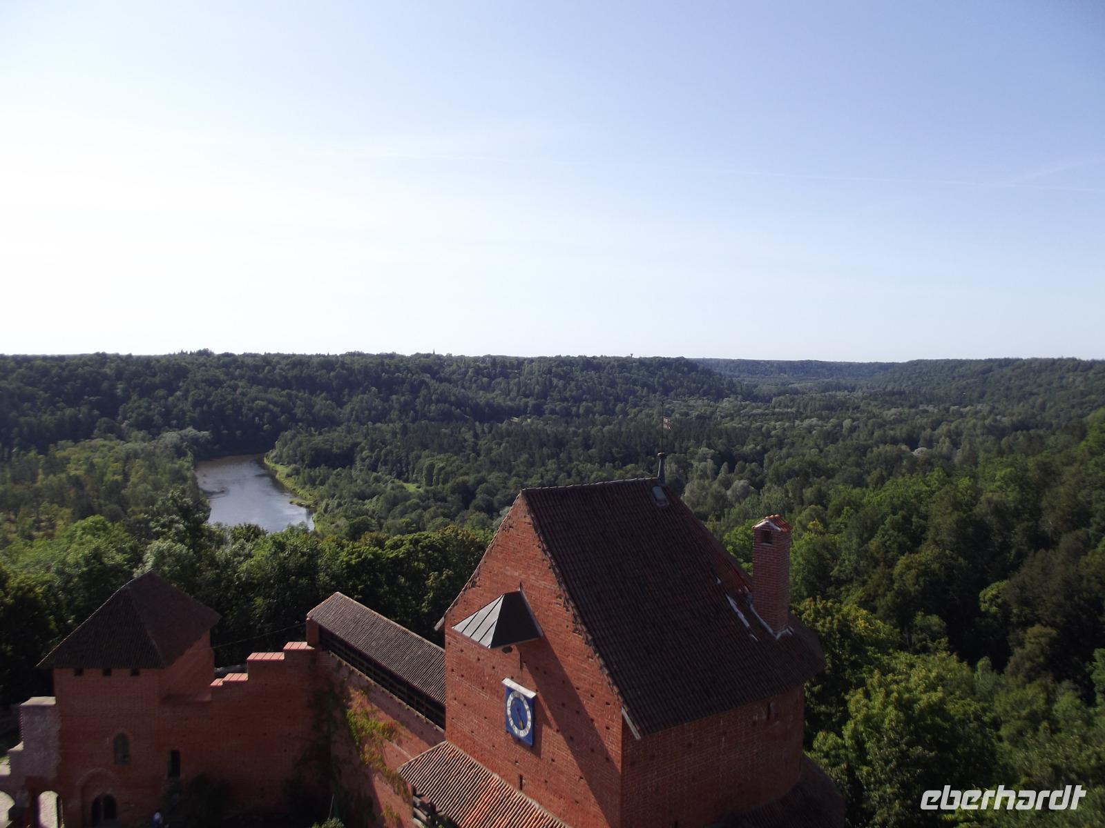 Heute steht uns ein Hotelwechsel bevor, daher treffen wir uns nach dem leckeren Frühstück, um unsere Koffer in den Bus zu laden. Auf dem Weg nach Tallinn machen wir Halt, um den Gauja-Nationalpark zu erkunden. Von einer Aussichtsplattform in Sigulda fährt eine kleine, gelbe Seilbahn auf die andere Seite des Gauja-Tals - uns bietet sich ein fantastischer Blick. Die grüne, weite Landschaft mit seinen Mooren, Flüssen und Wäldern ist ein wunderbarer Kontrast zu den Großstädten des Baltikums. Wer sich nicht traut mit der Seilbahn zu schweben, kann mit unserem Bus ganz gemütlich auf die andere Seite des Tals fahren. Daraufhin statten wir der Burg Turaida einen Besuch ab, die auf ihrem Gelände ein Museum, einen Park, eine schöne Holzkirche und einiges mehr bietet. Nachdem Roland uns wissenswerte Informationen zu der Burg vermittelt hat, steigen wir den 30 Meter hohen Turm hinauf und werden mit einem einmaligen Ausblick belohnt. Roland erzählt uns auch die traurige Geschichte der Rose von Turaida, eine hübsche Frau, die sich in den Deutschen Viktor verliebte und die gemeinsame Hochzeit plante. Ein polnischer Söldner wollte die Schönheit für sich gewinnen und lockte sie im Namen von Viktor in die Gutmannshöhle. Die Rose von Turaida spielte ihm vor, dass sie mit ihrem magischen Halstuch unsterblich sei und brachte den Söldner dazu, sein Schwert an ihr zu erproben, wodurch er sie enthauptete. Danach fahren wir zur bekannten Gutmannshöhle und ließen den Ort und die Ruhe auf uns wirken. Gegen Mittag kehren wir ein in einem Lokal im sogenannten Hexendorf, um dort etwas zu essen und fahren daraufhin weiter Richtung Tallinn. Kurz vor der Ankunft machen wir eine Pause im Ort Pärnu, einer estnischen Hafenstadt und vertreten uns ein wenig die Beine. Am Abend erreichen wir unser Hotel am Yachthafen, checken ein und freuen uns auf den nächsten Tag in der estnischen Hauptstadt.