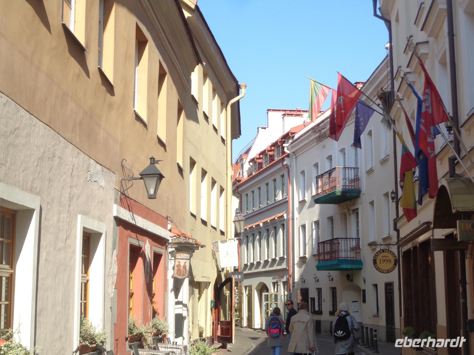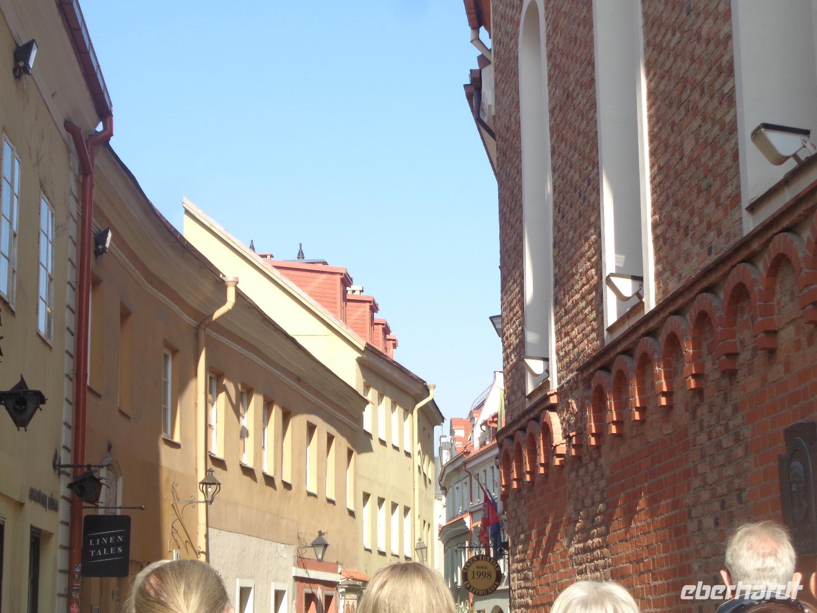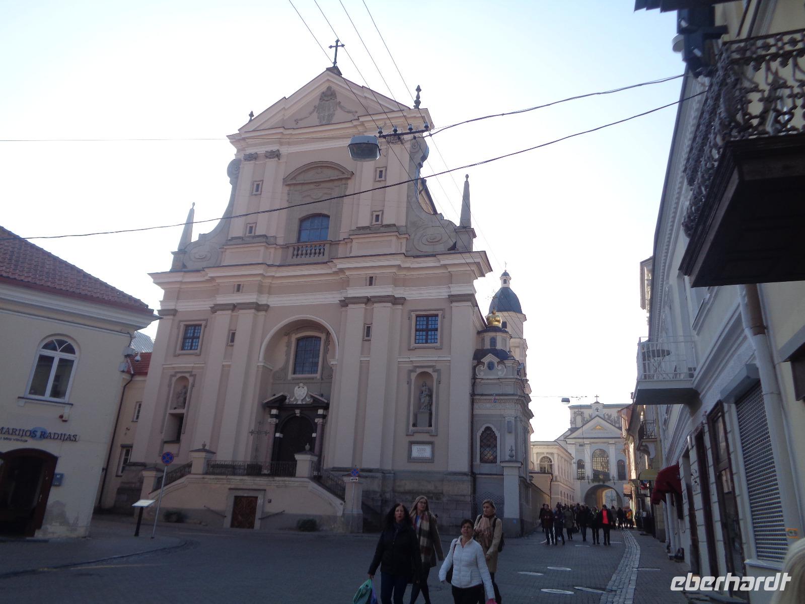 Nach dem reichlichen Frühstück vom Buffet versammeln wir uns alle im Bus, um eine Funktionsprobe mit den angelieferten Audiogeräten von Quietvox zu machen. Wir fahren entlang des Flusses Neris und Zaneta erzählt uns alles Wissenswerte über die Hauptstadt Litauens, über Kampf und Widerstand im Laufe der Geschichte von Vilnius. Unser erstes Ziel ist die barocke Peter und Paul Kirche aus dem 17. Jhd. Ihre meisterhaften über 2.000 Stuckarbeiten, die bis 1704 angefertigt wurden, verzieren die Kirche von innen ganz in weiss und rauben dem Betrachter den Atem. Der Stifter der Kirche, der Heerführer Pac, wollte sich hier ein Mausoleum errichten, starb aber vor der Fertigstellung. Sein Grab soll sich unter der Schwelle des Eingangs befinden mit der Inschrift „Hier liegt ein Sünder". Die katholische Kirche der heiligen Apostel hat eine große Bedeutung für Litauen und natürlich war Pabst Johannes Paul II. auch hier zu Gast, ebenso wie bei der Schwesterkirche des Klosters Pazaislis in Kaunas. Nach der kleinen Rundfahrt, bei der wir auch den Fluss Vilnia entdeckt haben, steigen wir aus und beginnen unseren Rundgang am Tor der Morgenröte, Ausros Vartai, oder auch Medinikai-Tor, noch ein erhaltenes von 9 Toren der ehemaligen Stadtmauer aus dem beginnenden 16. Jhd. Wir treffen auf viele Kirchen verschiedener Konfessionen. Katholische, orthodoxe, evangelische und unierte Kirchen stehen dicht nebeneinander und zeugen von Toleranz. Leben und leben lassen, so empfinden wir die Atmosphäre hier. Leider war es nicht immer so und so suchen wir vergebens nach der ehemals so prachtvollen jüdischen Großen Synagoge, die im Ergebnis des letzten Krieges zerstört wurde. Im 14. Jhd. wurde Vilnius das „Magdeburger Recht" erteilt und es entstand das hübsche Rathaus, mit dem Heiligen Christophorus und einem Jesuskind auf der Schulter im Stadtwappen. Wie sich die Architektur von ursprünglich gotisch ins klassizistische änderte, so wandelte sich auch seine Bestimmung von einem Verwaltungsgebäude, in ein Stadttheater, eine Oper und im 20. Jhd. in ein Kunstmuseum. Auch heute wird es noch für die unterschiedlichsten Veranstaltungen genutzt. Wir überqueren den Rathausplatz, wo heute die „Working days" stattfinden und besuchen das ehemalige jüdische Viertel, die Universität und den Präsidentenpalast, in dessen Innenhof eine große, weiße 100 steht. Sie erinnert an das Jahr 1918, als sich das Blatt der Geschichte hier wendete, was 2018 feierlich begangen wurde. Vorbei an der St. Johannis-Kirche laufen wir bis zum Gediminas-Denkmal. Hier treffen wir auf den Fürsten, dem wir schon auf der Burg Trakai begegnet waren. Er gilt als Gründer von Vilnius. Wir stehen am Kathedralen-Turm und blicken auf die St. Stanislaw-Kirche auf dem Kathedralenplatz. Zaneta erzählt unermüdlich und bringt uns ihre Stadt mit unerschöpflichem Wissen und vielen Emotionen ganz nahe. An der gotischen St. Anne-Kirche, die als schönste gilt, beenden wir unseren Rundgang. Einige Gäste wollen noch zum Fürstenpalast oder zum Fernsehturm, aber die Mehrheit zieht es in die hübschen Gassen der Altstadt. Am Abend freuen wir uns auf ein typisch litauisches Abendessen im Restaurant „Berneliu Uzeiga". Eine Geburtstagsgesellschaft neben uns feiert und tanzt und steckt uns mit ihrer guten Laune an. Das Essen ist so reichlich und auch Bier und Wein strömen, dass einige von uns gern noch bleiben möchten. Wir müssen Zaneta, die ganz großartig war, leider verabschieden, denn wir reisen morgen weiter.