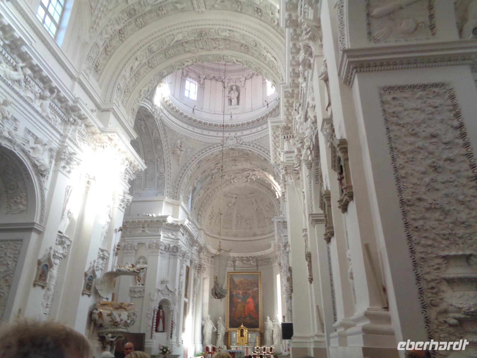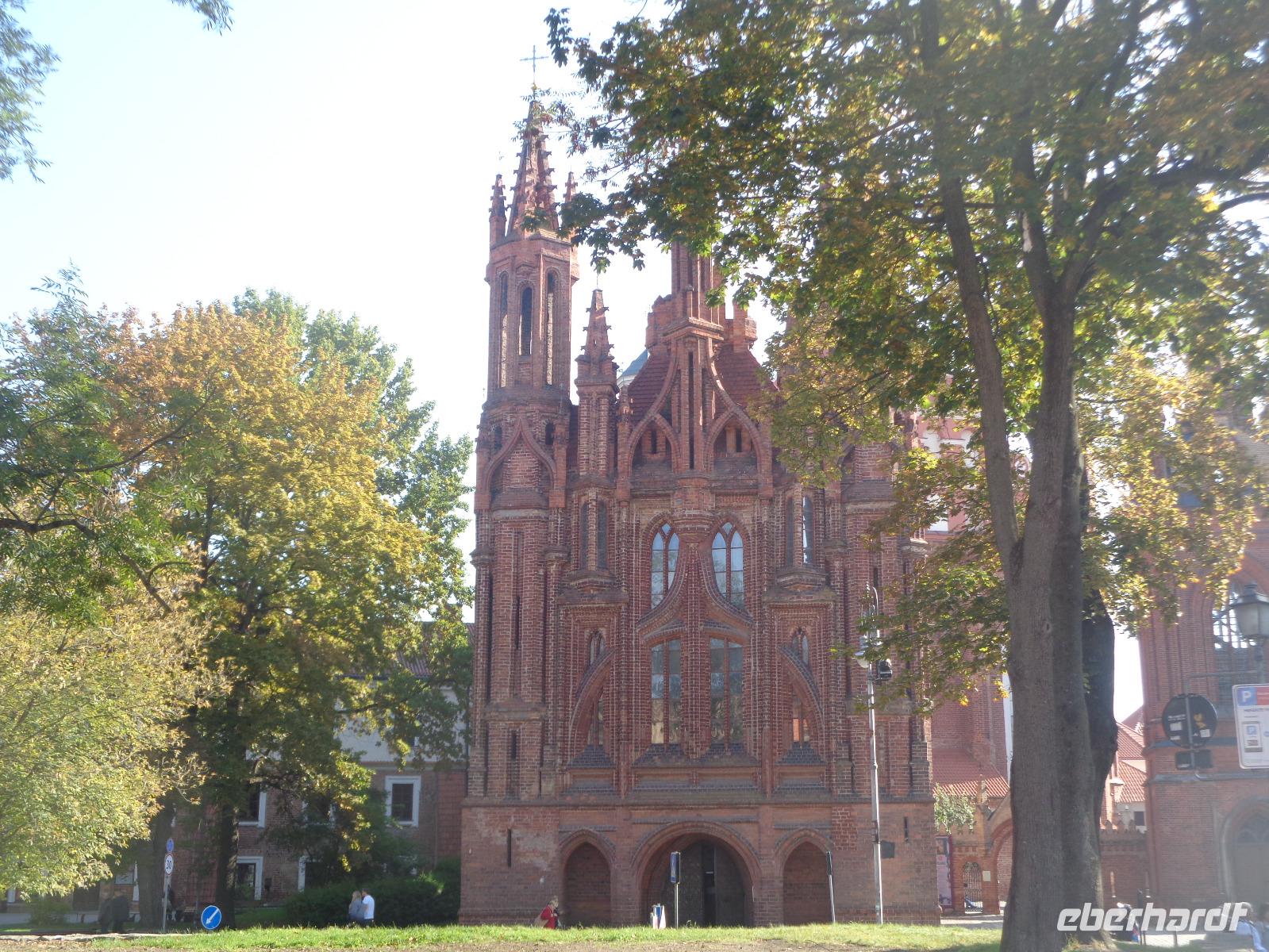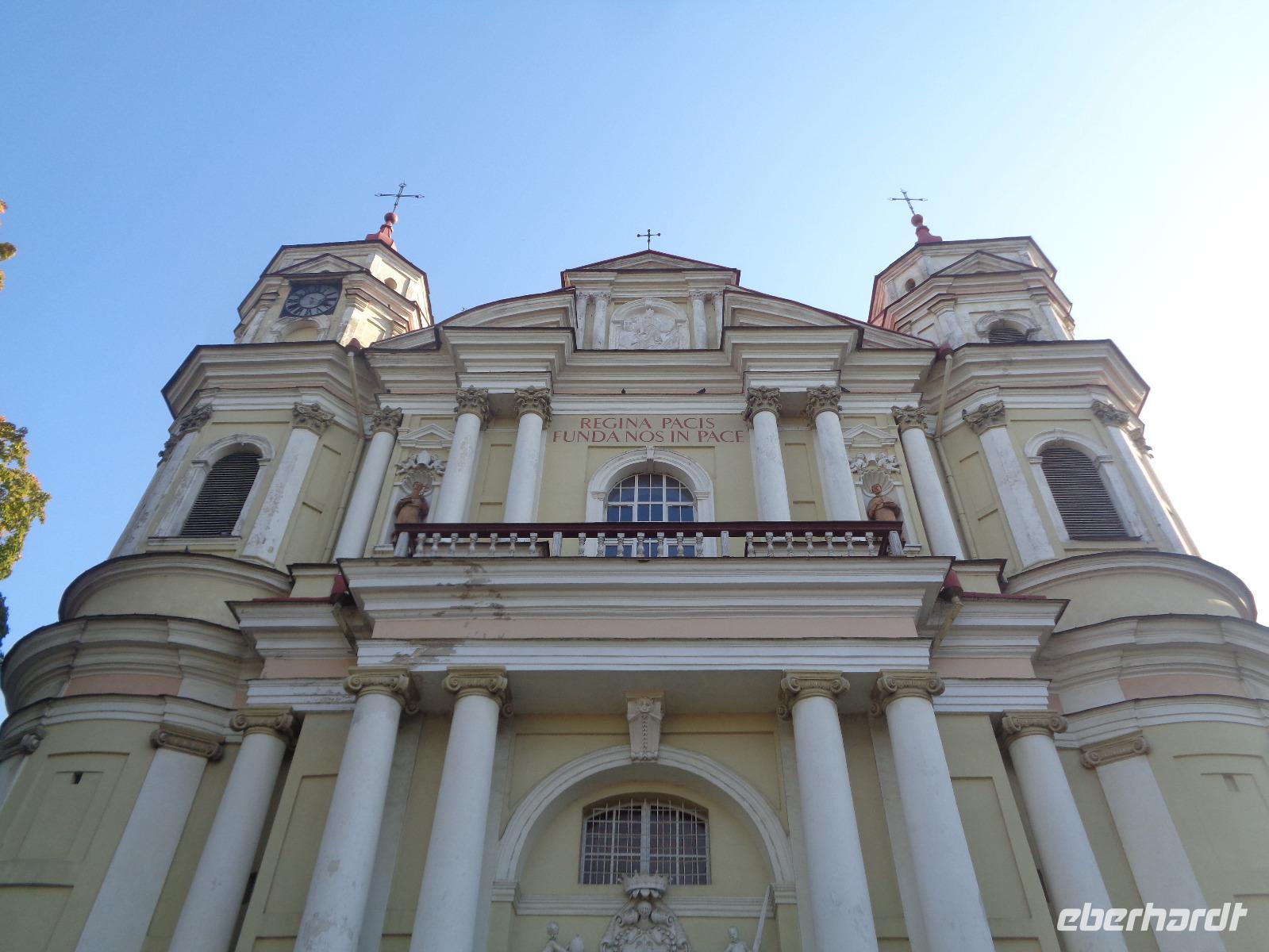 Nach dem reichlichen Frühstück vom Buffet versammeln wir uns alle im Bus, um eine Funktionsprobe mit den angelieferten Audiogeräten von Quietvox zu machen. Wir fahren entlang des Flusses Neris und Zaneta erzählt uns alles Wissenswerte über die Hauptstadt Litauens, über Kampf und Widerstand im Laufe der Geschichte von Vilnius. Unser erstes Ziel ist die barocke Peter und Paul Kirche aus dem 17. Jhd. Ihre meisterhaften über 2.000 Stuckarbeiten, die bis 1704 angefertigt wurden, verzieren die Kirche von innen ganz in weiss und rauben dem Betrachter den Atem. Der Stifter der Kirche, der Heerführer Pac, wollte sich hier ein Mausoleum errichten, starb aber vor der Fertigstellung. Sein Grab soll sich unter der Schwelle des Eingangs befinden mit der Inschrift „Hier liegt ein Sünder". Die katholische Kirche der heiligen Apostel hat eine große Bedeutung für Litauen und natürlich war Pabst Johannes Paul II. auch hier zu Gast, ebenso wie bei der Schwesterkirche des Klosters Pazaislis in Kaunas. Nach der kleinen Rundfahrt, bei der wir auch den Fluss Vilnia entdeckt haben, steigen wir aus und beginnen unseren Rundgang am Tor der Morgenröte, Ausros Vartai, oder auch Medinikai-Tor, noch ein erhaltenes von 9 Toren der ehemaligen Stadtmauer aus dem beginnenden 16. Jhd. Wir treffen auf viele Kirchen verschiedener Konfessionen. Katholische, orthodoxe, evangelische und unierte Kirchen stehen dicht nebeneinander und zeugen von Toleranz. Leben und leben lassen, so empfinden wir die Atmosphäre hier. Leider war es nicht immer so und so suchen wir vergebens nach der ehemals so prachtvollen jüdischen Großen Synagoge, die im Ergebnis des letzten Krieges zerstört wurde. Im 14. Jhd. wurde Vilnius das „Magdeburger Recht" erteilt und es entstand das hübsche Rathaus, mit dem Heiligen Christophorus und einem Jesuskind auf der Schulter im Stadtwappen. Wie sich die Architektur von ursprünglich gotisch ins klassizistische änderte, so wandelte sich auch seine Bestimmung von einem Verwaltungsgebäude, in ein Stadttheater, eine Oper und im 20. Jhd. in ein Kunstmuseum. Auch heute wird es noch für die unterschiedlichsten Veranstaltungen genutzt. Wir überqueren den Rathausplatz, wo heute die „Working days" stattfinden und besuchen das ehemalige jüdische Viertel, die Universität und den Präsidentenpalast, in dessen Innenhof eine große, weiße 100 steht. Sie erinnert an das Jahr 1918, als sich das Blatt der Geschichte hier wendete, was 2018 feierlich begangen wurde. Vorbei an der St. Johannis-Kirche laufen wir bis zum Gediminas-Denkmal. Hier treffen wir auf den Fürsten, dem wir schon auf der Burg Trakai begegnet waren. Er gilt als Gründer von Vilnius. Wir stehen am Kathedralen-Turm und blicken auf die St. Stanislaw-Kirche auf dem Kathedralenplatz. Zaneta erzählt unermüdlich und bringt uns ihre Stadt mit unerschöpflichem Wissen und vielen Emotionen ganz nahe. An der gotischen St. Anne-Kirche, die als schönste gilt, beenden wir unseren Rundgang. Einige Gäste wollen noch zum Fürstenpalast oder zum Fernsehturm, aber die Mehrheit zieht es in die hübschen Gassen der Altstadt. Am Abend freuen wir uns auf ein typisch litauisches Abendessen im Restaurant „Berneliu Uzeiga". Eine Geburtstagsgesellschaft neben uns feiert und tanzt und steckt uns mit ihrer guten Laune an. Das Essen ist so reichlich und auch Bier und Wein strömen, dass einige von uns gern noch bleiben möchten. Wir müssen Zaneta, die ganz großartig war, leider verabschieden, denn wir reisen morgen weiter.