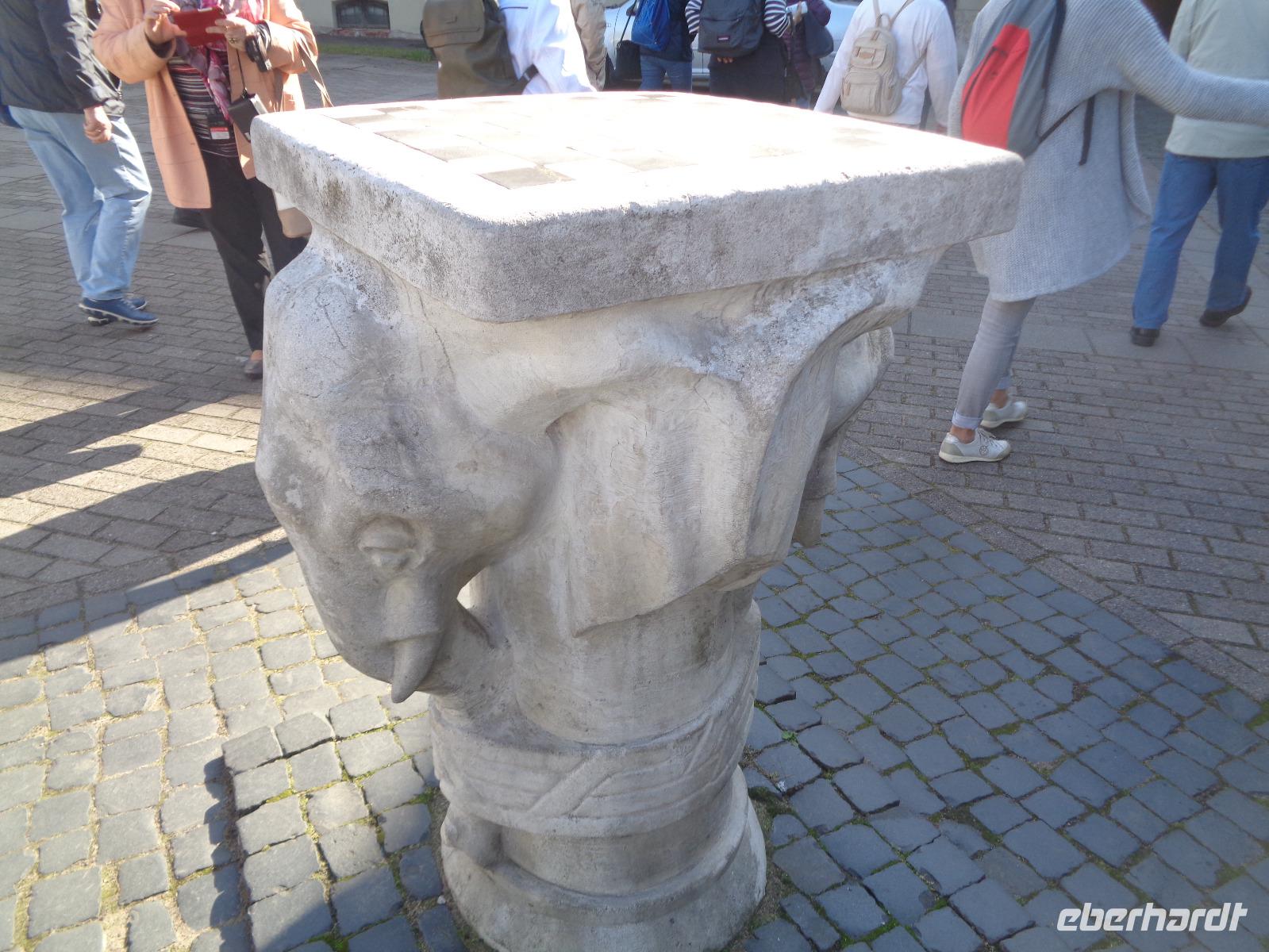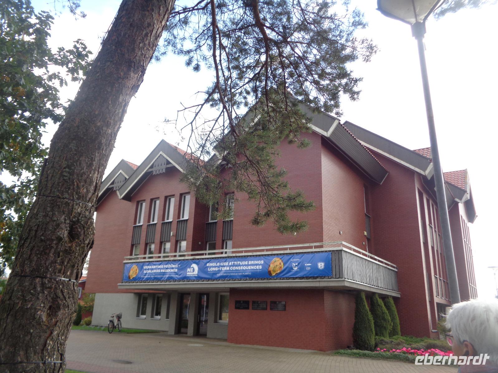 Nach dem leckeren Frühstück verstauen wir wieder unsere Koffer und begrüßen unseren neuen Reiseleiter Rolandas, der uns während der ganzen weiteren Reise begleiten wird. Nun fahren wir nach Kaunas, der ehemaligen Hauptstadt mit den Flüssen Neris und Nemunas, den wir als Memel kennen. Die Stadt wurde 1361 als Burg gegründet. Sie war ein begehrtes Ziel der Kreuzritter des Deutschordens, die ihre Gebiete in Ostpreußen mit Livland verbinden wollten. Mit der Schlacht bei Tannenberg oder Grünwald, wie die Litauer sie nennen, wurden diese Pläne aufgegeben. Die vereinten Litauer und Polen besiegten den Deutschorden vernichtend. Anfang des 15. Jhd. erhielt Kaunas die „Magdeburger Stadtrechte" und entwickelte sich als bedeutende Hanse-, Handels- und Handwerkerstadt. Heute ist sie die zweitgrößte Stadt Litauens, obwohl ihre Einwohnerzahlen immer mehr zurückgehen und schon die 300.000 EW-Marke unterschreiten. Die Stadt wurde mehrfach zerstört und durchlebte schwere Zeiten über die Jahrhunderte hinweg. Dennoch gibt es noch ein recht gut erhaltenes mittelalterliches Zentrum. Wir fahren mit unserem bequemen Bus auf den Hochterrassenplatz auf der anderen Seite des Flusses und genießen die Aussicht von oben. Es ist nass und kalt und alle begrüßen den Vorschlag, die weitere Besichtigung der Stadt vom Bus aus durchzuführen. Wir sehen das Rathaus, das als weißer Schwan bezeichnet wird, die Jesuitenkirche mit Jesuiten-Gymnasium, die Peter-und-Pauls-Kathedrale und Rolandas berichtet uns von der St. Georgs-Kirche und dem spätgotischen Perkunas-Bürgerhaus. Der Regen prasselt heute schonungslos nieder und wir nutzen Kaunas heute tatsächlich als Verkehrsknotenpunkt. Es geht weiter Richtung Klaipeda. Unsere Mittagspause verbringen wir in der „Kavini Nikola" und erquicken unsere Lebensgeister. Am frühen Nachmittag erreichen wir unser Hotel „Amberton Klaipeda". Da noch nicht alle Zimmer bezugsbereit sind, führt uns Rolandas sofort durch seine Stadt, die besonders norddeutsch geprägt ist. Klaipeda oder Memel am Fluss Dane gehört zu den ältesten Gründungen des Deutschordens. Heute zieren bezaubernde Fachwerkhäuser aus dem 18. Jhd. die Altstadt. Treffpunkt der Stadt ist immer noch der Theaterplatz, der sich unmittelbar neben unserem Hotel befindet. Das neoklassizistische Dramatheater steht hier und davor der Brunnen mit der Statue von Ännchen von Tharau. Der Brunnen wurde 1912 mit Spendengeldern der Memeler Bürger erbaut. Später kam Ännchen, geformt nach dem Bilde der Tochter Gerda eines Sandkruger Dünenmeisters, ins Spiel. Der Memeler Dichter Simon Dach verfasste im 17. Jhd. ein samländisch-niederdeutsches Hochzeitslied für Anke van Tharaw, das Herder ins Deutsche übersetzte. Es geht in dem Lied um die Hochzeit des evangelischen Pfarrers Johannes Portatius mit seiner Anna Neander aus Tharau. Nach der Vertonung wurde das Lied überall gesungen, besonders liebten es die Ostpreußen. Das leibhafte Ännchen überlebte drei Ehemänner und blieb dann bei ihrem ältesten Sohn Friedrich, der Pfarrer in Insterburg war. Ihre Statue verschwand und wurde 1989 von einem Mainzer Verein wieder zum Leben erweckt. Der Berliner Bildhauer Haacke schuf eine neue Bronzefigur von Ännchen und gestaltete auch das Porträt von Simon Dach neu. Die Skulptur des heimischen Dichters Taravos Anike von 1912 befindet sich ebenfalls auf dem Platz. Es gibt noch viel zu entdecken in Klaipeda. Wir kennen die Stadt vor allem wegen der Fährverbindung mit der ehemaligen DDR. Damals war es für uns eine geschlossene Stadt, die wir heute auf- und erschließen. Wir befinden uns in der wichtigsten Hafenstadt hier in Litauen und entdecken viele Hinweise wie Poller, Hinweistafeln, Schiffe und Kräne. Nach dem Rundgang können wir in unsere Hotelzimmer und erfrischen uns für das Abendessen im Hotelrestaurant, das uns schon erwartet. Nach dieser Tour heute schmeckt es besonders gut und feine Regentropfen begleiten unsere Nachtruhe.