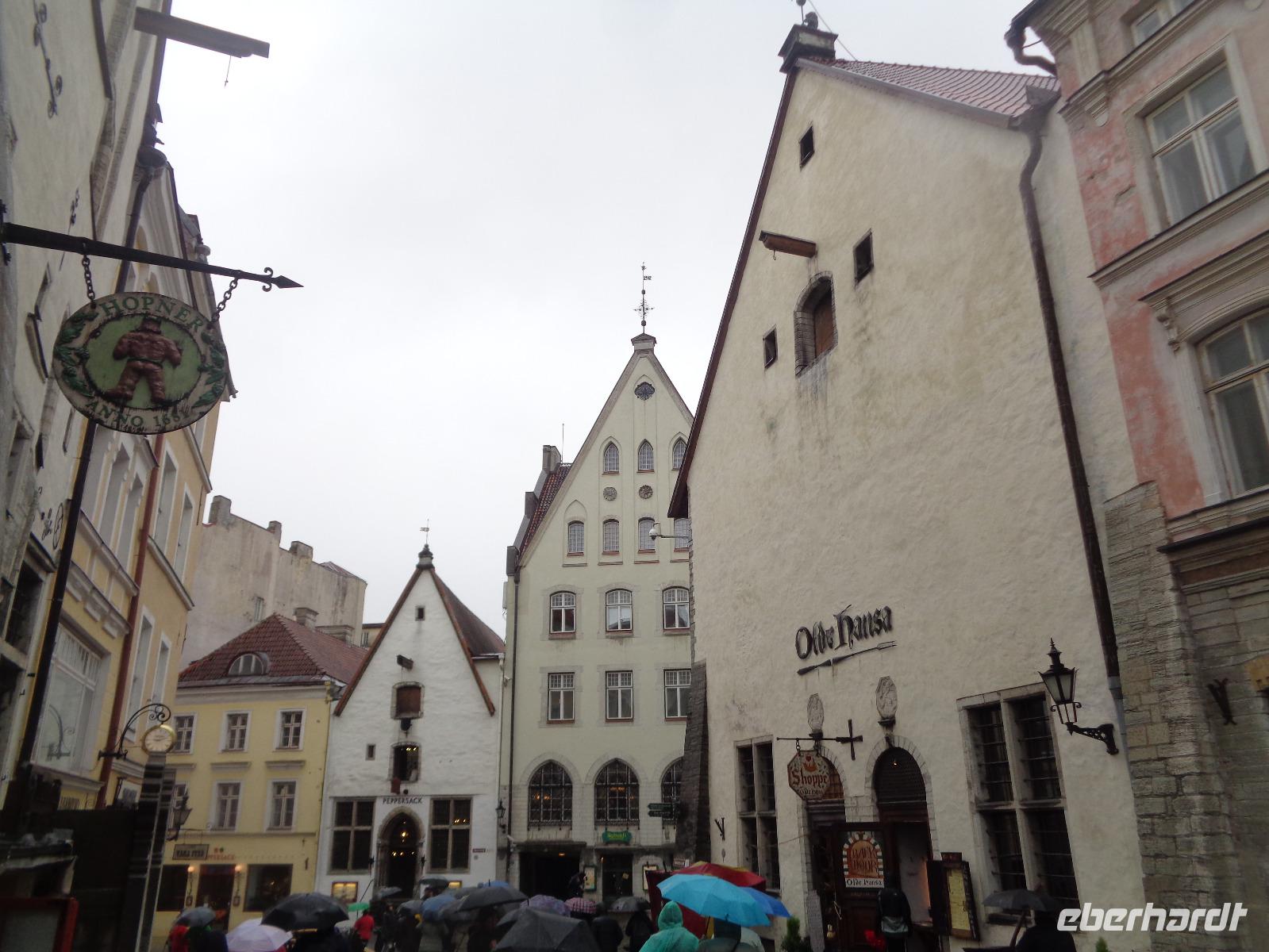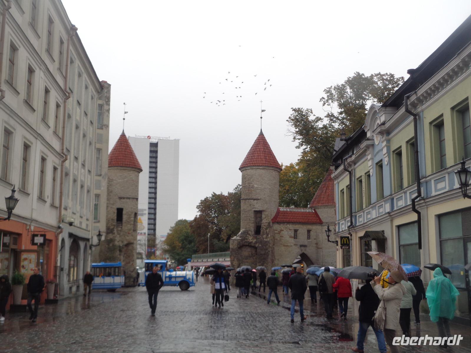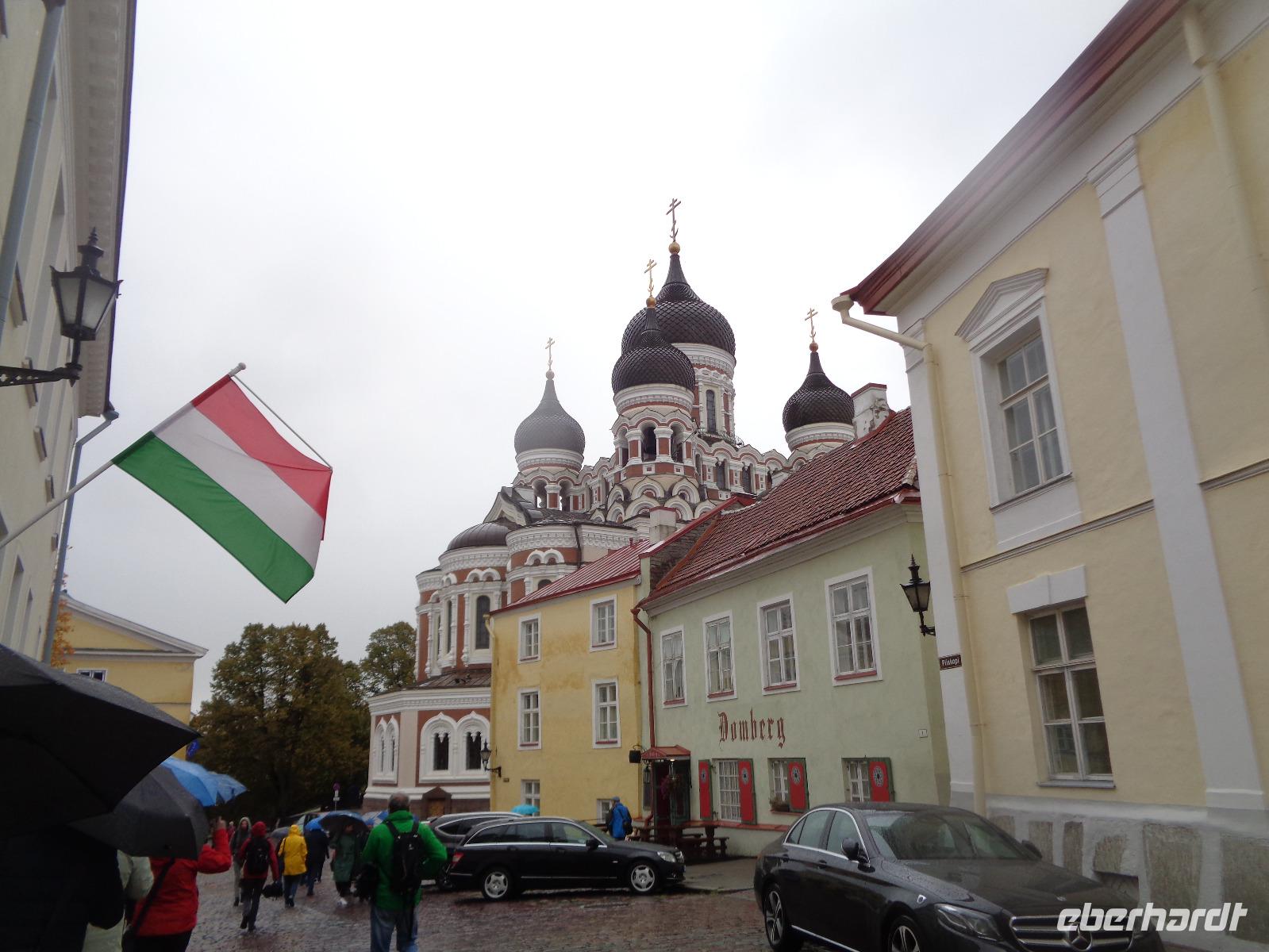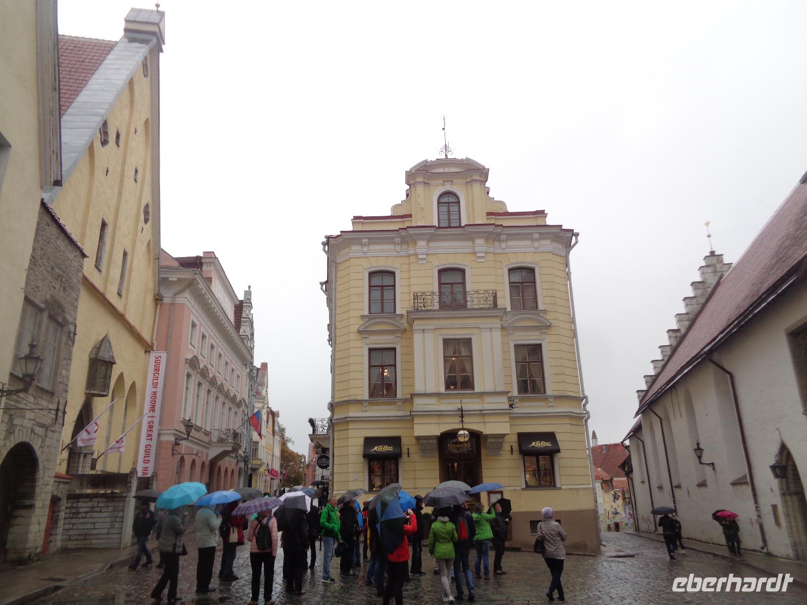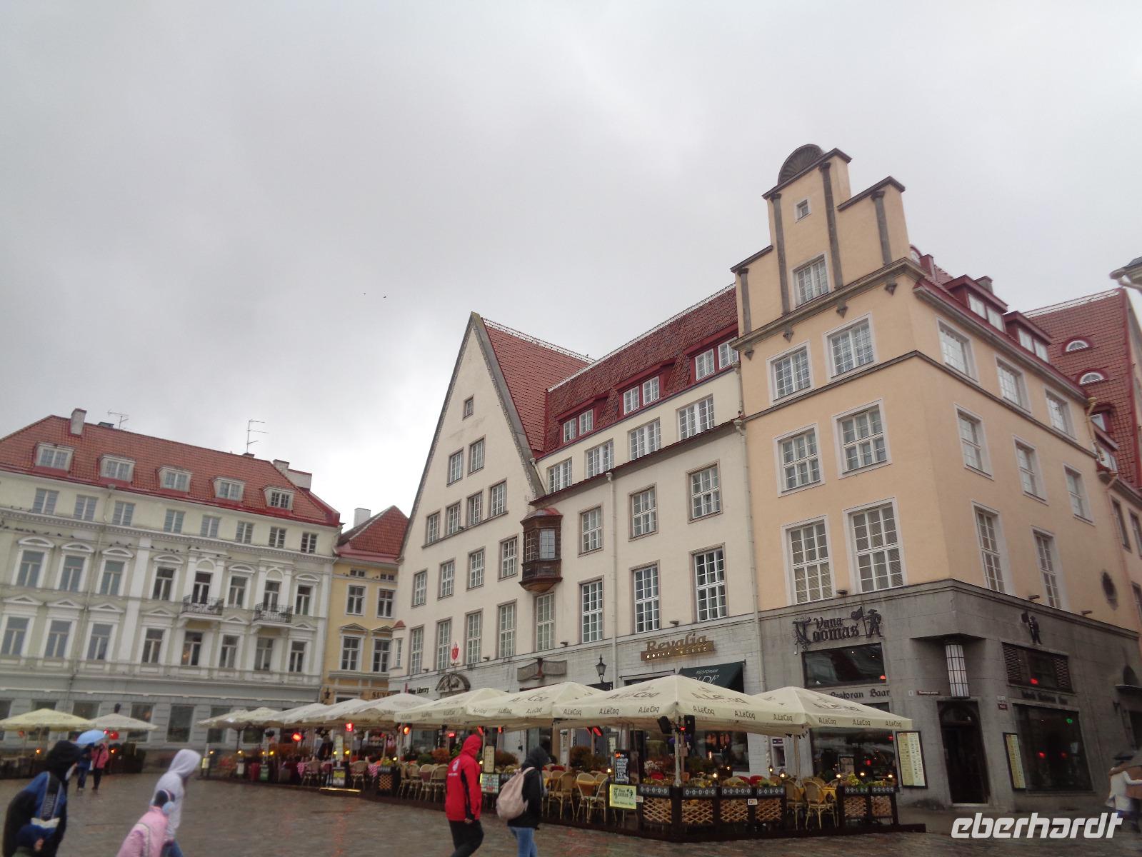 Nach unserem reichlichen Frühstück geht es zu unserer Stadtrundfahrt in Tallinn. Zunächst fahren wir Richtung Kadriorg und bewundern alte Holzhäuser und moderne Einfamilienhäuser in einem schicken Wohngebiet. Wir halten an der Sängerwiese und erfahren, dass die Esten leidenschaftliche Sänger sind. Wo man singt, da lass dich nieder. Wir folgen diesem Ruf und bewundern die gewaltige überdachte Bühne, die 10.000 Sängern Platz bietet. Die gesamte Wiese reicht für etwa 100.000 Mitsinger und Zuhörer. Seit 2004 steht hier auch ein Denkmal, das Gustav Ernesaks gewidmet ist, der als Musikvater der Sängerfeste und allgemeiner Organisator gilt und sehr verehrt wird. Weiter geht es zum Olympiazentrum. Auf der Fahrt sehen wir noch die Fassade des ehemaligen Klosters. Am Yachthafen steht das Olympiahotel für die Sportler von 1980, „Hotell Pirita Marina". Im Stadtbezirk Marienberg steht auch die ehemalige Sommerresidenz des russischen Grafen Anatolij Orlov-Davydov. Sein Schloss gehört heute zum Estnischen Geschichtsmuseum. Wir fahren zurück zur Altstadt und bestaunen die noch recht gut erhaltene Stadtmauer. Die Treppen führen uns hinauf zur Oberstadt zur Alexander-Newski-Kathedrale, in der Fotografieren nicht erlaubt ist. Wir befinden uns am Lossi plats mit dem Domschloss. Am Estnischen Parlament wehen die Fahnen ebenso wie an den ausländischen Vertretungen und Botschaften hier im Viertel. St. Marienkirche, Domschule und Mariendom sind verregnet und wir erwärmen uns erst einmal in einem hübschen Souvenirladen. Bevor es weiter zur Unterstadt geht, machen wir noch ein paar Schnappschüsse über die Dächer der verregneten Hauptstadt. Der Rathausplatz ist großartig. Das gotische Rathaus gilt als Wahrzeichen der Stadt und gehört zum Weltkulturerbe. In der Langstraße finden wir die Olai-Gilde, die Kanut-Gilde, auch ein Schwarzhäupterhaus, die Drei Schwestern und viele alte Kaufmannshäuser. Zwischen Altstadt und Hafen entstand das mondäne neue Rotermanni-Viertel, genau auf unserem Weg zurück zum Hotel. Das gemeinsame Abendessen findet wieder im Hotelrestaurant statt