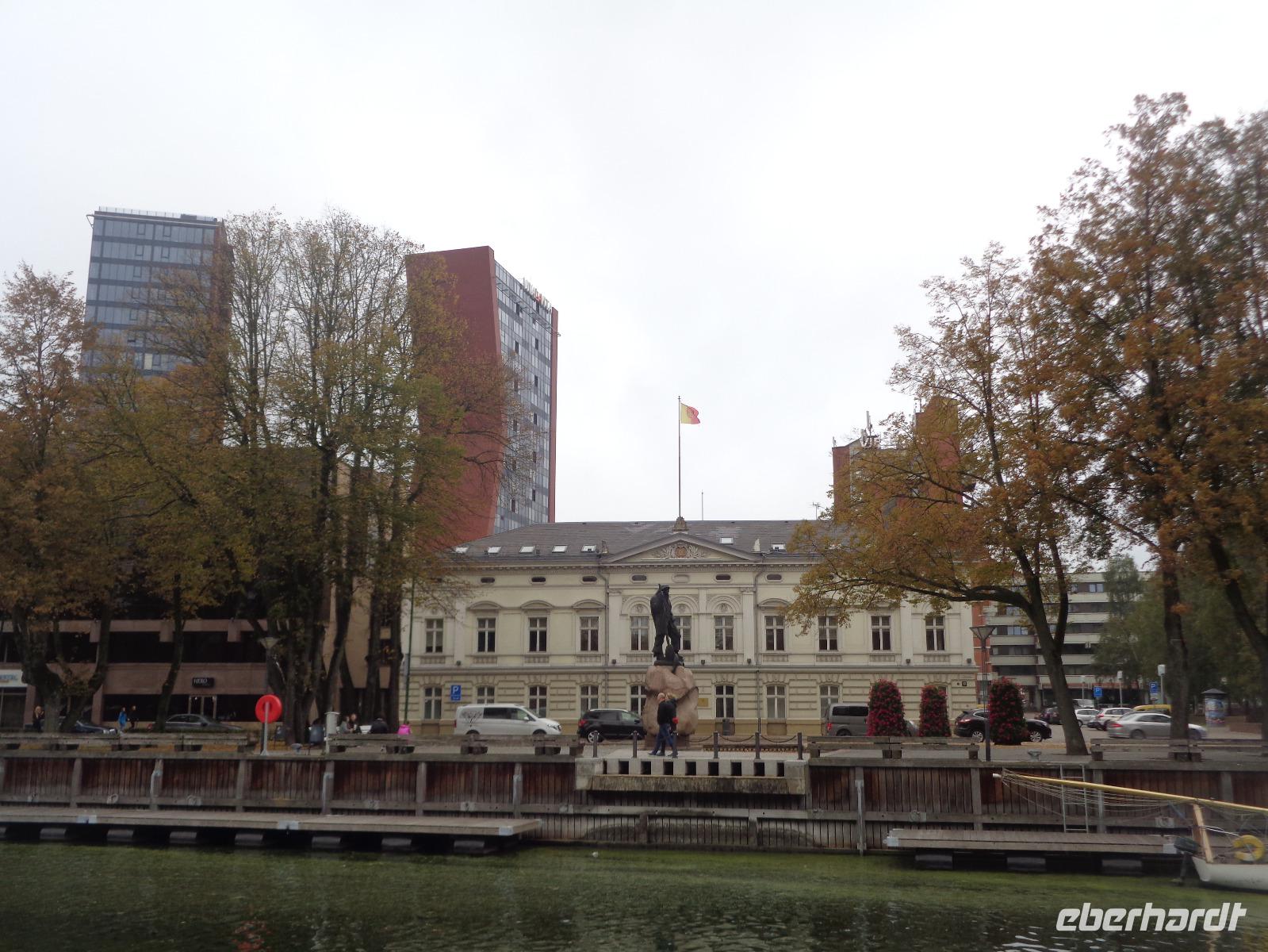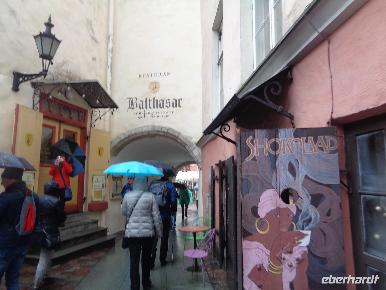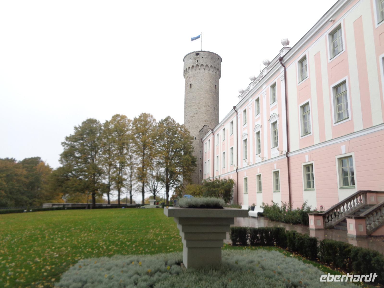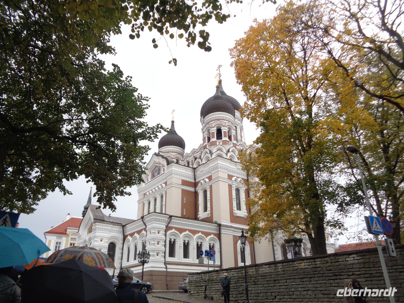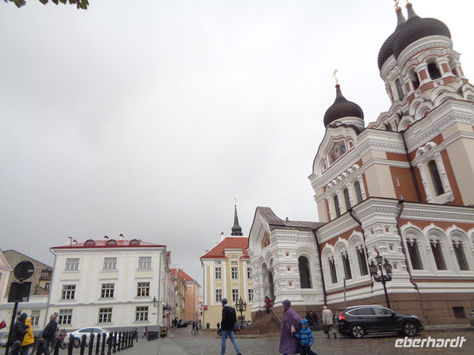 Nach unserem reichlichen Frühstück geht es zu unserer Stadtrundfahrt in Tallinn. Zunächst fahren wir Richtung Kadriorg und bewundern alte Holzhäuser und moderne Einfamilienhäuser in einem schicken Wohngebiet. Wir halten an der Sängerwiese und erfahren, dass die Esten leidenschaftliche Sänger sind. Wo man singt, da lass dich nieder. Wir folgen diesem Ruf und bewundern die gewaltige überdachte Bühne, die 10.000 Sängern Platz bietet. Die gesamte Wiese reicht für etwa 100.000 Mitsinger und Zuhörer. Seit 2004 steht hier auch ein Denkmal, das Gustav Ernesaks gewidmet ist, der als Musikvater der Sängerfeste und allgemeiner Organisator gilt und sehr verehrt wird. Weiter geht es zum Olympiazentrum. Auf der Fahrt sehen wir noch die Fassade des ehemaligen Klosters. Am Yachthafen steht das Olympiahotel für die Sportler von 1980, „Hotell Pirita Marina". Im Stadtbezirk Marienberg steht auch die ehemalige Sommerresidenz des russischen Grafen Anatolij Orlov-Davydov. Sein Schloss gehört heute zum Estnischen Geschichtsmuseum. Wir fahren zurück zur Altstadt und bestaunen die noch recht gut erhaltene Stadtmauer. Die Treppen führen uns hinauf zur Oberstadt zur Alexander-Newski-Kathedrale, in der Fotografieren nicht erlaubt ist. Wir befinden uns am Lossi plats mit dem Domschloss. Am Estnischen Parlament wehen die Fahnen ebenso wie an den ausländischen Vertretungen und Botschaften hier im Viertel. St. Marienkirche, Domschule und Mariendom sind verregnet und wir erwärmen uns erst einmal in einem hübschen Souvenirladen. Bevor es weiter zur Unterstadt geht, machen wir noch ein paar Schnappschüsse über die Dächer der verregneten Hauptstadt. Der Rathausplatz ist großartig. Das gotische Rathaus gilt als Wahrzeichen der Stadt und gehört zum Weltkulturerbe. In der Langstraße finden wir die Olai-Gilde, die Kanut-Gilde, auch ein Schwarzhäupterhaus, die Drei Schwestern und viele alte Kaufmannshäuser. Zwischen Altstadt und Hafen entstand das mondäne neue Rotermanni-Viertel, genau auf unserem Weg zurück zum Hotel. Das gemeinsame Abendessen findet wieder im Hotelrestaurant statt