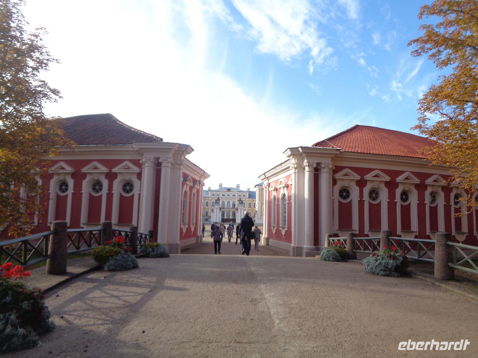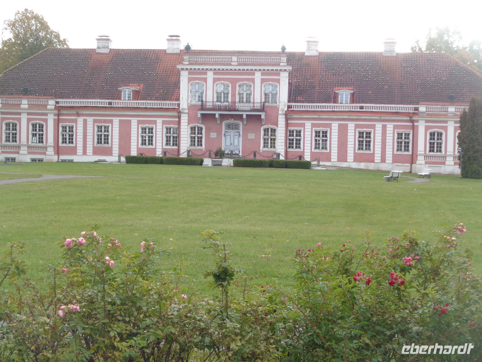 Heute gibt es nach dem Frühstück wieder einen hübschen Ausflug. Über Bauska fahren wir in den Bezirk Rundäles novads. Die Gründung des Ortes Rundäle geht auf den Deutschorden in Livland zurück. Der Landmeister Konrad von Feuchtwangen ließ hier eine Burg errichten, die 1280 erstmals urkundlich erwähnt wurde. Zu Beginn des 18. Jhd. wurde das Schloss errichtet. Die Ähnlichkeit mit Versailles ist verblüffend, das haben wir sofort erkannt. Nicht verwunderlich, dass es auch als Versailles des Baltikums bezeichnet wird. Das Schloss wurde im Auftrag der russischen Zarin Anna Iwanowna durch Baumeister Rastrelli errichtet und ist ein Schmuckstück des Barock und Rokokos in Lettland. Es sollte dem kurländischen Herzog Biron als Sommersitz dienen, der aber nach dem Tod der Zarin nach Sibirien verbannt wurde. Zarin Katharina II. erlaubte ihm die Rückkehr und es wurde weiter gebaut. Nach den Folgebesitzern Subow und Schuwalow fiel das Schloss 1920 an den Staat. Das Schloss diente in den Wirren des Krieges und danach als Wohnraum, Schule und Kornspeicher. Erst 1972 wurde es in die Obhut der Museumsgründung Schloss Rundäle genommen und umfangreiche Restaurierungsarbeiten begannen. Das Ergebnis kann sich sehen lassen! Ebenso der Garten im französischen Stil, den wir mit einem kleinen Zug durchqueren. Jetzt bewundern wir die Rosenzüchtungen. Heute besteht hier eine Forschungsstelle für die ältere Kunstgeschichte Lettlands. Im benachbarten Restaurant des Gästehauses „Balta Maja" lassen wir uns fürstlich bewirten und fahren anschließend nach Riga zurück. Heute heißt es wieder Koffer packen, aber erst nach dem Abendessen.