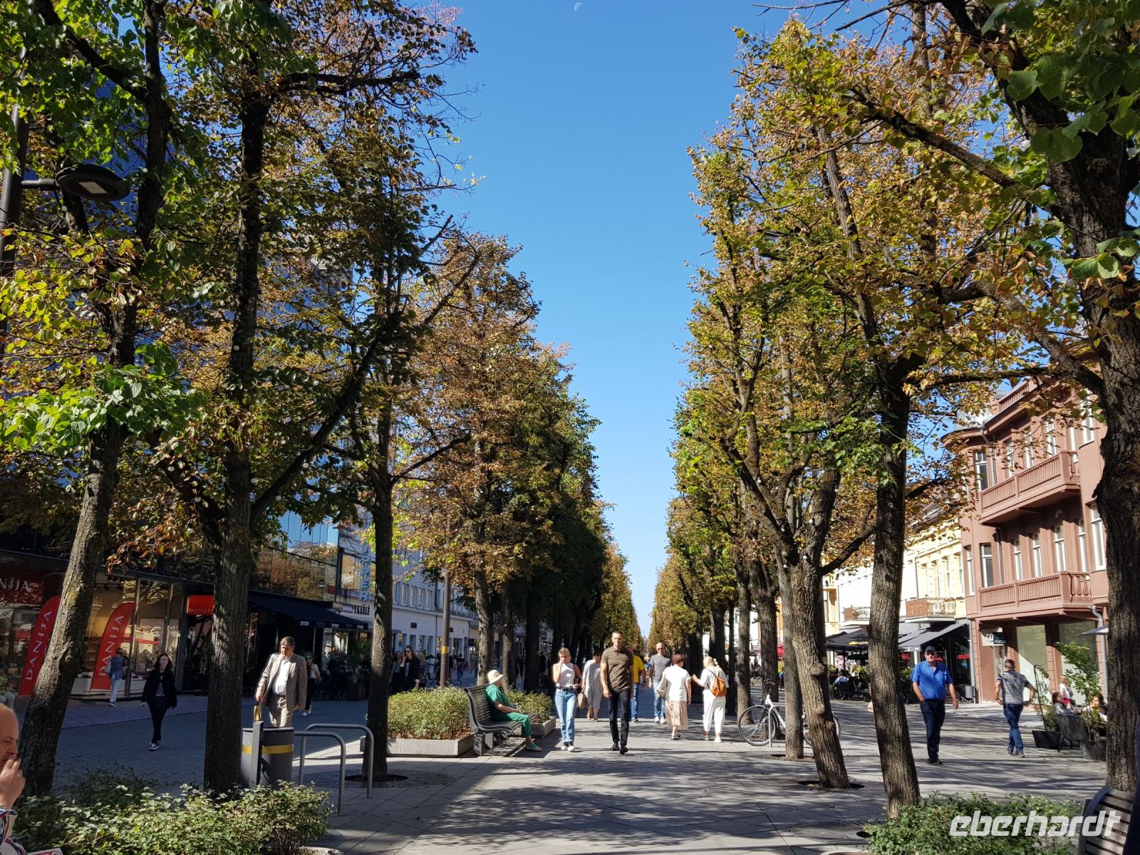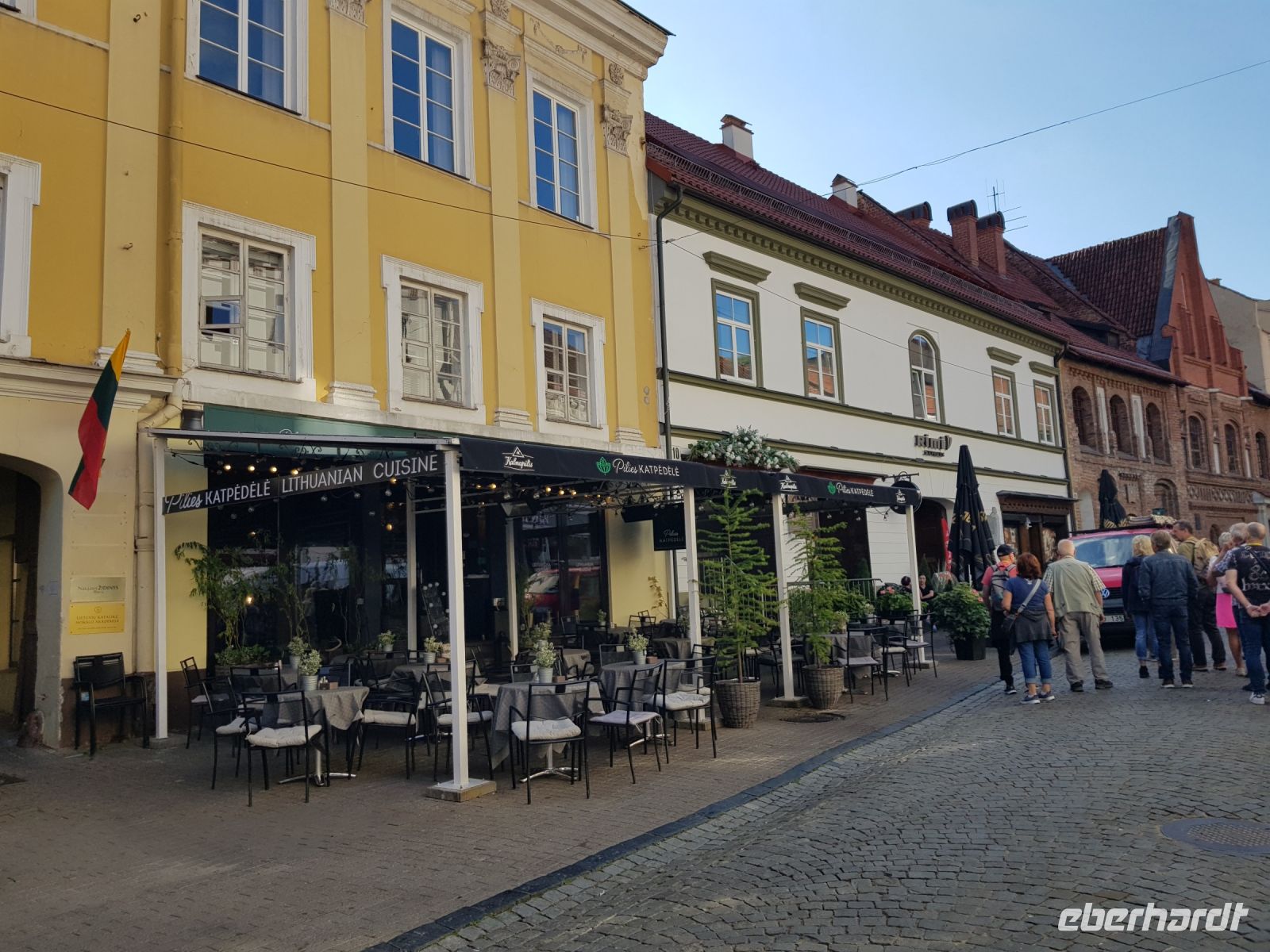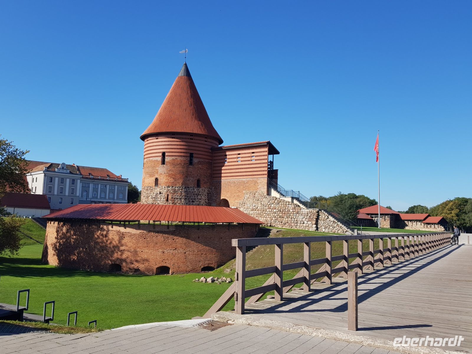 Unser Stadtrundgang beginnt an der Burg, die nach der Einnahme der Stadt vom Deutschen Orden im Stil der norddeutschen Backsteingotik wieder erbaut wurde. Weiter führt uns Vilija zum Zentrum der Stadt mit Rathaus und einigen gotischen Häusern, die Ausstellungen und ein der Universität angegliedertes medizinisches Museum beherbergen. Vorbei am (von deutschen Kaufleuten im 15.Jhd. erbauten) Perkunas-Haus mit seinen gotischen Türmen, ein grösserer Stopp in der Kathedrale mit ihrem beeindruckenden Inneren und weil es gerade so am Weg liegt - ein weiterer Stopp am Ufer der Memel. Nach kurzem Luft schnappen begeben wir uns in die breite von vielen Bäumen und Cafes gesäumte Fussgängerzone - die Liberty Avenue - das Herzstück der Stadt und die längste boulevardartige Allee in Litauen und eine der längsten in Nordeuropa. Hier legen wir eine 2-stündige Pause ein und Jeder kann wie er mag, ein bisschen bummeln, auf Fotomotivsuche gehen oder nur in einem der vielen Cafes Platz nehmen.