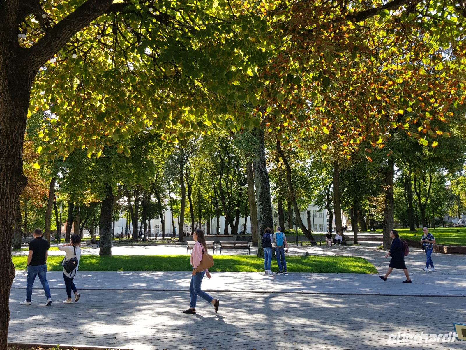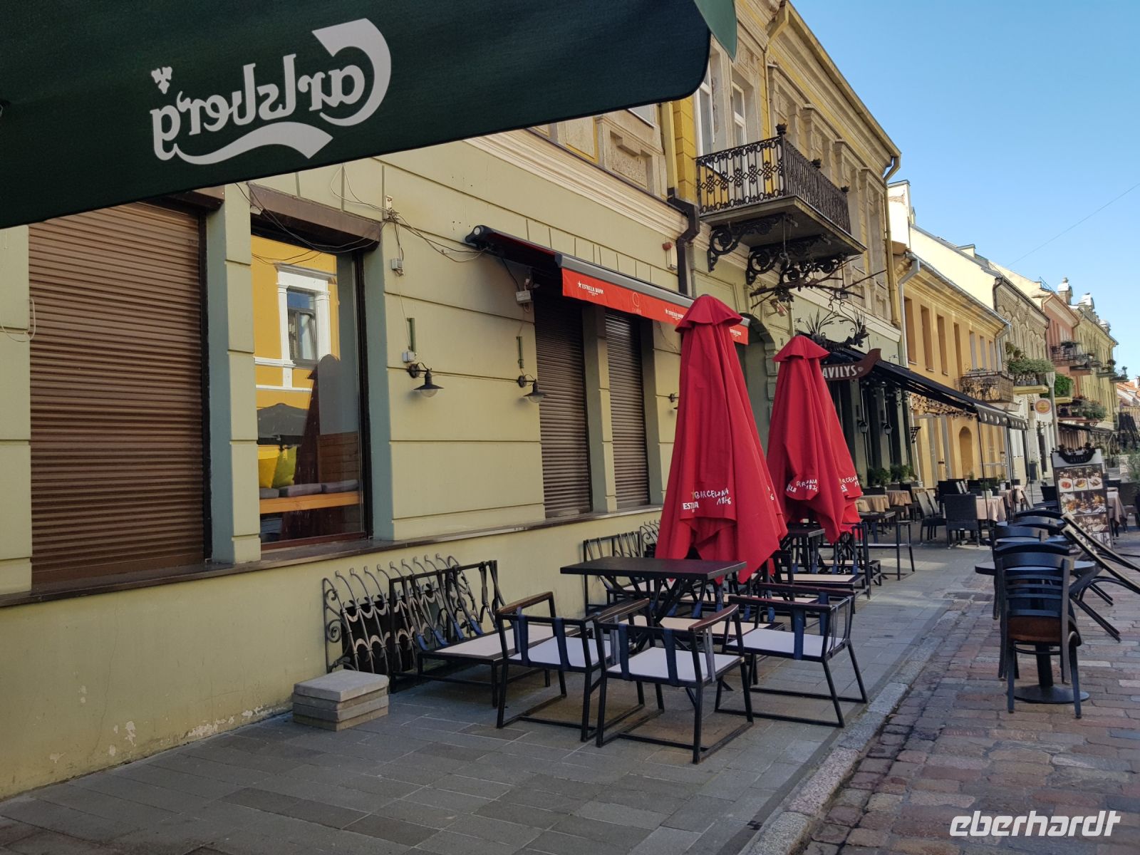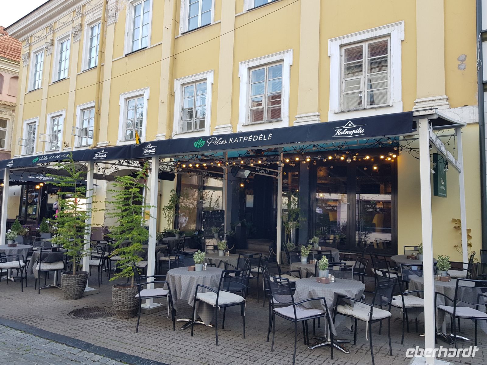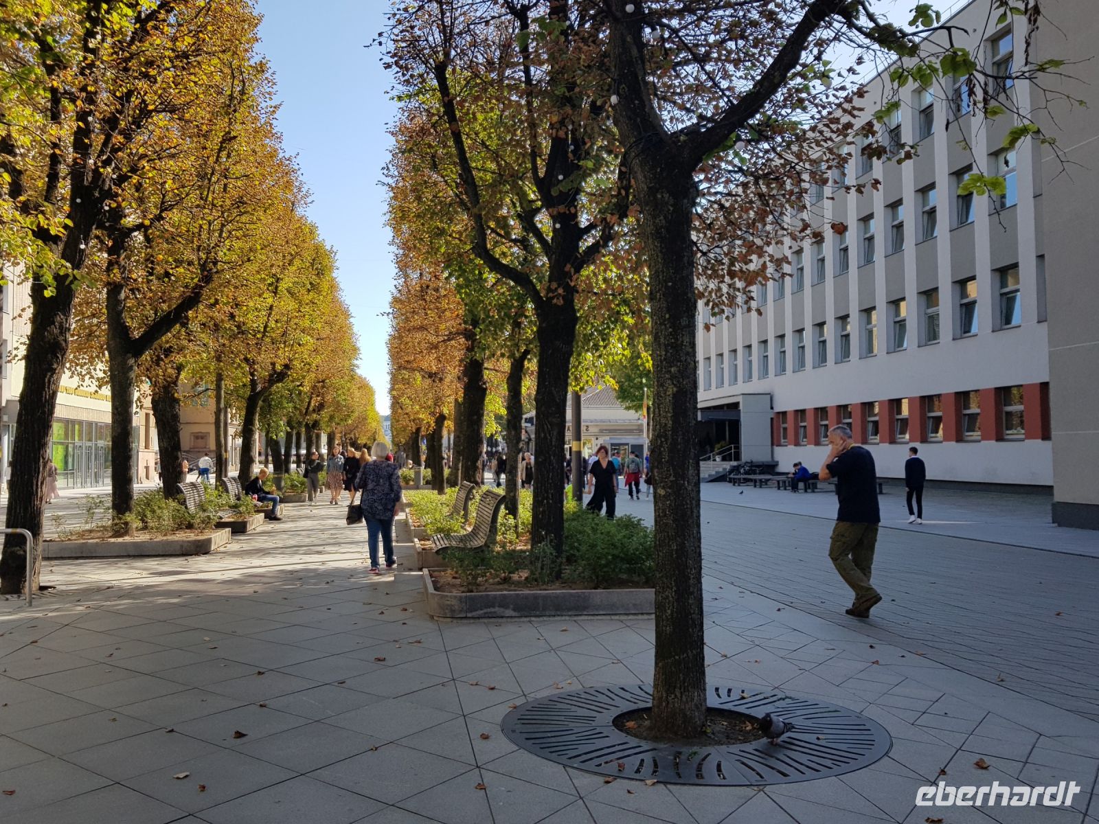 Unser Stadtrundgang beginnt an der Burg, die nach der Einnahme der Stadt vom Deutschen Orden im Stil der norddeutschen Backsteingotik wieder erbaut wurde. Weiter führt uns Vilija zum Zentrum der Stadt mit Rathaus und einigen gotischen Häusern, die Ausstellungen und ein der Universität angegliedertes medizinisches Museum beherbergen. Vorbei am (von deutschen Kaufleuten im 15.Jhd. erbauten) Perkunas-Haus mit seinen gotischen Türmen, ein grösserer Stopp in der Kathedrale mit ihrem beeindruckenden Inneren und weil es gerade so am Weg liegt - ein weiterer Stopp am Ufer der Memel. Nach kurzem Luft schnappen begeben wir uns in die breite von vielen Bäumen und Cafes gesäumte Fussgängerzone - die Liberty Avenue - das Herzstück der Stadt und die längste boulevardartige Allee in Litauen und eine der längsten in Nordeuropa. Hier legen wir eine 2-stündige Pause ein und Jeder kann wie er mag, ein bisschen bummeln, auf Fotomotivsuche gehen oder nur in einem der vielen Cafes Platz nehmen.