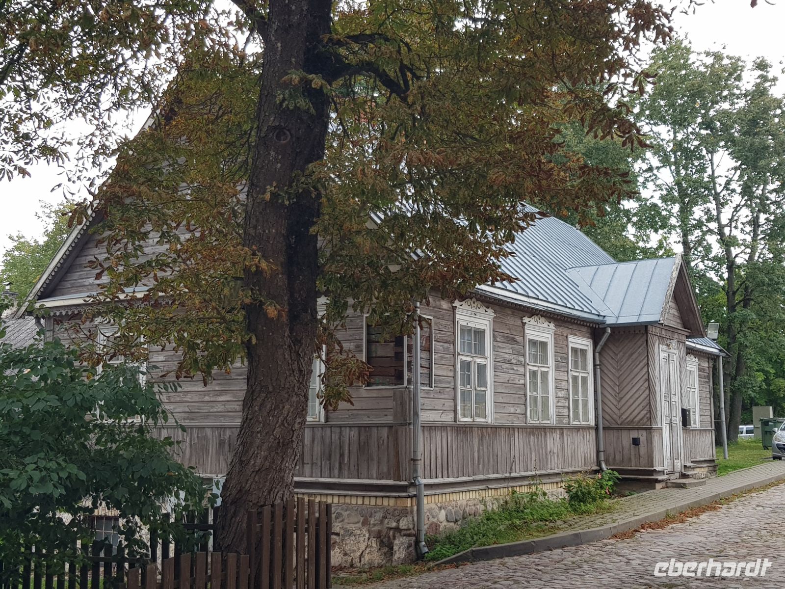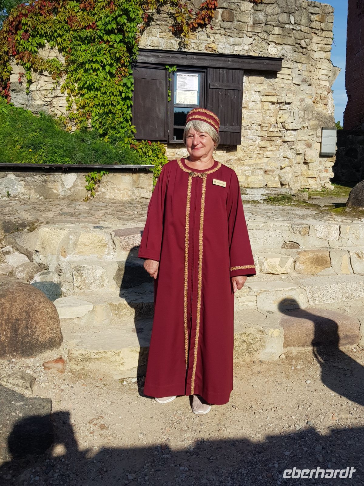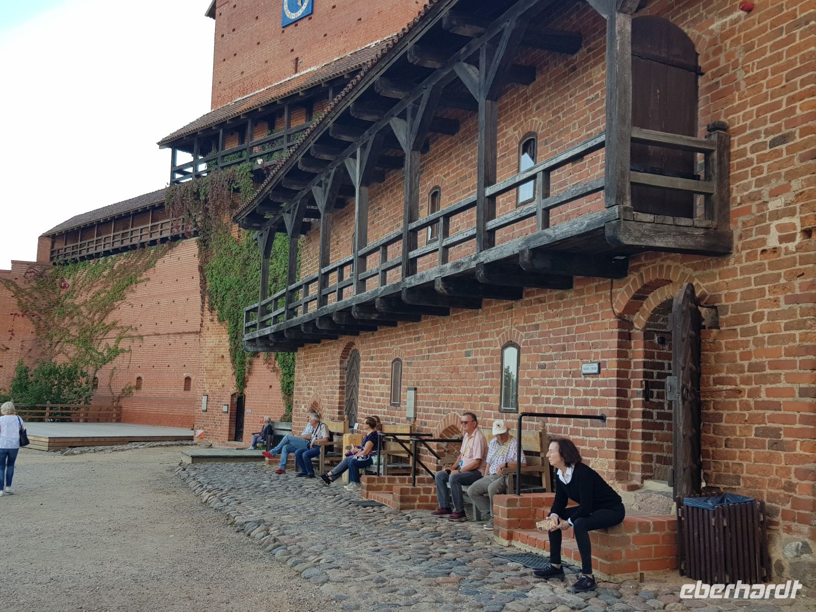 In einer hübschen Seenlandschaft, keine 50 km von Vilnius entfernt, liegt sie, die mächtige Inselburg, die bis zur Stadtgründung von Vilnius litauische Hauptstadt Litauens war. Über einen Holzsteg erreichen wir die Vorburg, die durch eine Brücke mit der Hauptburg verbubden ist. Das dreistöckige kastellartige Gebäude beherbergt allerhand spätmittelalterliche Gegenstände aller Art - hier bekommt man einen Kompaktkurs in litauischer Geschichte. Auch das Umland lernen wir bei einem Spaziergang kennen. Neben den vielen Cafes am Seeufer, Tretbootverleih, Läden für Kunsthandwerk, Ständen mit Bernstein-Utensilien entdecken wir auf dem Weg zum Bus die typischen Holzhäuser mit ihren Vorgärten.