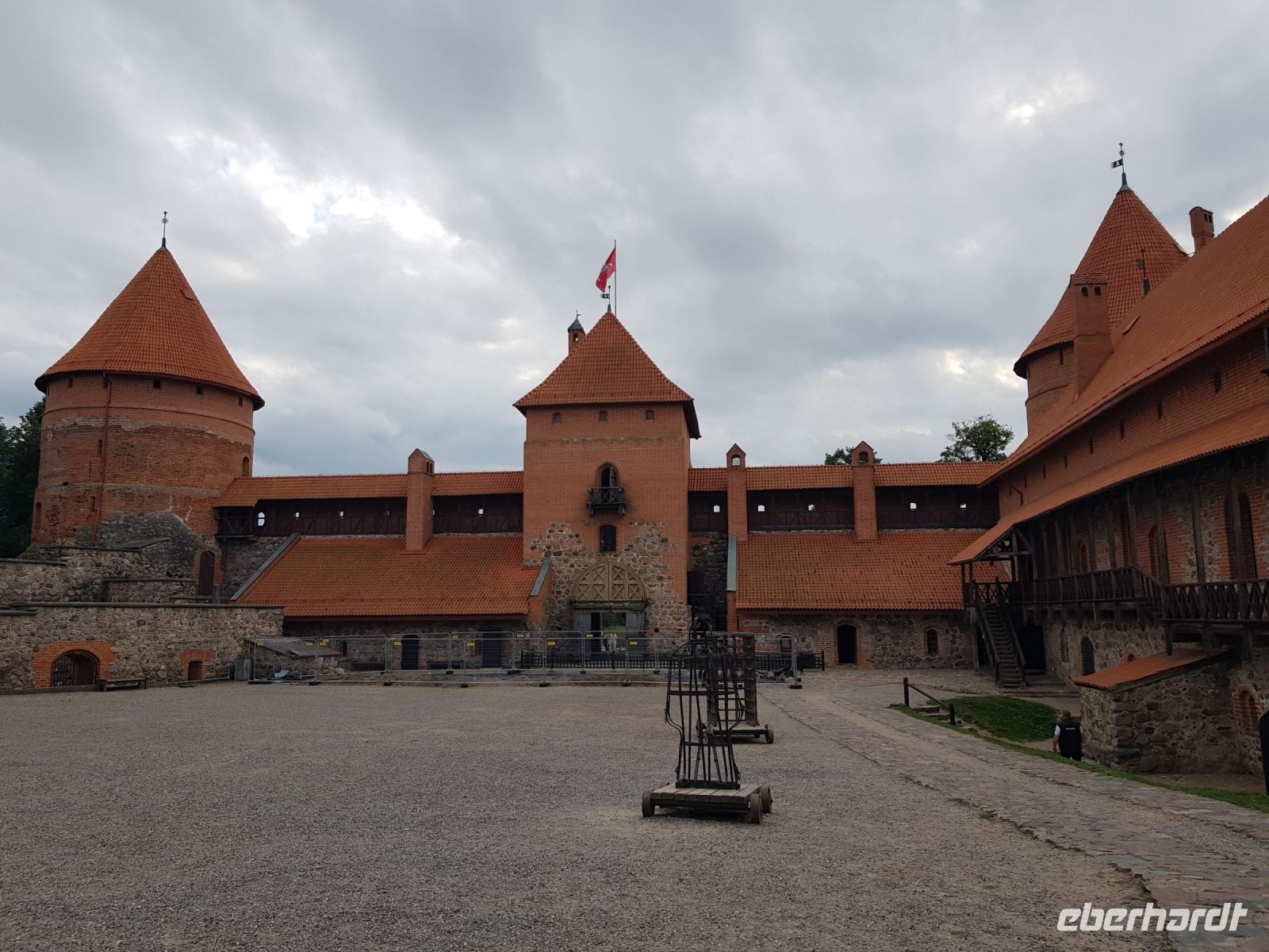 Vom ehemaligen jüdischen Viertelist nach dem Holocaust und dem schleichenden Verfal während der Sowjetzeit nicht mehr viel übrig geblieben. Im Jüdischen Kultur-und Informationszentrum können sich Interessenten über die jüdische Vergangenheit der Stadt informieren. Über den Marktplatz mit Rathaus gelangen wir schliesslich zu einem Teil der ehemaligen Stadtmauer mit dem Tor der Morgenröte. Nun haben wir genügend Freizeit, um eine individuelle Pause zu machen, etwas zu essen und zu trinken, bevor wir uns wieder am Reiterdenkmal des Fürsten Gediminas treffen, um in die alte Hauptstadt - Wasserburg Trakkai - zu fahren.