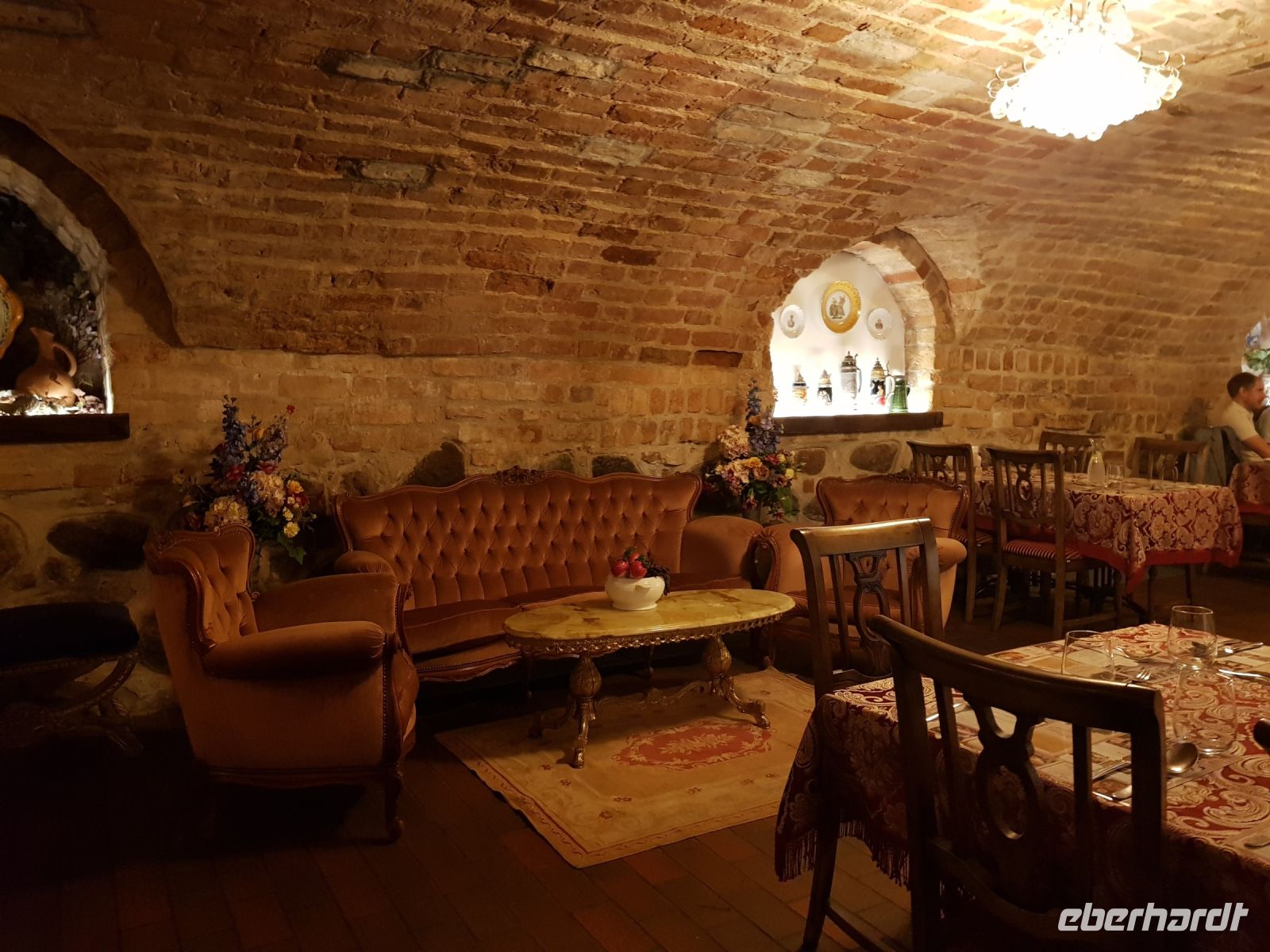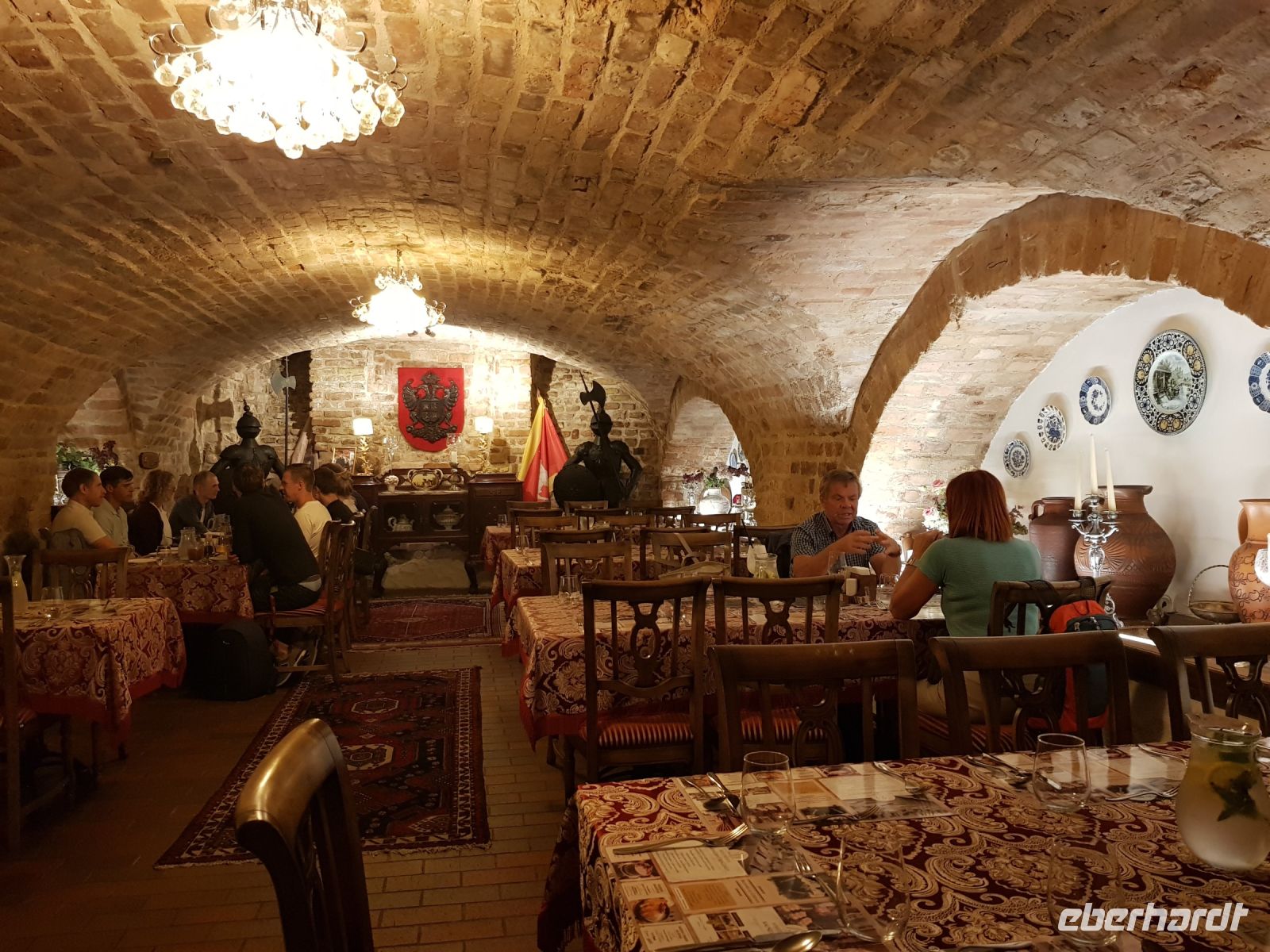 Am Abend treffen wir uns im Restaurant " Berneliu Uzeiga" in der Altstadt. Schon allein die Aussenansicht lädt uns ein, drinnen werden wir den Aufenthalt im alten schön restauriertem Gewölbe geniessen. Und auch das Essen ist wieder sehr gut ( Vorspeise: Pilzsuppe in einem Brotleib serviert) und daran müssen wir uns noch gewöhnen: es gibt immer - und das ist typisch - Nachtisch mit Kaffee oder Tee.