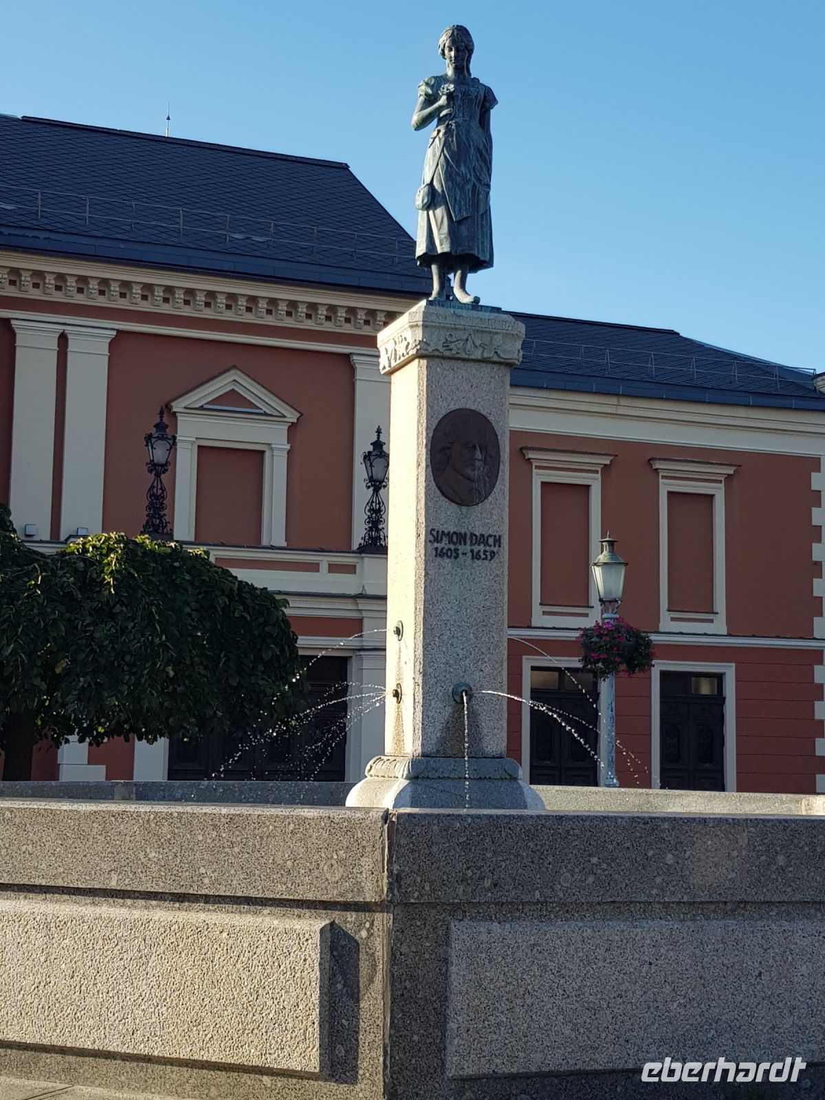Von hier aus sind es immerhin noch 1,5 h bis nach Memel/Klaipeda, mit rund 150 000 Einwohnern die drittgrößte Stadt Litauens. Bekannt ist Memel durch den Hafen, er ist der einzigste und bedeutende Hafen Litauens. Und nicht zu vergessen das musikalische Wahrzeichen "Ännchen von Tharau", das Volkslied, das Simon Dach hier komponierte. Wir stehen vor dem Brunnen mit dem ihr gewidmeten Denkmal und stimmen das Lied an, das wir schon im Bus ein wenig geübt haben - ein wirklich schönes Liebeslied. Klaipeda hat eine kleine Altstadt, ein paar schöne Fachwerkhäuser und Speicher sind erhalten geblieben. Aber das alles kann man nach dem Abendessen noch auf eigene Faust erkunden. Das Hotel "Mercure Klaipeda City" ist das Gegenstück zum Marriot, kleiner, es strahlt eine gewisse Gemütlichkeit aus. Die Zimmer wurden in den letzten Jahren renoviert und sind geschmackvoll eingerichtet.