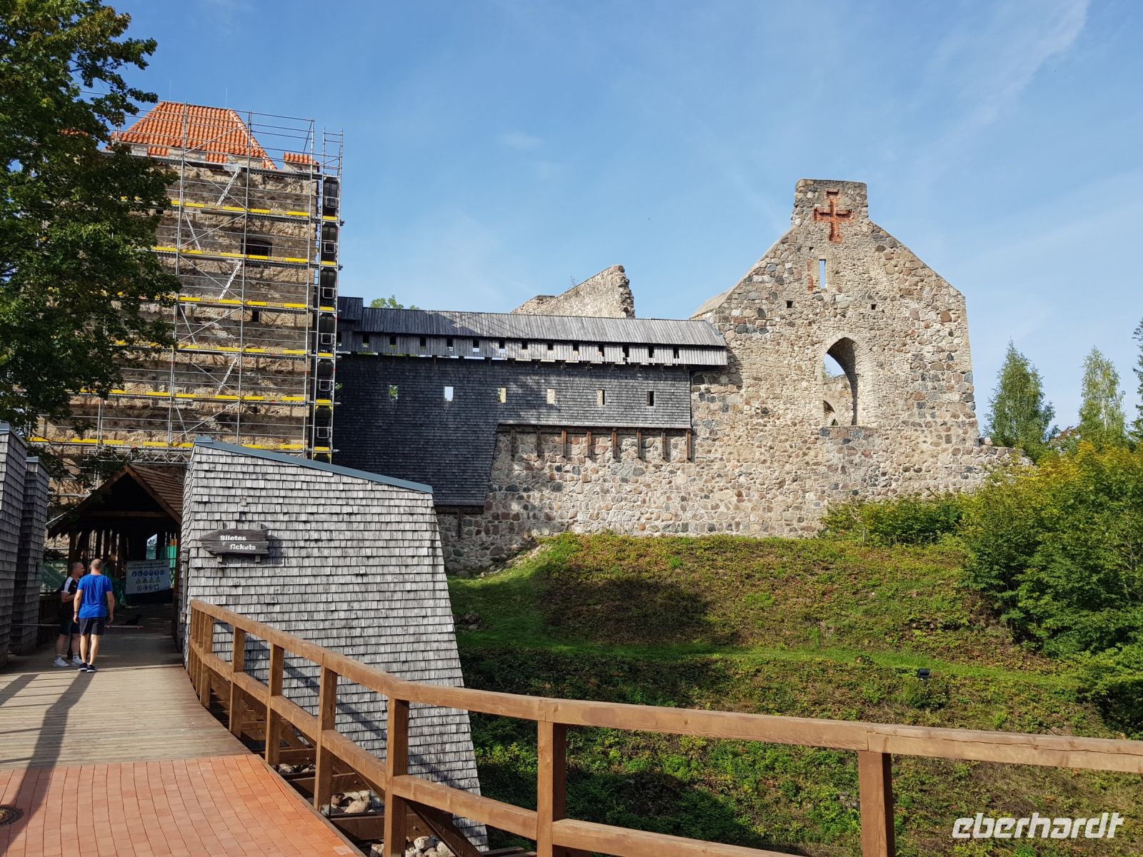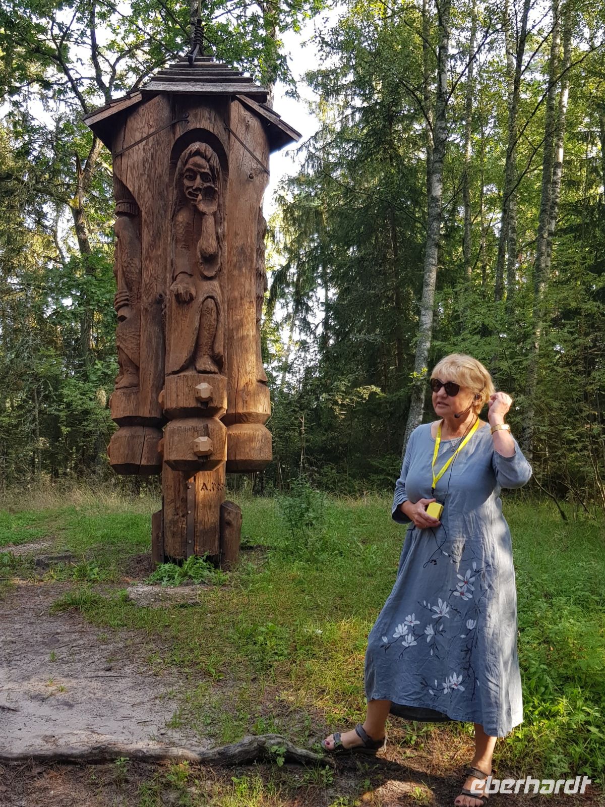 Nach unserer schon obligatorischen Mittagspause ( einige Gäste haben auf Empfehlung von Vilija die Markthallen besucht), fahren wir mit dem Bus in den Gauja - Nationalpark. Vorbei an der Bobbahn in Sigulda ( so viel Berg und Tal erwartet man hier gar nicht ) besichtigen wir zuerst die Parkanlage der Sommerresidenz des Grafen Kropotkin einschliesslich der alten Burgruinen. Danach geht es weiter zur Gutmannshöhle und zur Burganlage von Turaida. Nach den wichtigsten Erläuterungen u.a. am Grab der "Rose von Turaida", kann Jeder auf seine Art bummeln. Die Sonne scheint, die Temperaturen sind erträglich und wir können in Ruhe durch den Park spazieren und die Skulpturen, Kirche, Burgfried und Bischofsburg erkunden. Zurück in Riga treffen wir uns zum Abendessen im Restaurant "Melnais Kiploks". Wieder war es ein schöner Tag, den wir erleben durften!