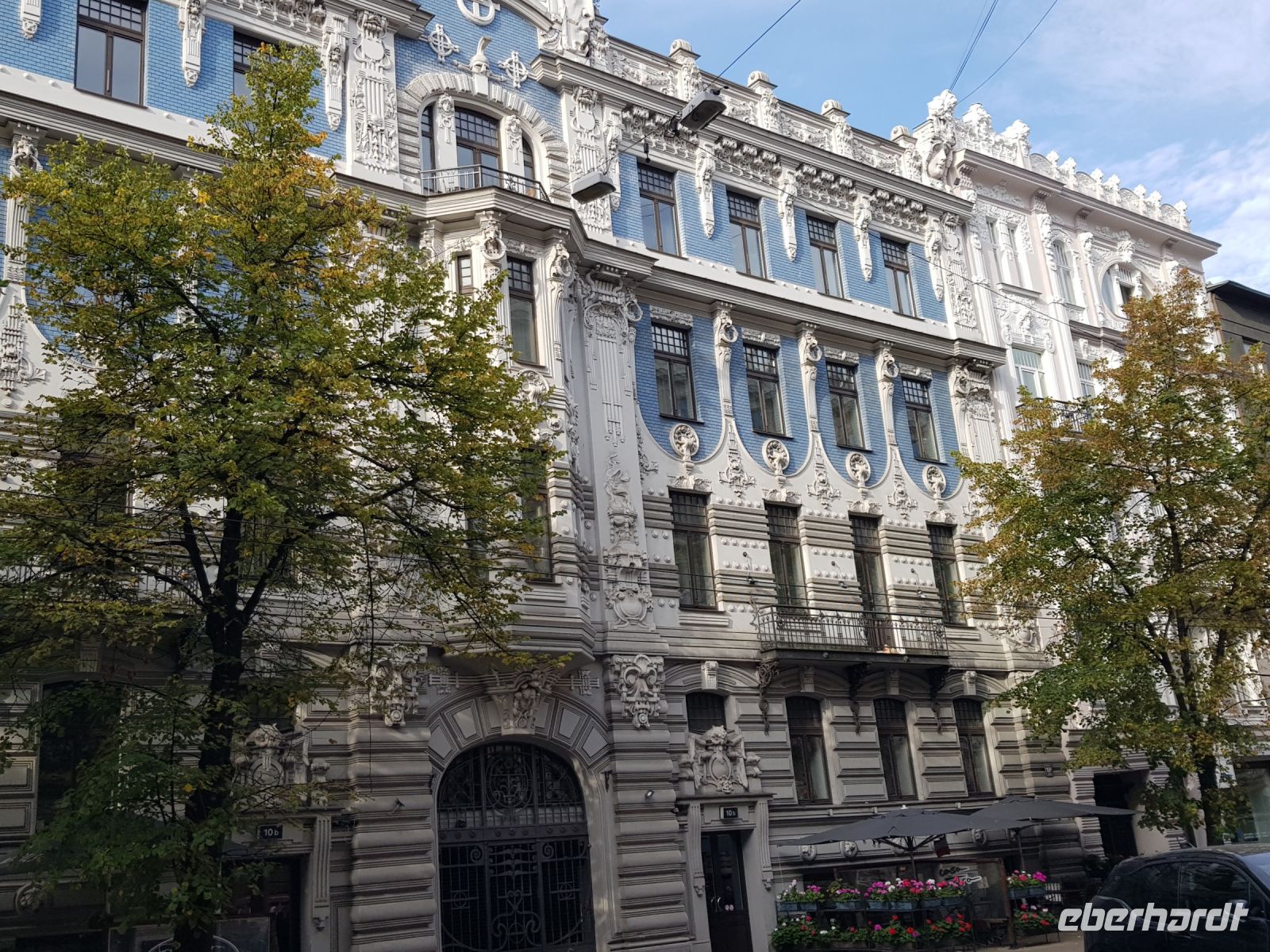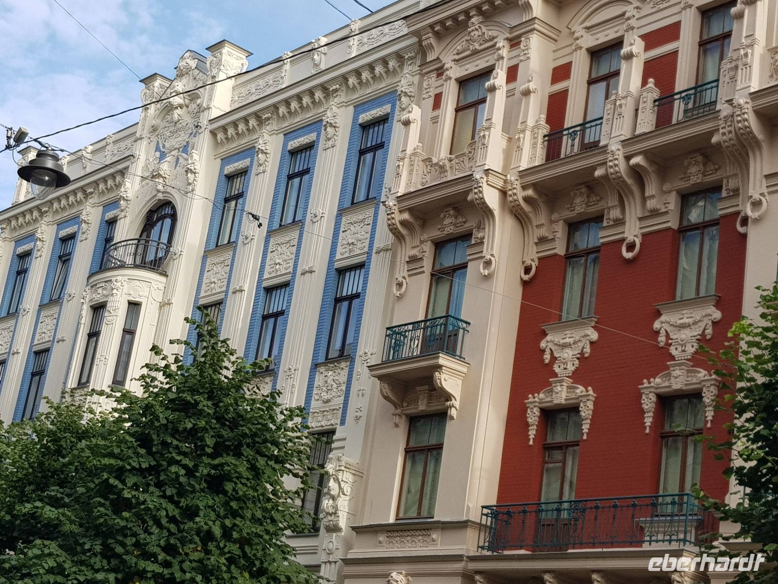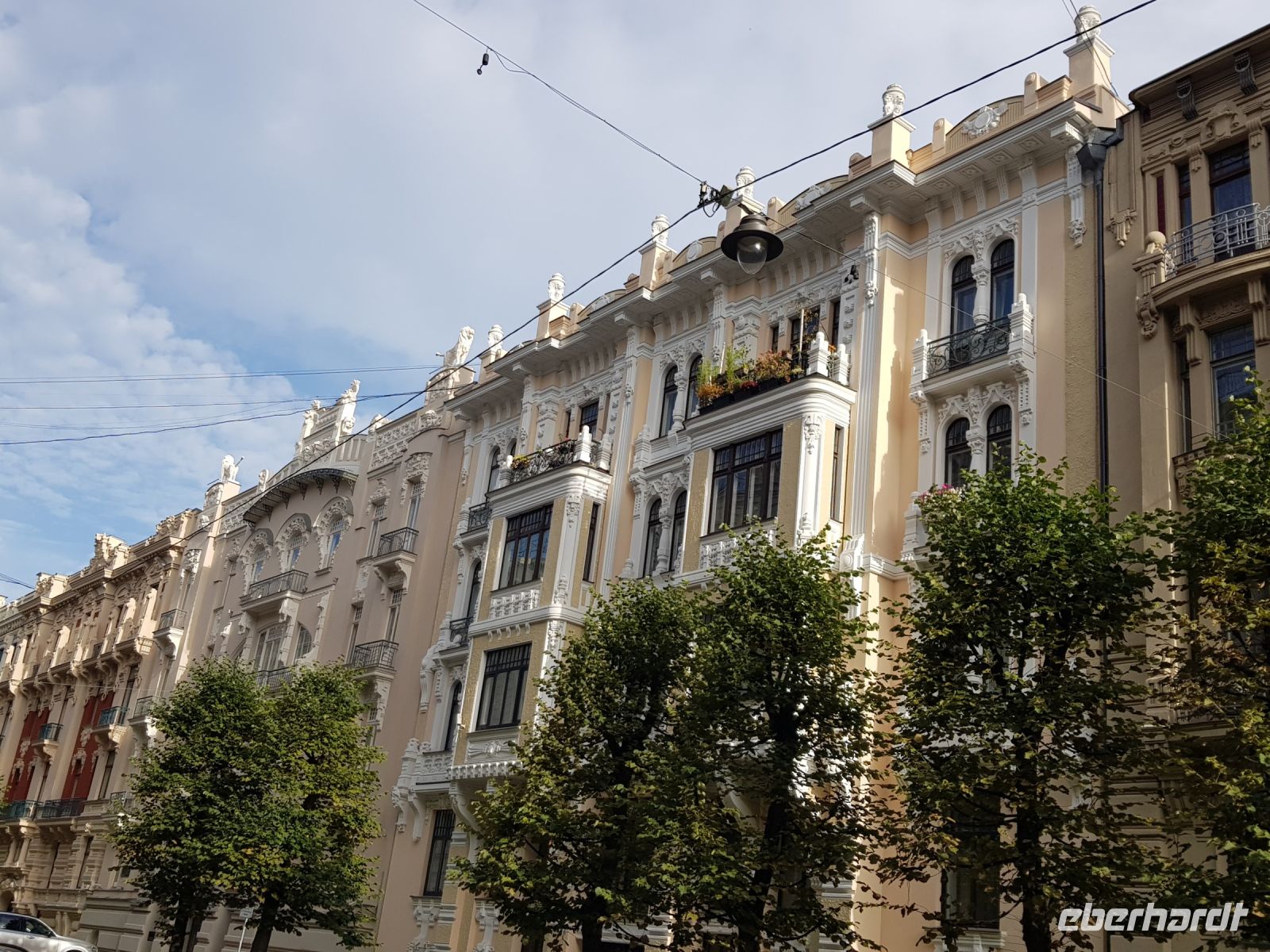 In den Jahren nach der Unabhänigkeitserklärung begann man damit, die verfallene Bausubstanz Rigas zu renovieren. Davon zeugt nicht nur das Jugendviertel, das sich gleich um die Ecke des Hotels befindet. Professionell führt Vilija die Gruppe durch die Strassen - die bekannteste ist die "Alberta iela" - von Michail Eisenstein, dem Vater des berühmten Filmregisseurs (Sergej Eisenstein), dessen bekanntester Film "Panzerkreuzer Potemkin" im Osten jeder kennt. Unsere Reiseführerin entdeckt auch ein Haus, das nicht verschlossen ist und wir können einen Blick in ein fantastisch renoviertes Treppenhaus werfen.
