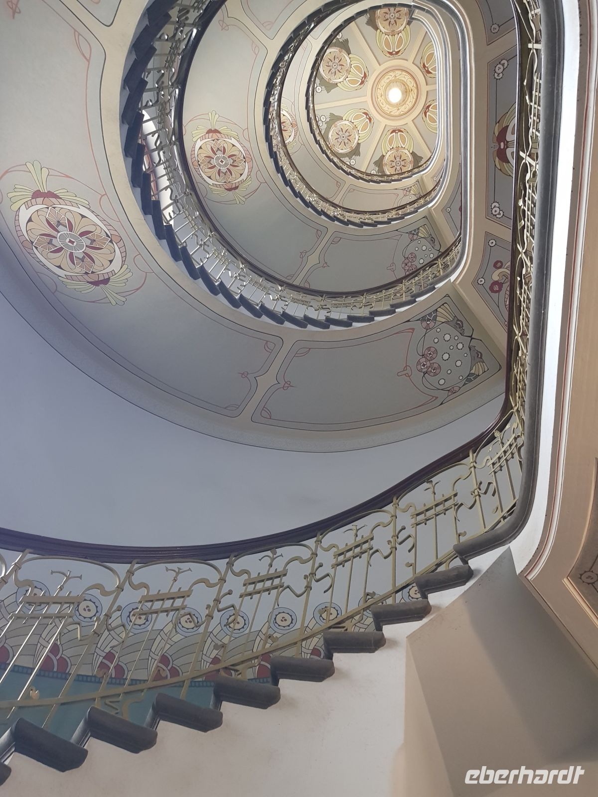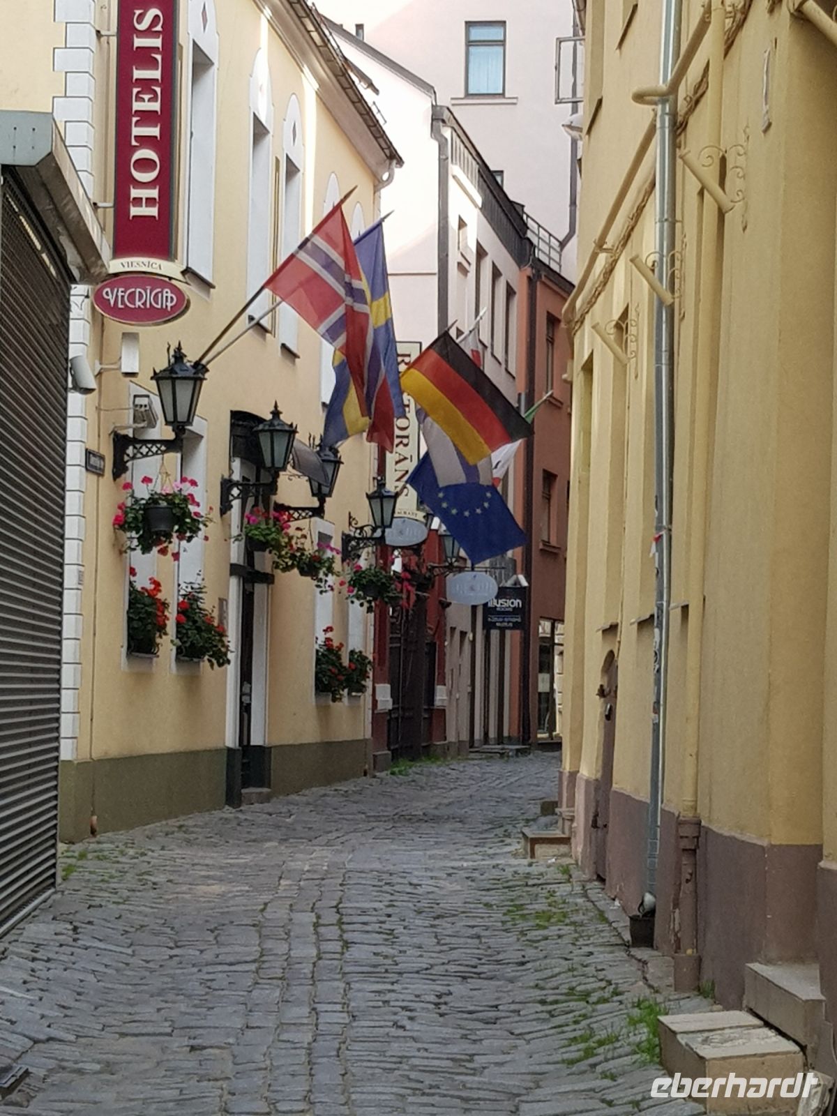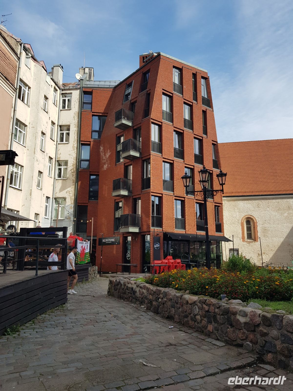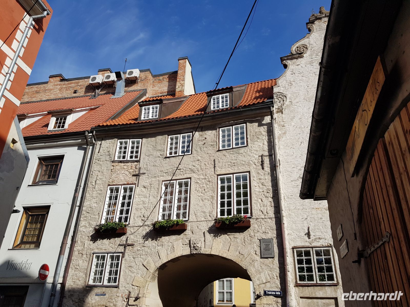 In den Jahren nach der Unabhänigkeitserklärung begann man damit, die verfallene Bausubstanz Rigas zu renovieren. Davon zeugt nicht nur das Jugendviertel, das sich gleich um die Ecke des Hotels befindet. Professionell führt Vilija die Gruppe durch die Strassen - die bekannteste ist die "Alberta iela" - von Michail Eisenstein, dem Vater des berühmten Filmregisseurs (Sergej Eisenstein), dessen bekanntester Film "Panzerkreuzer Potemkin" im Osten jeder kennt. Unsere Reiseführerin entdeckt auch ein Haus, das nicht verschlossen ist und wir können einen Blick in ein fantastisch renoviertes Treppenhaus werfen.