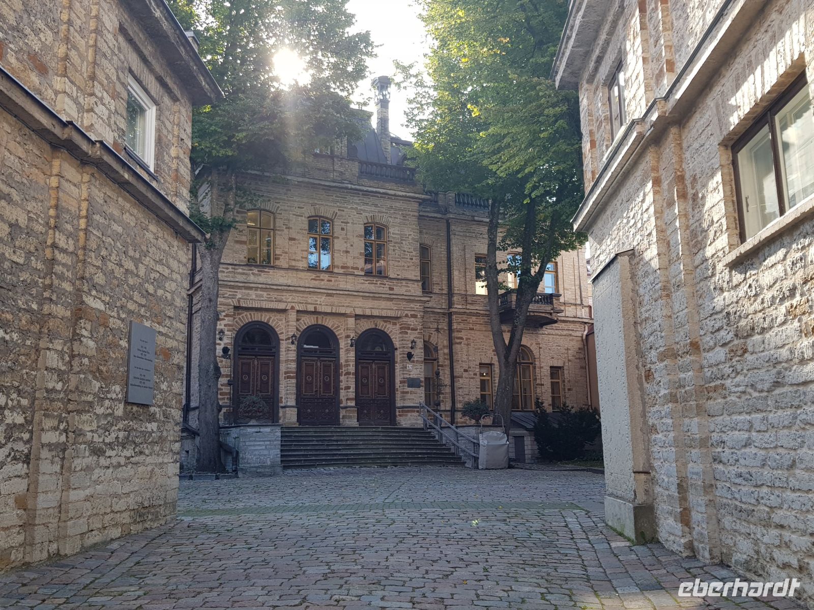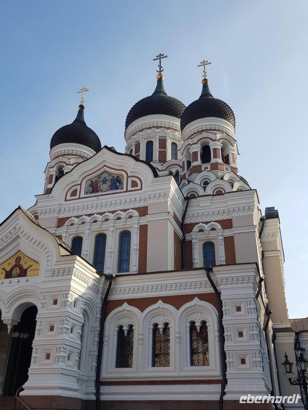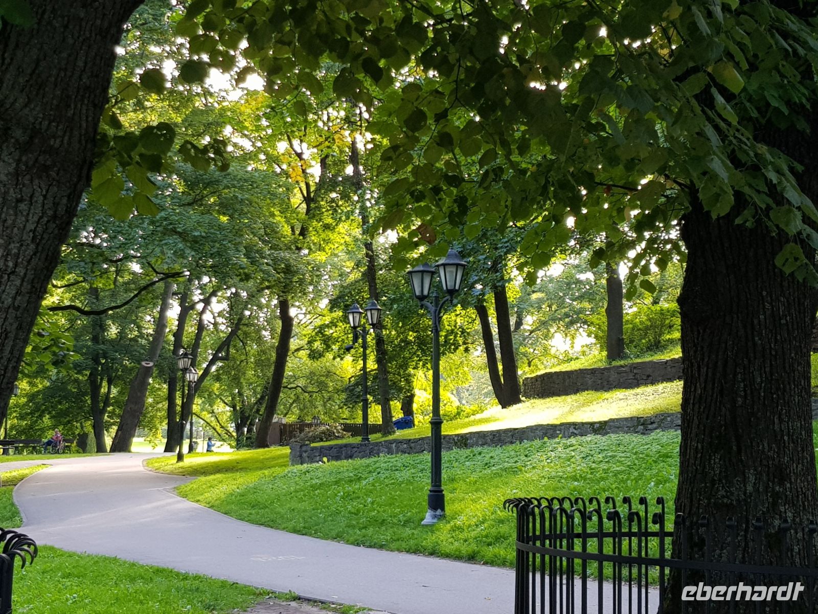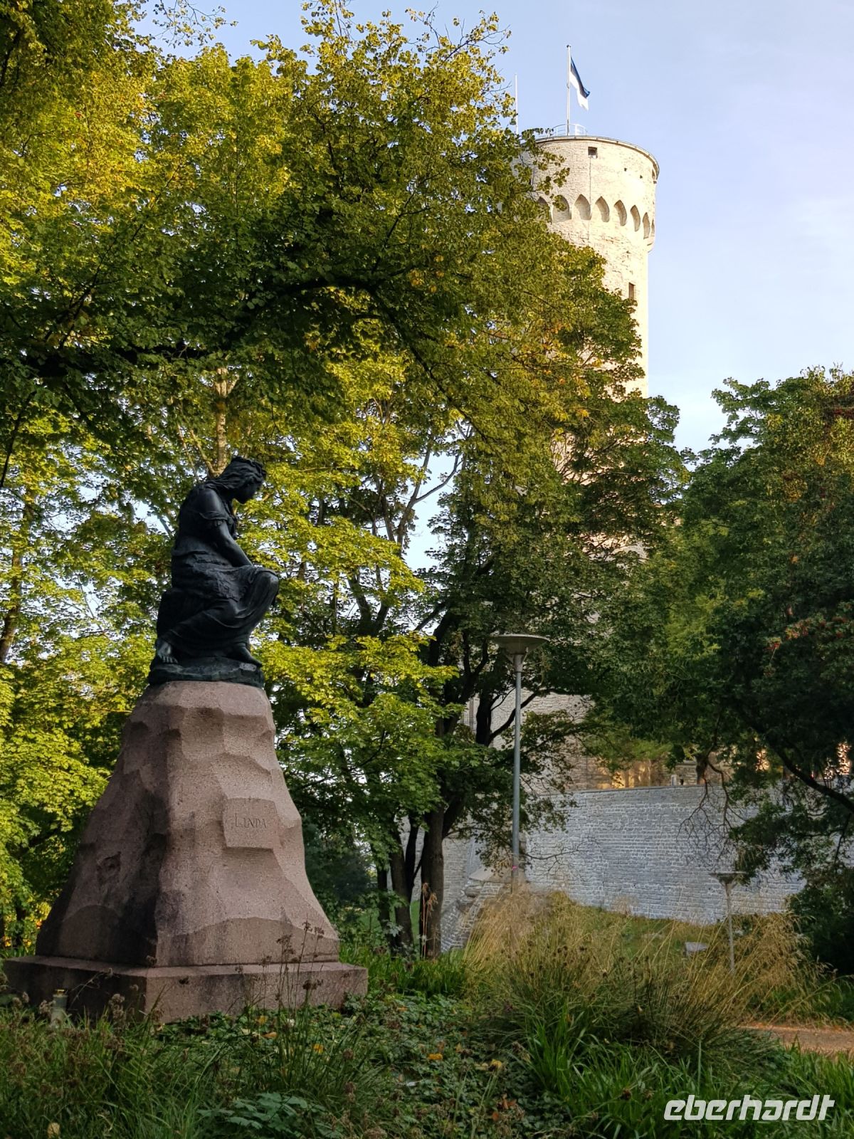 Nach dem Frühstück geht es los zur Stadtführung zunächst in die Oberstadt: nur wenige hundert Meter vom Hotel entfernt stehen wir schon vor einem Teil der weitgehend erhaltenen Stadtmauer. Daneben in einem Parkauf das Denkmal von Linda, die ihren Mann auf einem Hügel selbst zusammengetragener Steine beweint. Unmittelbar in der Nähe sind wir schon vor dem Schlossplatz mit Parlamentsgebäude ( Domschloss), Alexander Newski Kathedrale angekommen ( natürlich gehen wir ganz leise hinein, es ist gerade Gottesdienst).