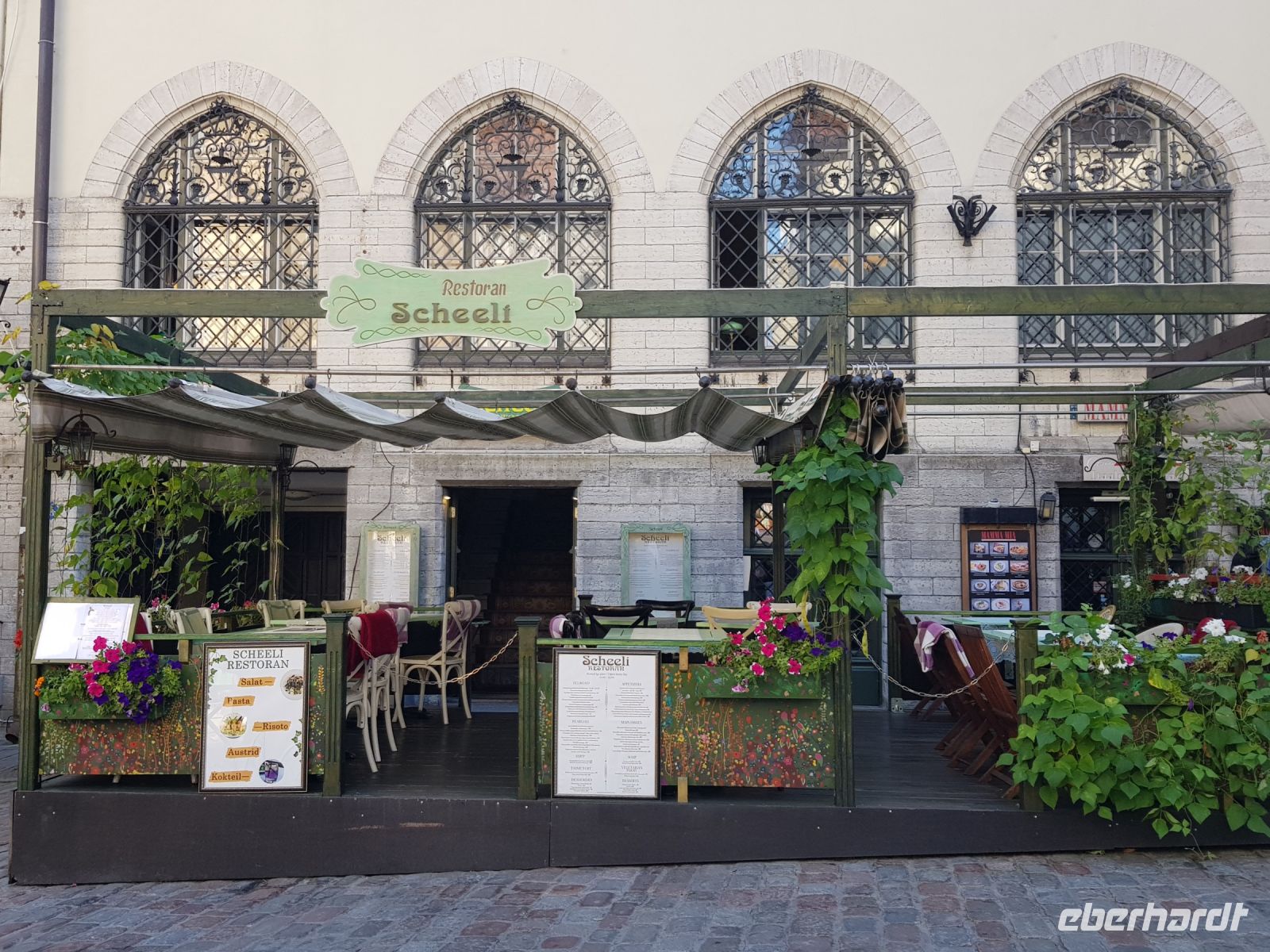 Ein Blick gönnen wir noch dem Restaurant, in dem wir zu Abend essen werden - "Scheeli" unmittelbar im Zentrum der vielen Gildehäser wie z.B. n dem "Pfeffersack" oder "Old Hanse".