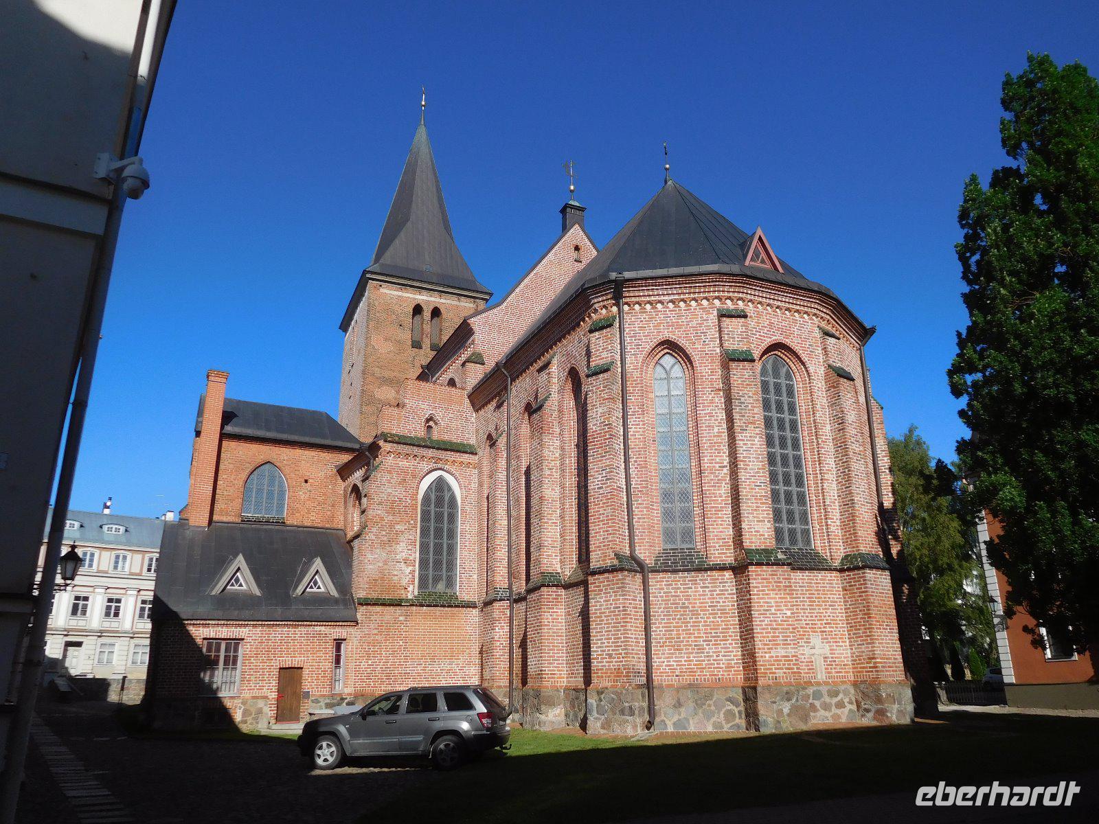 Nach dem Frühstück fuhren wir nach Kaunas, wo wir direkt an der Brücke über den Memelfluß ausstiegen. Die angeblich längste Brücke der Welt verband einst Russland und Preußen und damit zwei unterschiedliche Kalender mit einer Differenz von zwei Wochen. Wir begannen mit der gotischen Vytautaskirche und dem spätgotischen Perkunashaus und gingen dann zum Rathausplatz mit der Kathedrale. In der anschließenden Mittagspause konnte jeder nach Belieben durch die Altstadt bummeln. Dann ging es weiter in unser nächstes Hotel nach Memel. Die Stadt hat unter Kriegen und Sowjetzeit gelitten, doch sind immer mehr bedeutende historische Gebäude zu sehen. Dazu zählt das eher schlichte Herrenhaus, in dem Preußenkönig Friedrich Wilhelm III. mit seiner Luise 1807/08 residierte, wodurch die Stadt zur preußischen Hauptstadt avancierte. Vorbei an alten Speichern und kleinen Bürgerhäusern spazierten wir zum Brunnen der Ännchen von Tharau, die durch das auf sie von Simon Dach gereimte Hochzeitsgedicht und dessen Vertonung populär wurde.