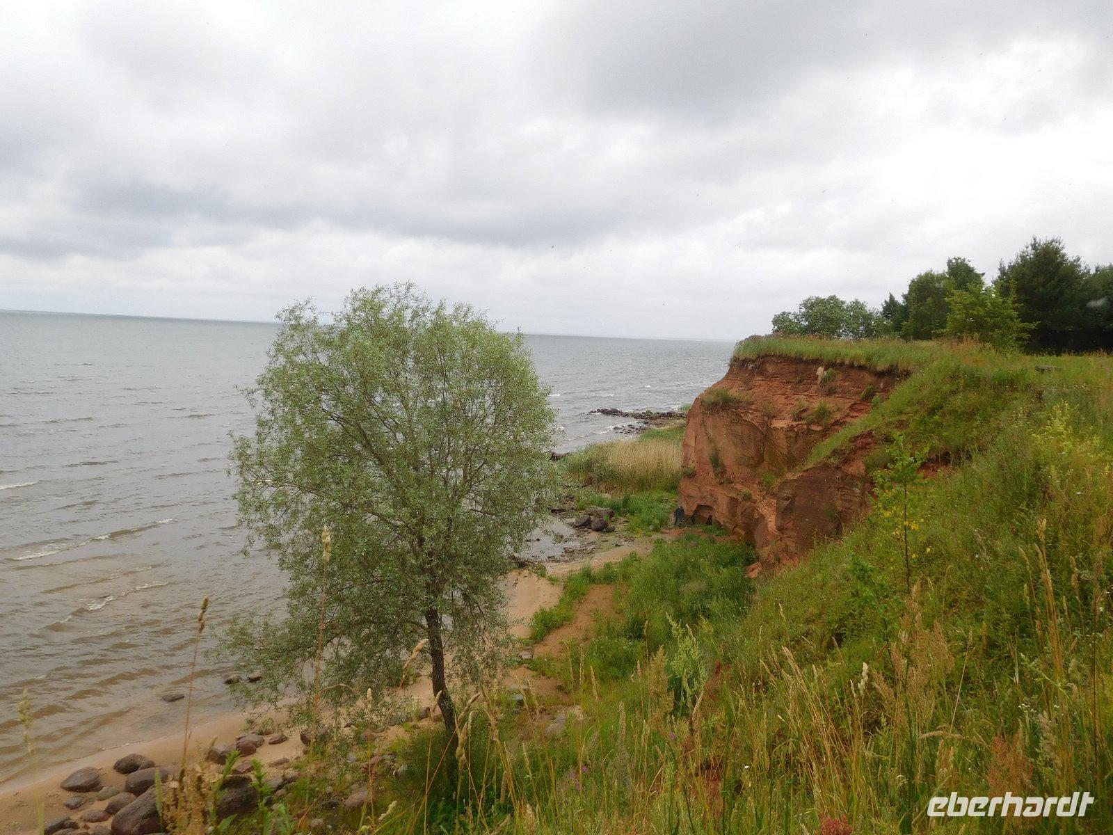 Gleich nach dem Frühstück fuhren wir an den Peipussee, der mit 3555 Quadratkilometern der fünftgrößte in Europa und siebenmal so groß wie der Bodensee ist. Im Örtchen Kolkja wohnen fast ausschließlich Altgläubige russisch Orthodoxe, über die uns eine Führung in ihrem Heimatmuseum informierte. Ihre Zwiebelfelder zeugen von geschickten Gärtnern. Eine sehr ausführliche Führung im Schloß von Alatsviki bot eine Dame in einem Kleid aus der Zeit Ende des 19. Jahrhunderts, als Baron Arved Georg von Nolcken nach dem Vorbild des schottischen Landsitzes Balmoral Castle im Tudorstil bauen ließ. Neben dem originalen Interieur gibt es im Keller die wichtigsten Leute des Personals als Wachsfiguren zu sehen. In Kallaste bildet roter Sandstein eine imposante Steilküste am See.
