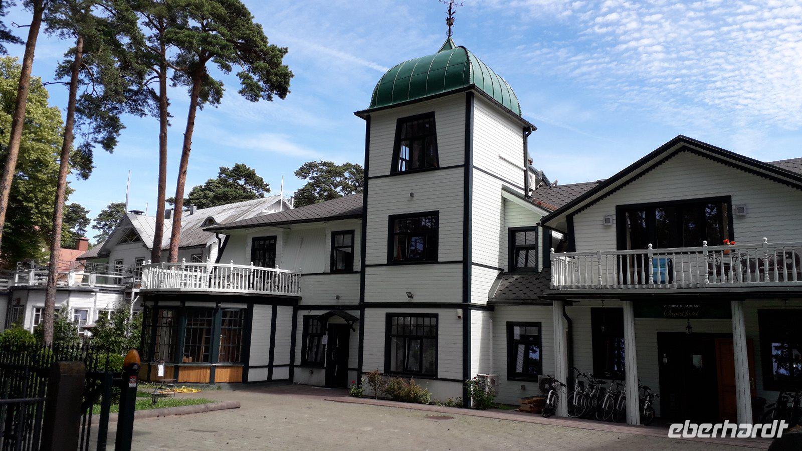 Nach einem etwas späteren Frühstück fuhren wir mit der Tram ins berühmte Jugendstilviertel. Wir schlenderten durch die Elisabeth- und die Albert-, sowie die Schützenstraße, wo die schönsten und mittlerweile gut sanierten Bauten zu finden sind. Die markantesten stammen von Michael Eisenstein und seinem als Filmregiss eur weltbekannten Sohn Sergej. Von dort schlenderten wir in die Altstadt zur Jakobikirche, in deren Nähe die als drei Brüder bekannten Häuser stehen, dann zu den Gildenhäusern und zum Platz der lettischen Schützen, sahen hier das historistische Rathaus und das 1999 wieder aufgebaute Schwarzhäupterhaus, schlenderten zur Petrikirche, durch das Schwedentor zur Stadtmauer und in den Dom. Dann schlenderten viele noch weiter durch die Altstadt oder durch Pardaugava, der Flußseite, auf der auch unser Hotel steht. Die Gruppe traf sich wieder im Hotel zum Abendessen. Am nächsten Morgen fuhr unser litauischer Fahrer Tadeus uns in den nahen Badeort Jurmala. Bei einer Fahrt durch den immer noch mondänen Ort, in dem einst die High Society von Riga und Petersburg ihre Sommer verbrachte, konnten wir aus erhöhter Busperspektive manch interessanten Blick auf die hölzernen und reich verzierten Sommerhäuser werfen. Dann war genügend Zeit zum Bummeln am Strand Majori.oder im Ortsteil