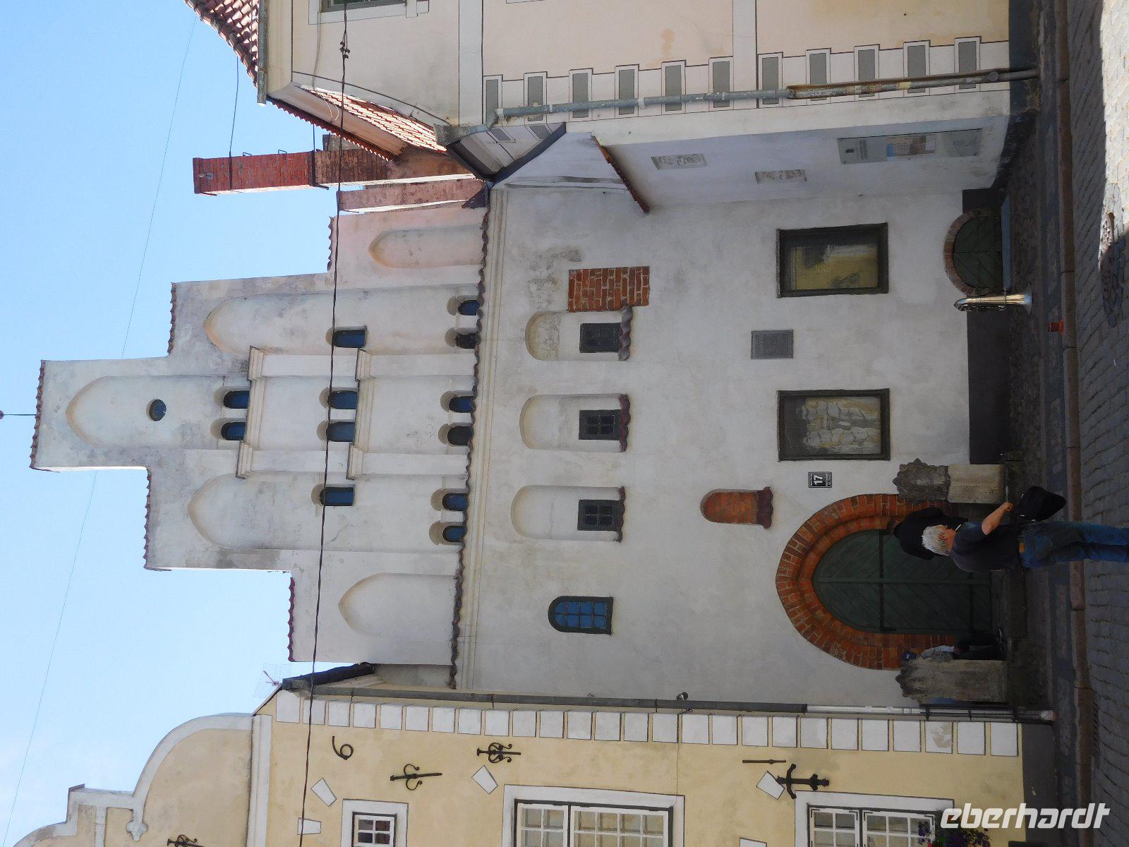 Bei schönstem Wetter holte uns die Talliner Stadtführerin Carmen vom Hotel ab und mit ihr genossen wir dann die Stadtführung, beginnend in der Oberstadt mit diversen Villen, der russisch- orthodoxen Alexander- Newski- Kirche und dem alten Dom mit dem Grab des Weltumseglers Krusenstern und unzähligen Wappentafeln alter baltischer Adelsfamilien, deren Wirken auch in unsere Region ausstrahlte, genannt seien nur die Wrangel und Manteuffel. Das so genannte lange Bein entlang ging es dann hinunter in die Unterstadt. Sie erstreckt sich zwischen Nikolai- und Olaikirche, letztere war mit ihrem 31 Meter hohem, Mitte des 15.Jahrhunderts fertig gestellten Langhaus die höchste Kirche des Baltikums, der Turm soll mit über 140 Metern Höhe sogar Weltspitze gewesen sein. Die sehr kenntnisreiche und humorvolle Carmen zeigte uns pittoreske Ecken und Winkel, wie das ehemalige Dominikanerkloster, die vielen Gildenhäuser oder die Jugendstilapotheke in der Piek.