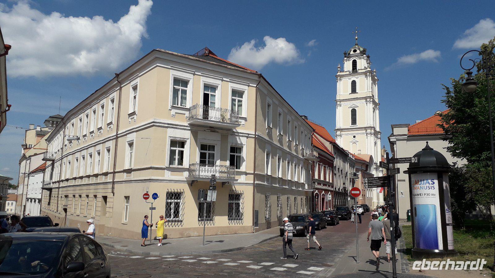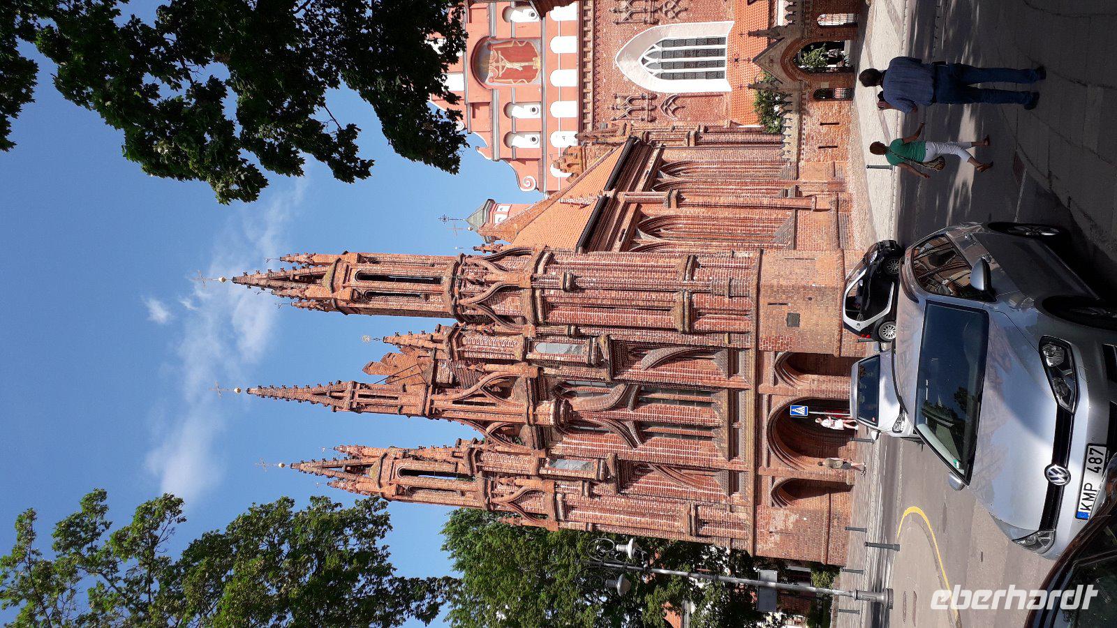 Zurück in Vilnius konnten wir uns im Hotel frisch machen. Dann betraten wir beim Tor der Morgenröte die Altstadt. Unser Spaziergang führte zu den wichtigsten Kirchen und Sehenswürdigkeiten. Genannt seien der Komplex der im 16. Jahrhundert als Jesuitenkolleg gegründeten ältesten Universität Litauens, sowie die Kathedrale am wieder aufgebauten Schloss der litauischen Großfürtsten, von dem aus das Geschlecht der Jagiellonen als Könige der litauisch- polnischen Union eines der größten Länder Europas beherrschten. Es ging zum gotischen Ensemble des Bernhardinerklosters und zur Theresienkirche. Während der anschließenden Freizeit erkundete jeder bei herrlichem Sommerwetter nach seiner Neigung die Stadt.